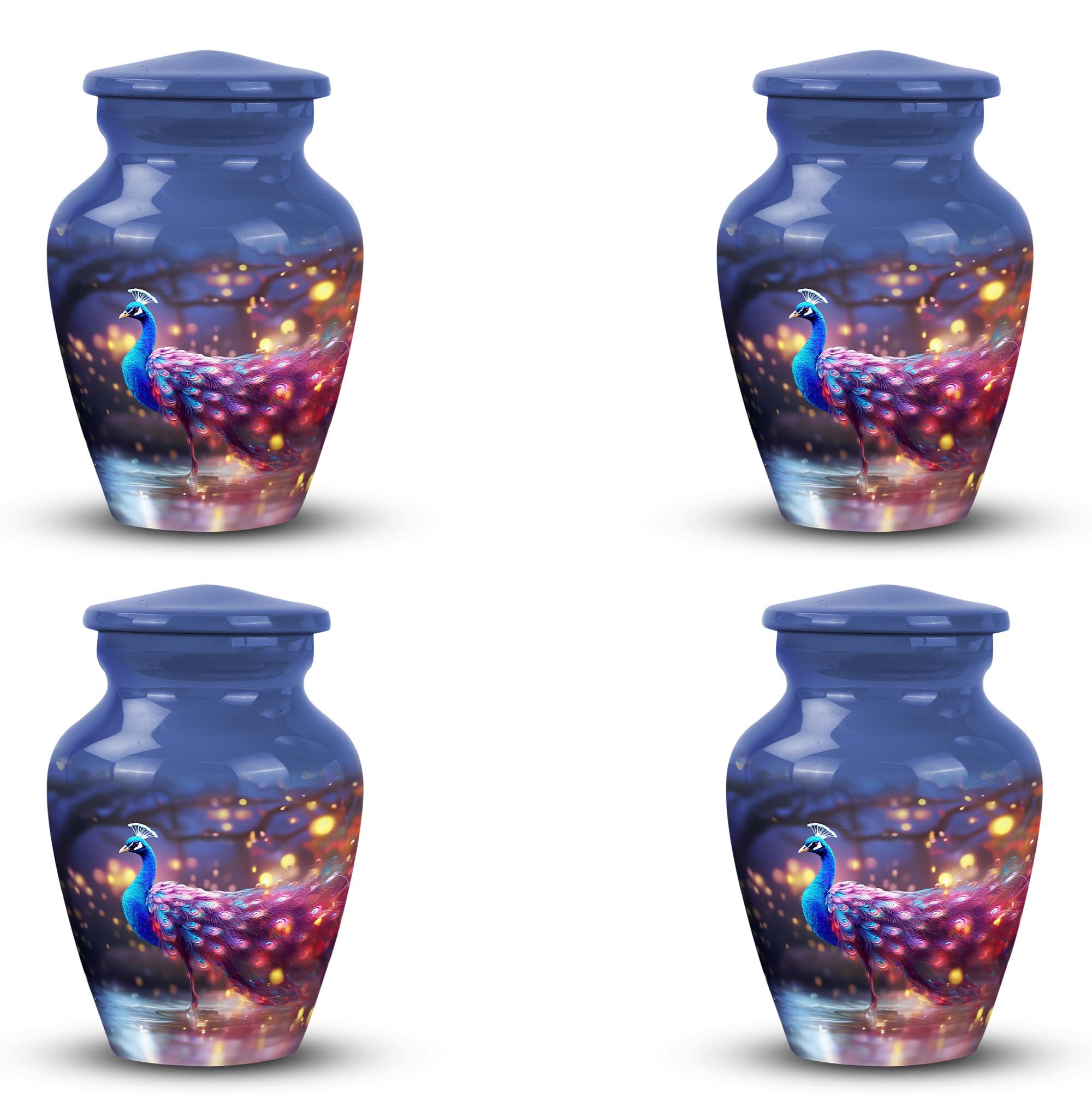 Our majestic Peacock urns for human ashes offer an elegant and timeless space to cherish the memories of your loved ones. Crafted with heart and made of durable Aluminium, these 3-inch large urns can hold up to 200 cubic inches, making them an ideal choice for human cremation ashes. Weighing at 3.3 pounds and 10 inches in height, these urns are compact yet prominent enough to keep your loved ones close at all times. Each package also comes with a velvet pouch for the containment of ashes, adding an extra layer of elegance and security. With an option to personalize with engraved names, you can honor your loved ones in the way they deserve. Perfect for those in search of memorial urns that strike that perfect balance between design and respect, these urns also make excellent decorative pieces, further testifying to the wonderful lives lived. Note that 'design' specifics are available upon ordering.