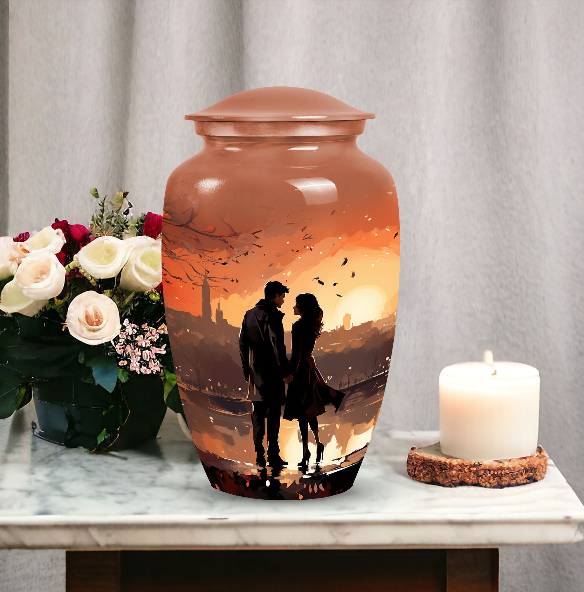 Intimately commemorate your precious shared memories with a 'Sunset Urn', an exquisite piece among our Couples' Cremation Urns collection. Our meticulously crafted urn showcases an evocative sunset design, symbolizing the beautiful close of a day - a poignant metaphor for the journey of life. Designed to hold the ashes of adults, this urn embodies respectful sentimentality and profound love. It is an ideal choice when searching for 'Memorial Urns For Human Ashes'. Esteemed for its touch of femininity, it indeed makes for precious 'Urns for Women' or captivating 'Urns For Dad' ensuring that the memory of your dear ones remains close to your heart. With this elegant piece, honor your shared experiences, shared laughter, shared tears, and the shared life. Its transcendent design and uncompromised quality reaffirm the unending bond you share with your departed loved ones.