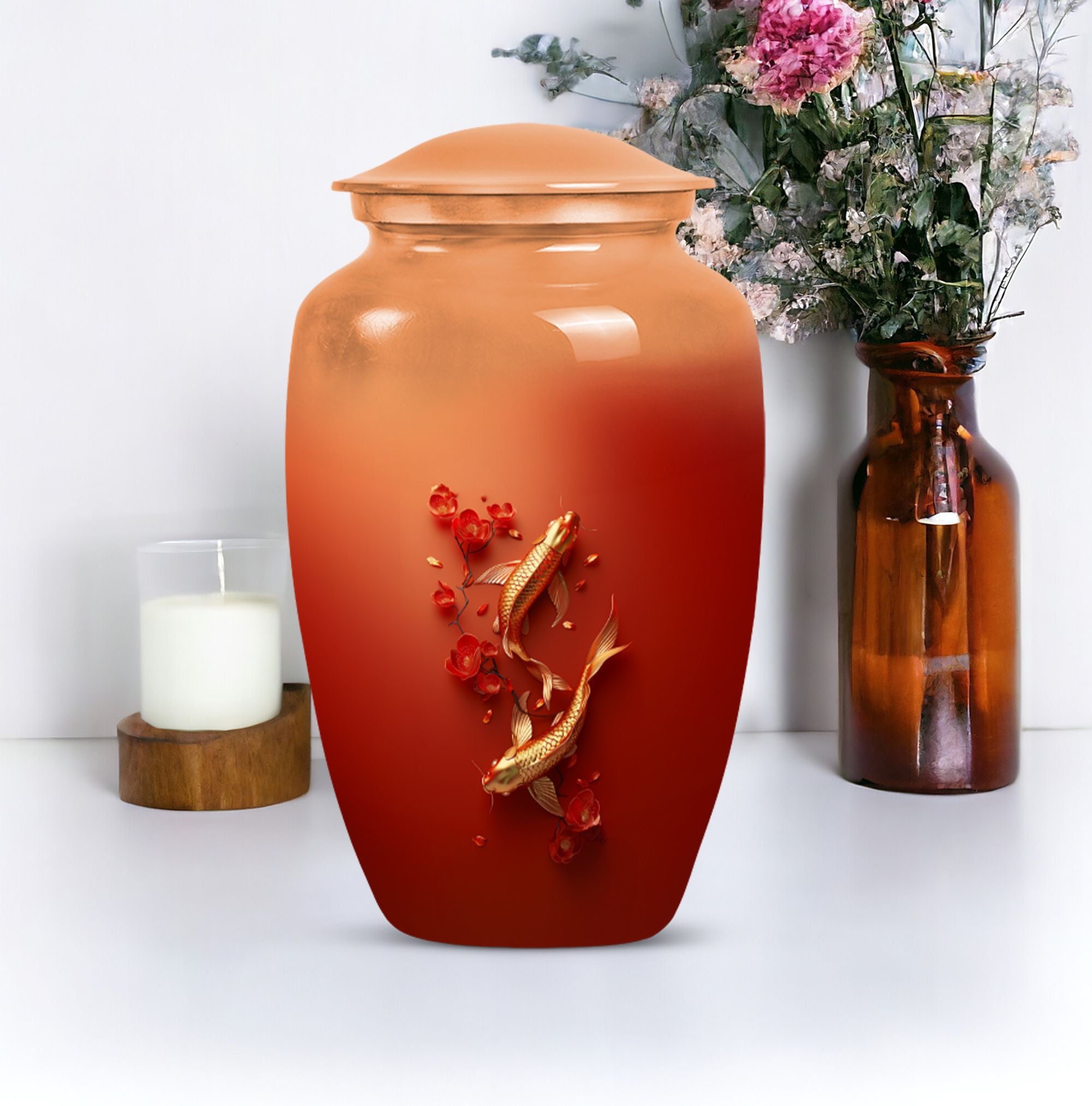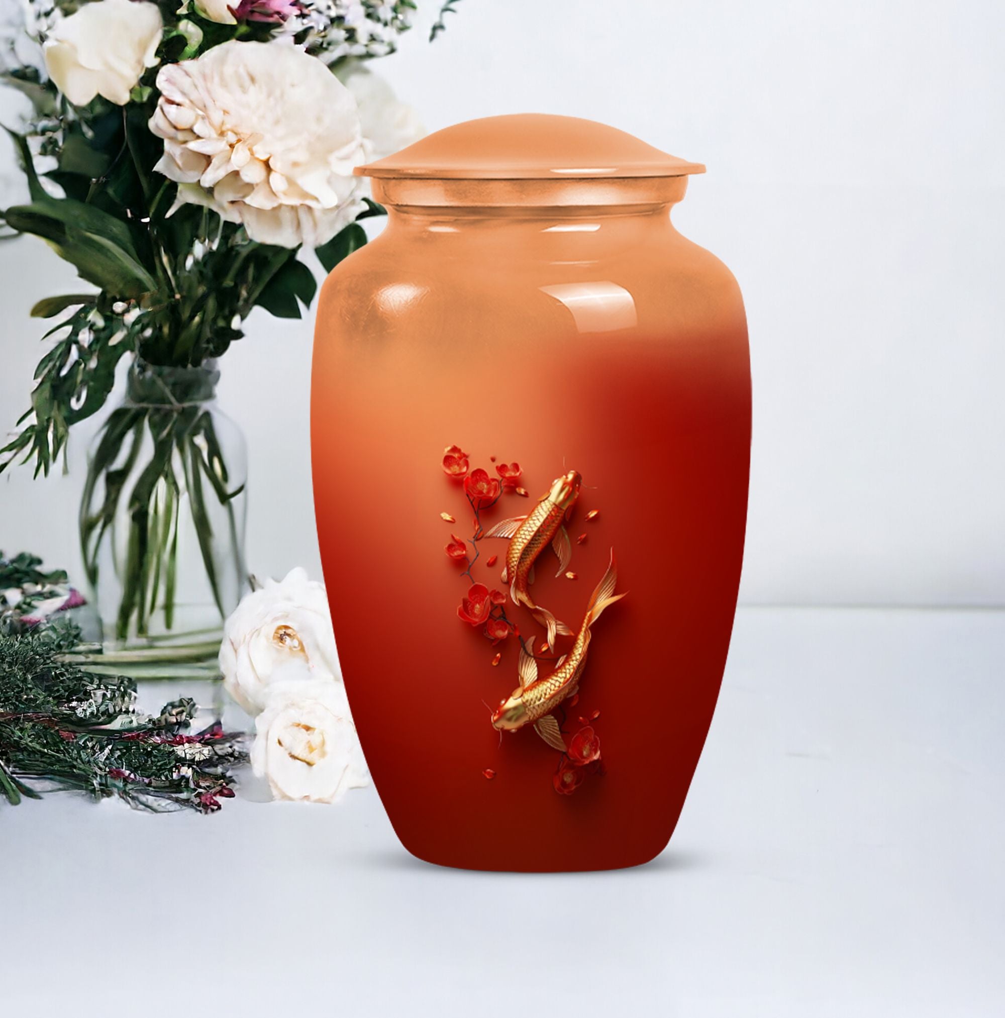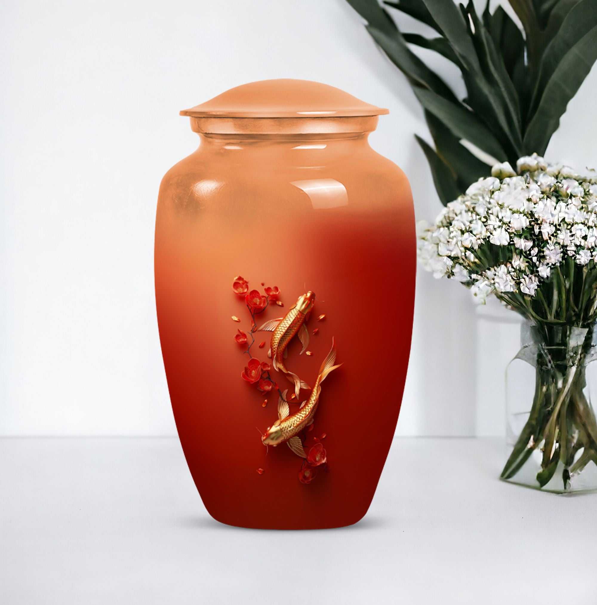Find solace in your loved one's memory with our 'Goldfish Urn', a token of eternal rest crafted from high-quality Aluminium. This Large Urn, standing at a stature of 10 inches, is designed to cater to adults and senior citizens, providing 200 cubic inches of containment capacity for the ashes. With a weight of 3.3 pounds, this memorial urn for ashes offers a substantial feel, signifying the substance of the memories it embodies. To enhance this urn's significance, you have the opportunity to personalize it with engraved names, giving it an intimate touch that hails from your heart. Accompanying the Urn is a velvet pouch, ensuring a dignified containment of your loved one's ashes. This urn features a Butterfly theme, symbolizing the timelessness of the soul's journey. Remember, it's not just an urn; it's a tribute to life lived and a beacon for the soul's lasting peace. Steer away from traditional funeral urns with this unique memorial piece. Please note: Design is CLASSIC URN.