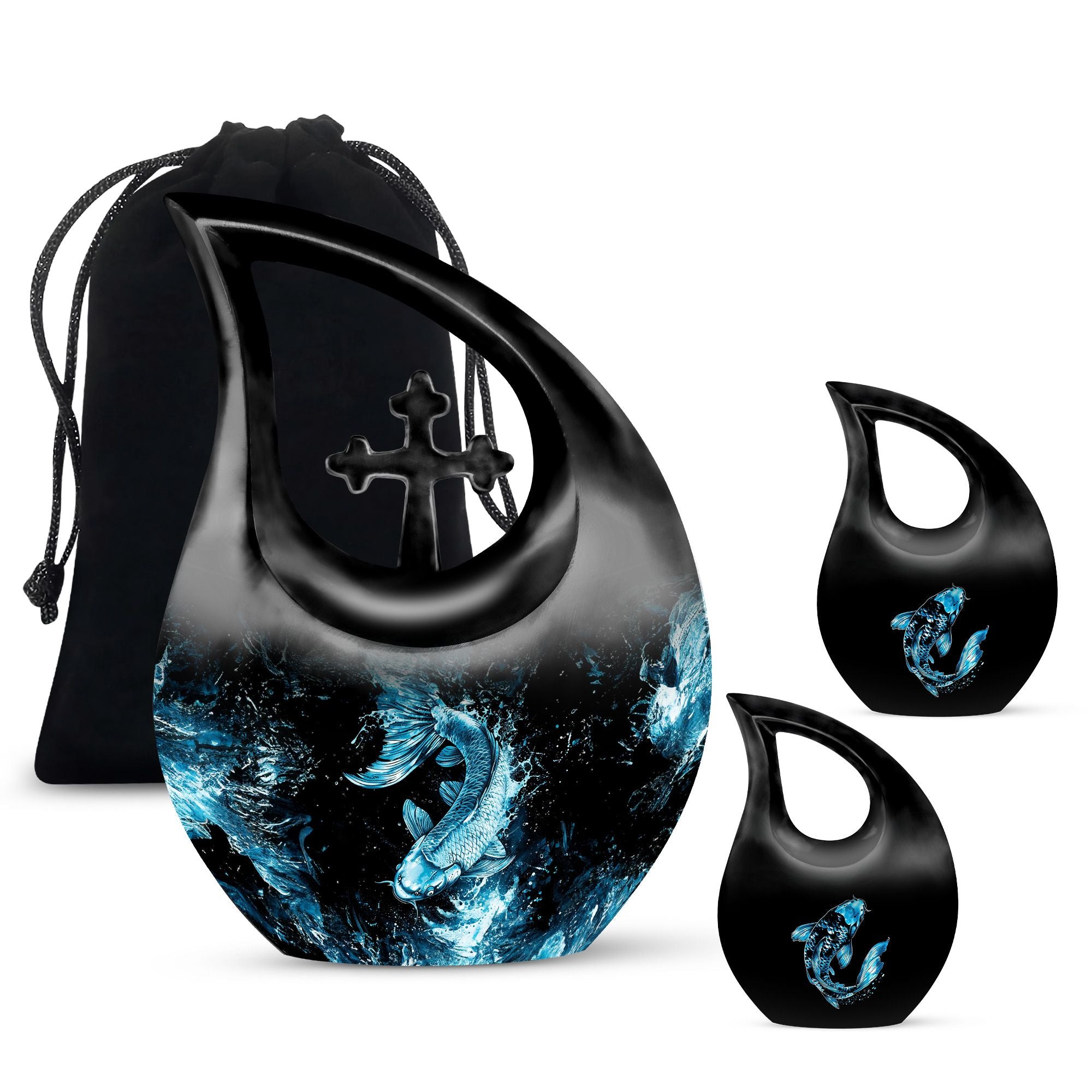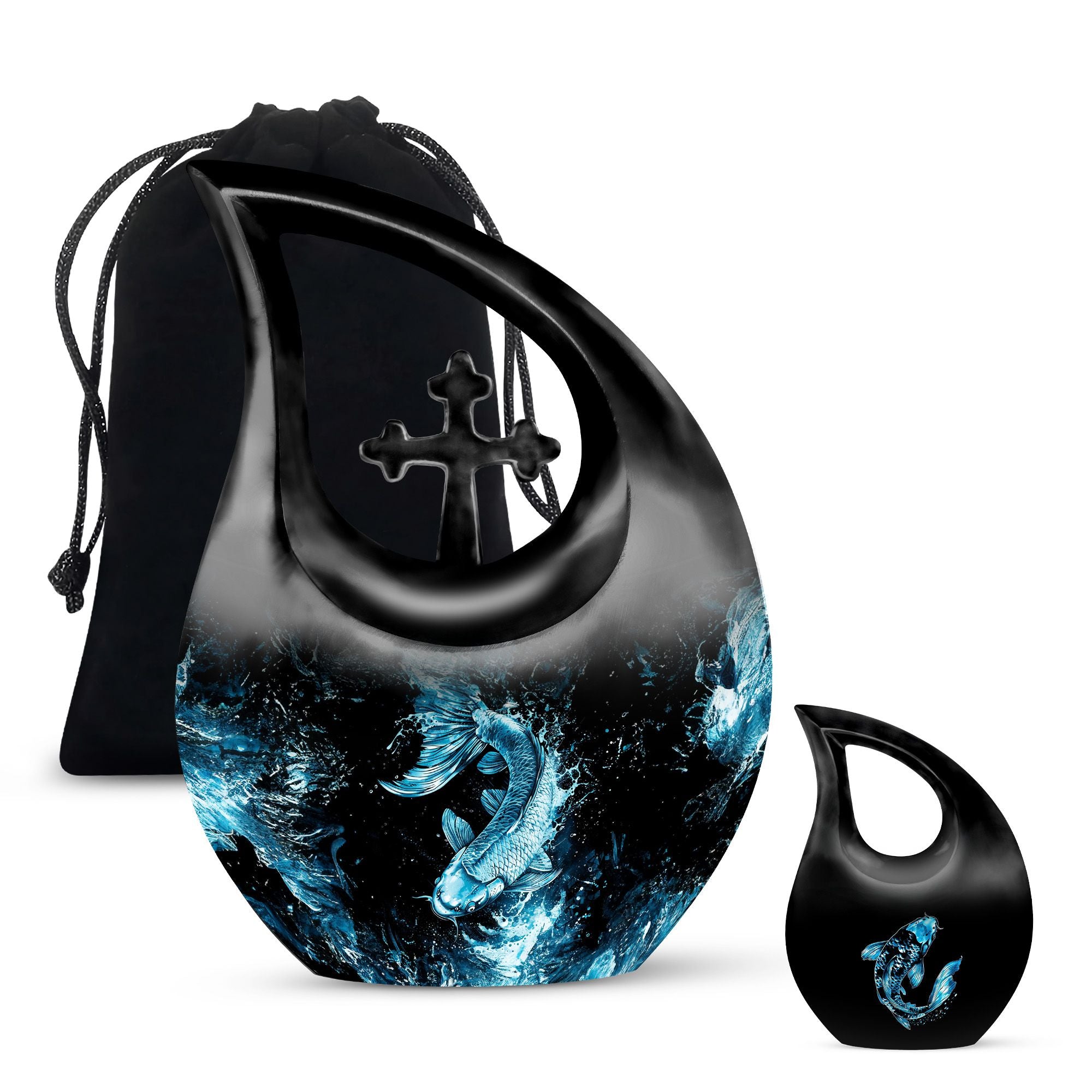 A memorial should speak to the beauty and strength of the life it represents, and this Black Cremation Urn with Blue Koi Fish Design offers a serene way to honor your loved one. Crafted for families seeking adult funeral urns or unique urns for human ashes, it brings comfort and meaning to the remembrance process.