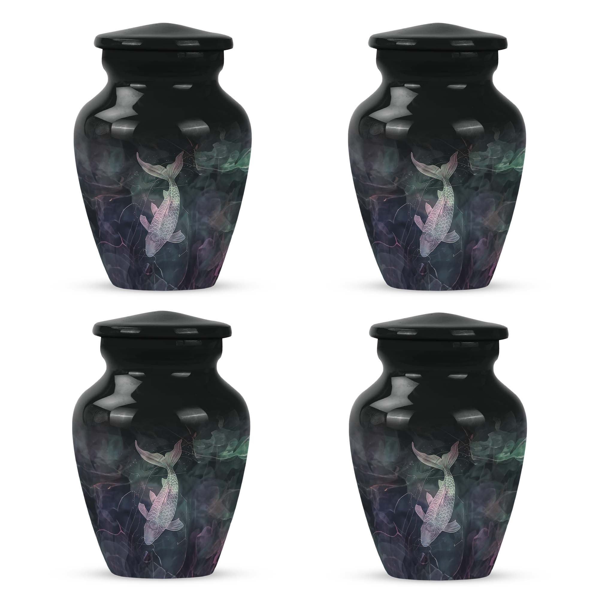 Immortalize the memory of your loved ones with this elegant and timeless 'fish urn.' Meticulously handcrafted from premium quality aluminium, our 10-inch cremation personalized urn serves as a fitting tribute. With a weight of 3.3 pounds and a generous 200 cubic inches capacity, this large urn can accommodate the ashes of adults comfortably. Its abstract theme adds a delicate and artistic touch, surely making it a centerpiece in any room. You can personalize this memorial urn with engraved names, thus, adding a deep, personal sentiment. Rest assured your cherished one's remains will be kept secure within this urn, with complimentary velvet pouch included in the package. The keywords 'Cremation large urn, urn ash burial urn, urns for cremation ashes for men, personalized urns for cremation ashes mother' and 'memorial urns' describe this piece aptly, underscoring its utility and emotional significance. Please note, specific design attributes are withheld for preserving the uniqueness of every individual urn.