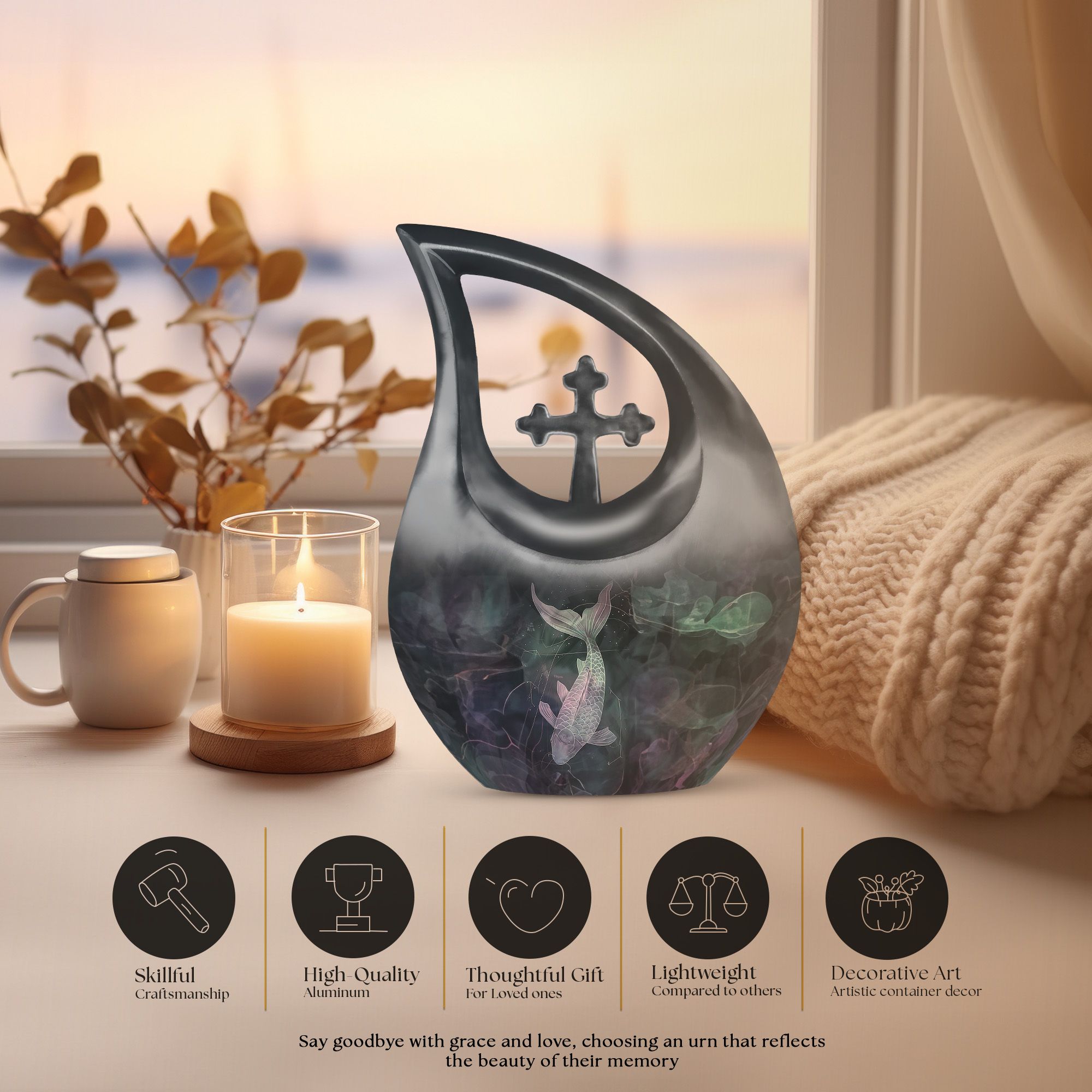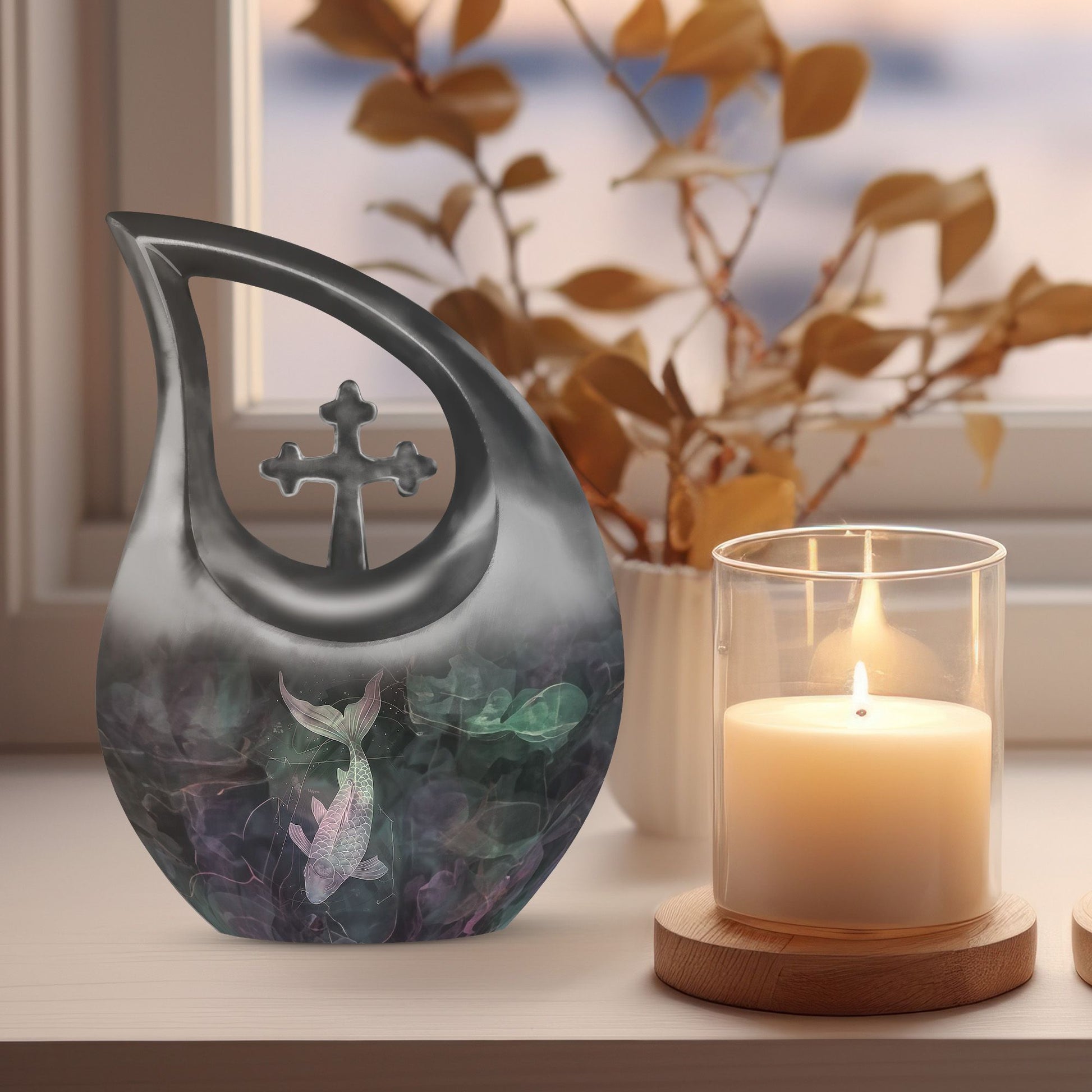 This Fish Cremation Urn offers a heartfelt and personalized way to honor a cherished life. Thoughtfully crafted for families seeking memorial urns for human ashes keepsake, it provides comfort and meaning while allowing you to preserve treasured memories in a dignified and symbolic design.