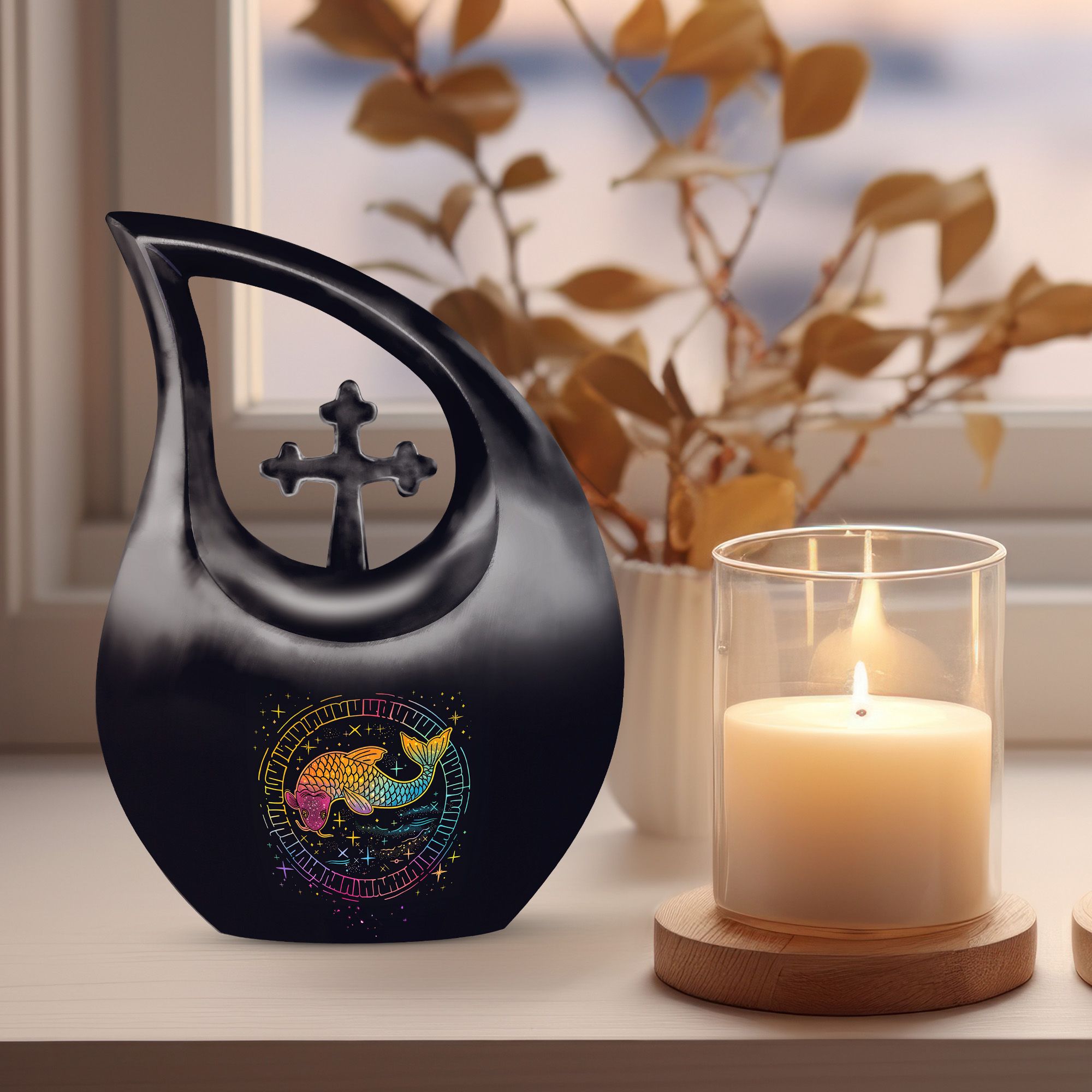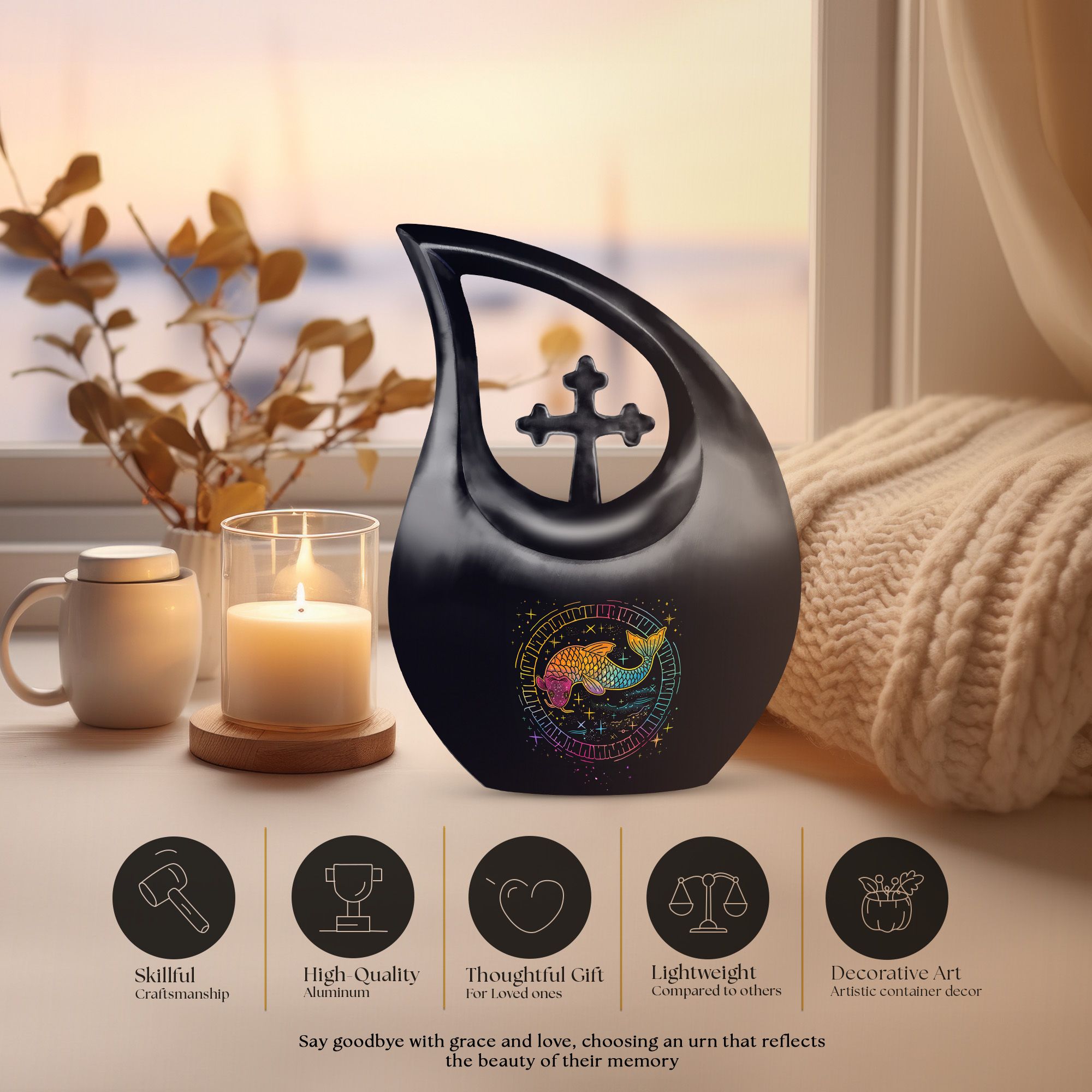 Crafted from durable aluminum, this large decorative urn features a fishing-inspired design that symbolizes tranquility, patience, and connection to nature. Its polished finish enhances its beauty, making it an ideal choice for display, ceremonies, or burial. With a spacious capacity, it’s perfect for those needing large urns for human ashes, a dependable large funeral urn, or a dignified large human ashes urn. The secure screw-top lid ensures ashes remain protected, offering peace of mind. Families looking for cremation urns large, urns for human ashes large, or elegant large cremation urns for human ashes will appreciate its craftsmanship and symbolic design.