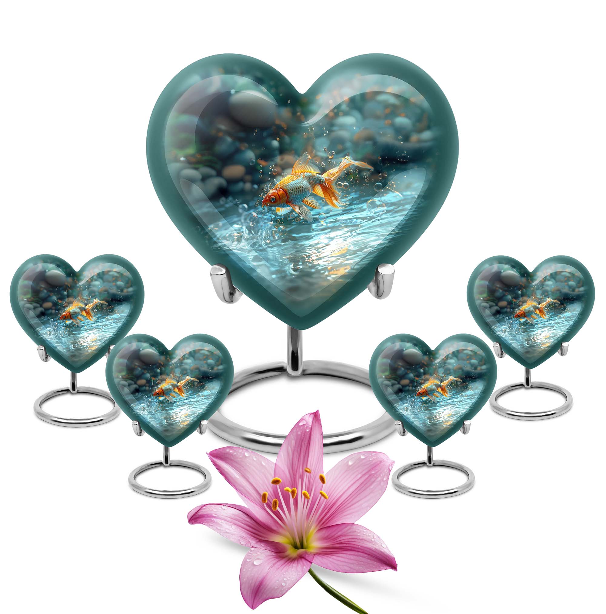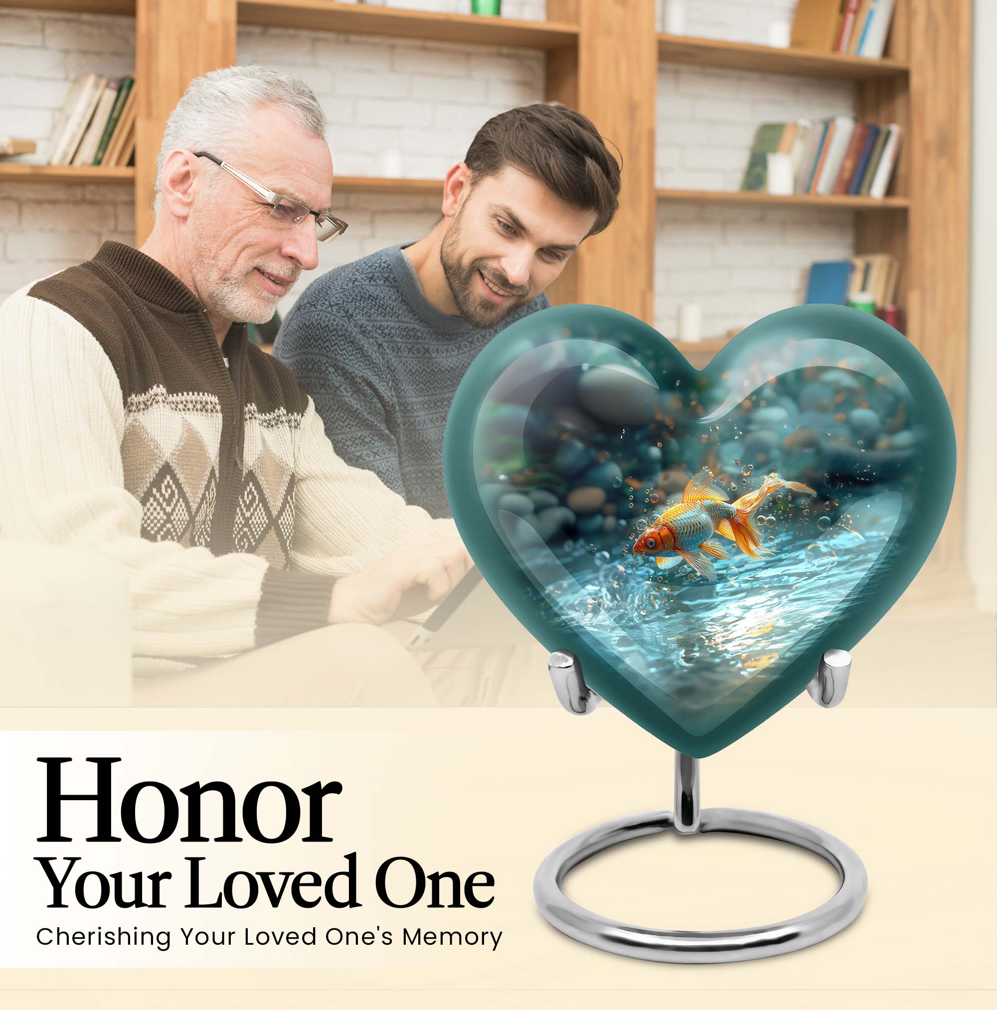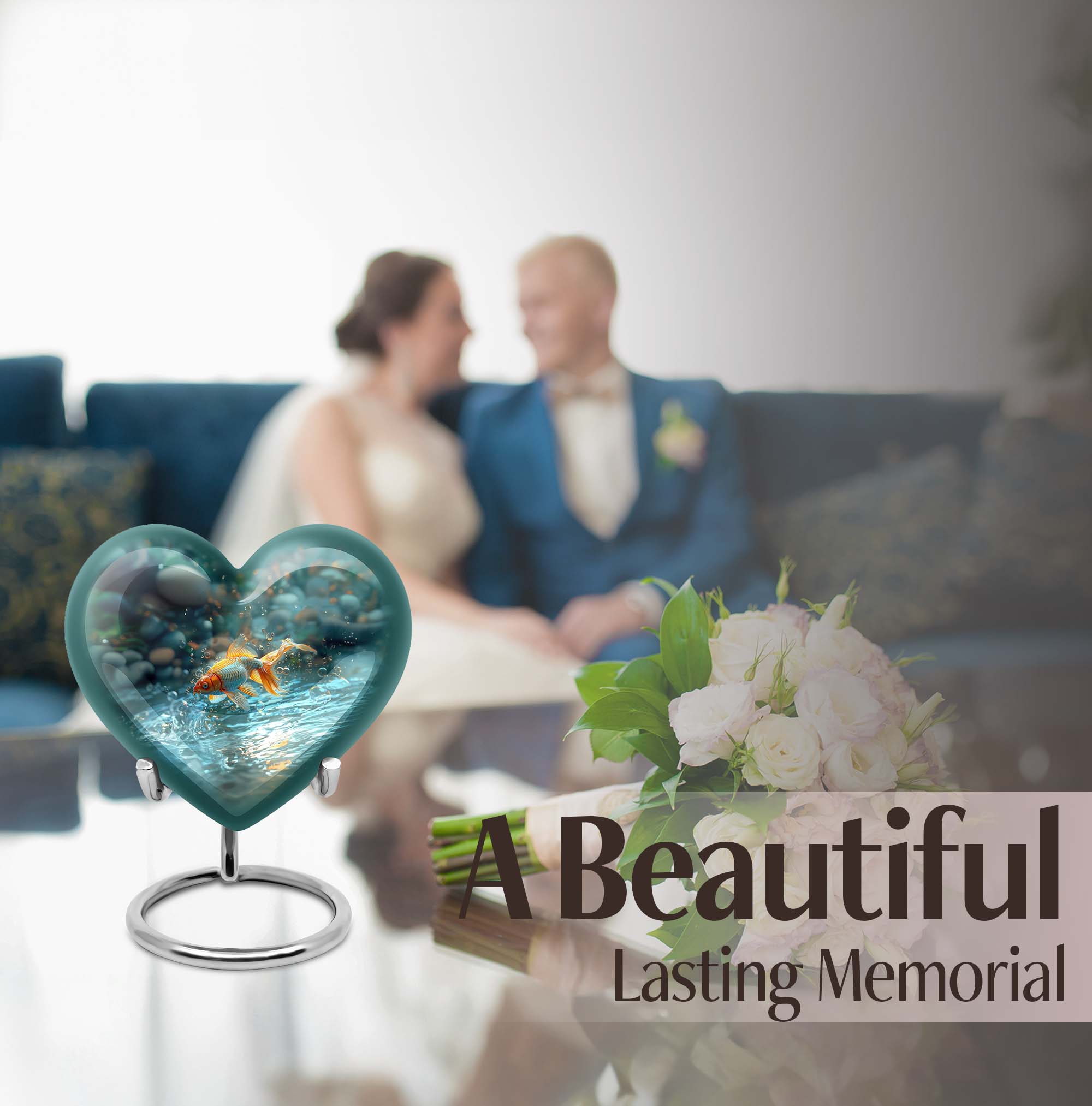 Presenting our handcrafted gold fish urn, a heartfelt memento to honor and remember your loved ones. This large urn showcases a symbolic butterfly theme, adding a serene and peaceful touch. It is carefully created from robust aluminium material which stands 10 inches tall, weighing only a mere 3.3 pounds. With a remarkable capacity of 200 cubic inches, this urn for cremation ashes is roomy enough to hold ashes securely. The product comes with a delicate velvet pouch, assuring containment of ashes and easy transportation. Personalize this piece further with engraved names, elevating its uniqueness and sentimental value. This cremation urn is not only just an urn, but a memorable keepsake that forever encapsulates the love and affection you hold. The urn mirrors the infinite bond you shared, making it a perfect tribute to your loved one. Commonly searched terms for our product include 'memorial urns', 'burial large urn', 'ash adult funeral urns', and 'funeral cremation urn'.
