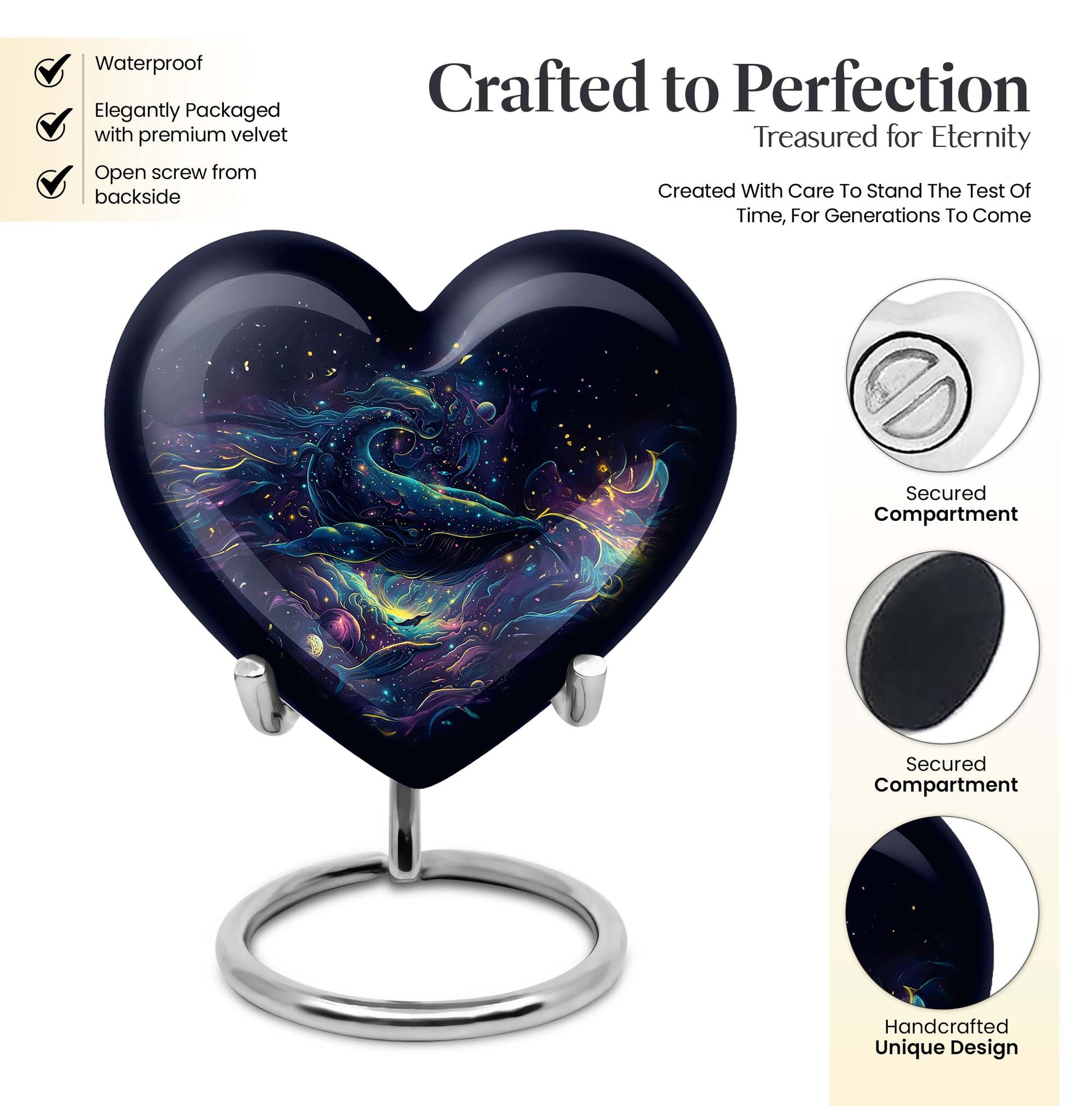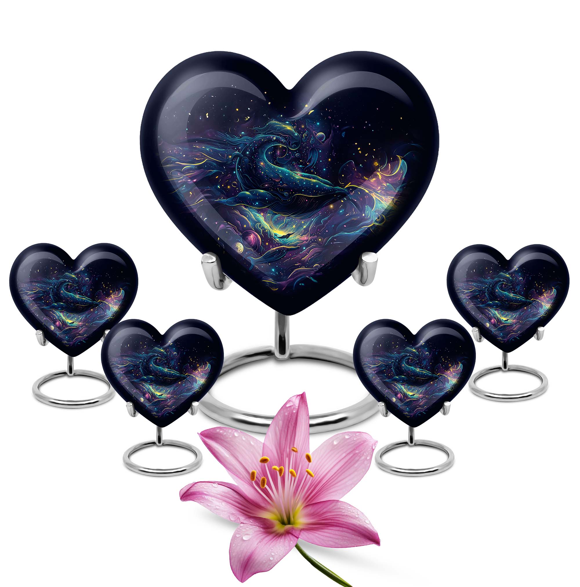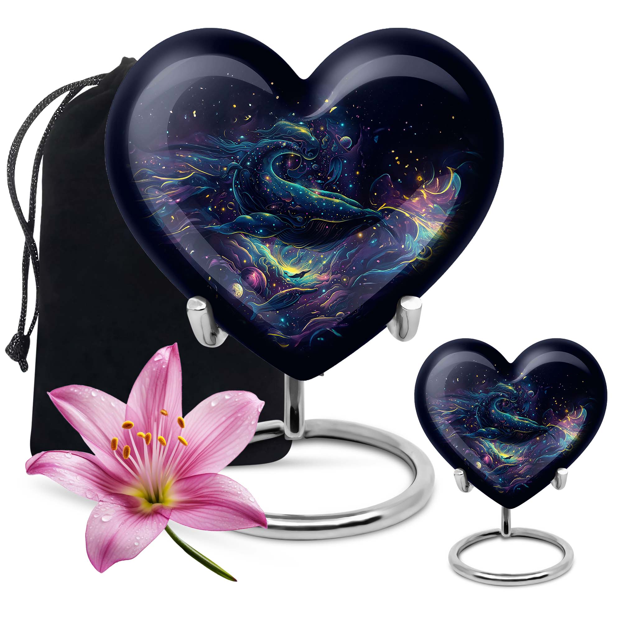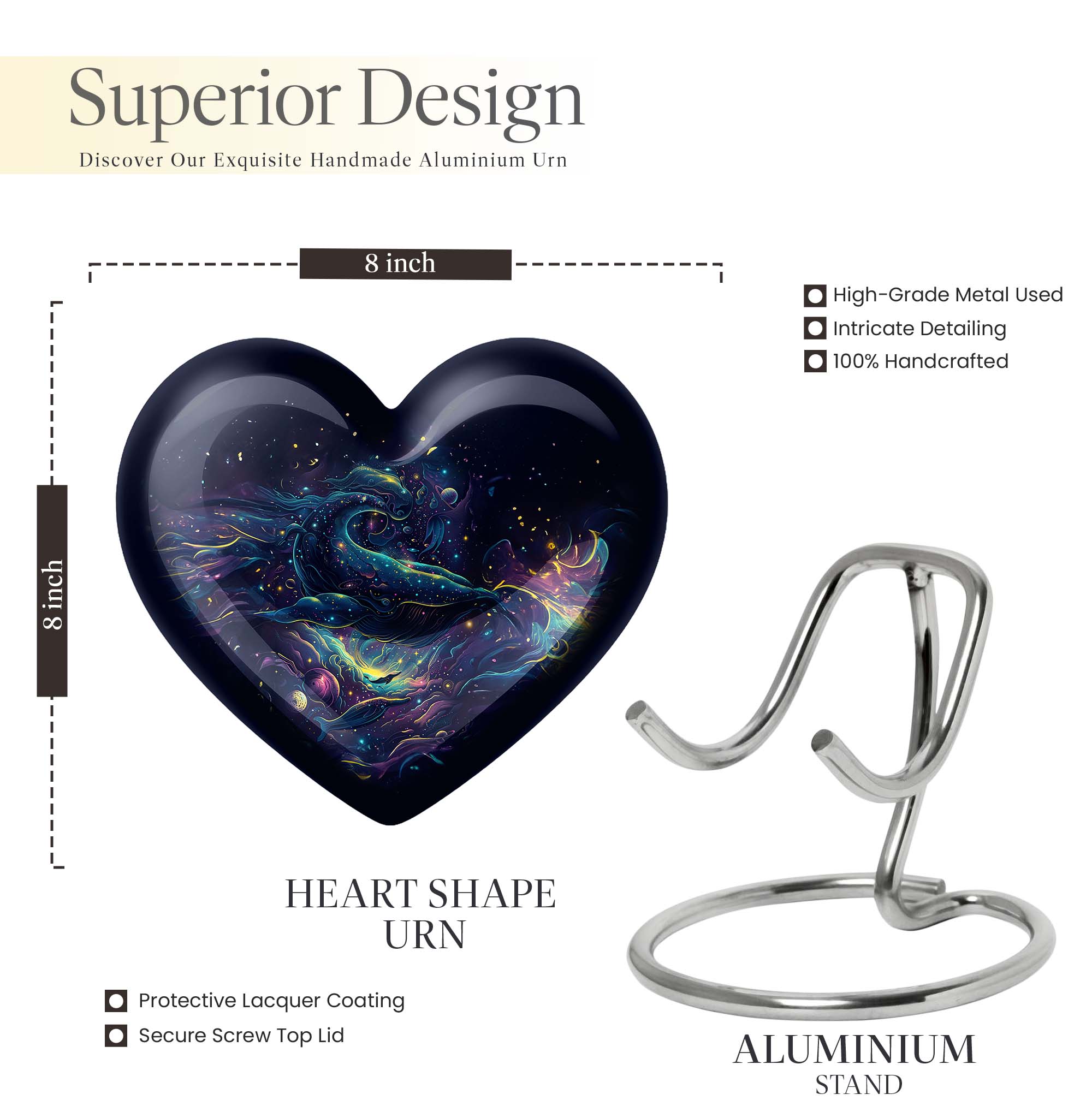 Discover a unique way to honor your loved ones with our exquisite 'Heart Urn', a perfect choice from our range of large memorial adult urns. This fish Urn carries an abstract theme, tastefully designed in aluminium with a robust size of 10 inches. We provide a delicate velvet pouch within the package for tasteful containment of the revered ashes. While its weight is approximately 3.3 pounds, the urn effortlessly hosts about 200 cubic inches of ashes. Offering value to the bond you maintain with the departed, this urn's charm lies in its customization. You can personalize it by having the names engraved, making it a meaningful token of remembrance. Showcasing a blend of dignity and artistry, this urn is a part of our 'cremation urns for burial in ground' collection. Note: The locale of this product is 'en'. Elevate your memorial ceremonies with our heart urn, offering a thoughtful way to remember and pay tribute to your loved ones.