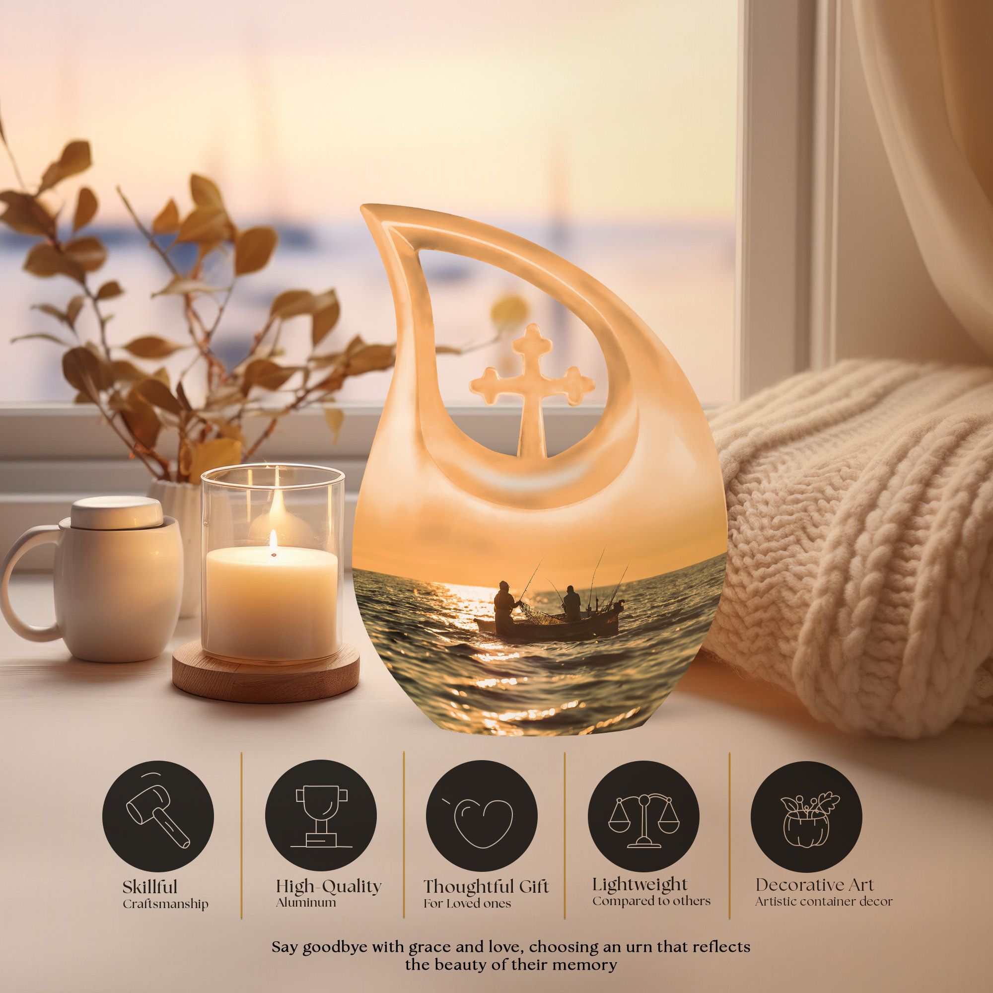 Choosing a final resting place is a tender act of love, and this Sunset Fishing Cremation Urn offers a peaceful way to honor someone who cherished the water and the quiet beauty of nature. Created for families seeking cremation urns for human ashes or burial urns for adult human ashes, it provides a comforting tribute infused with calm and remembrance.