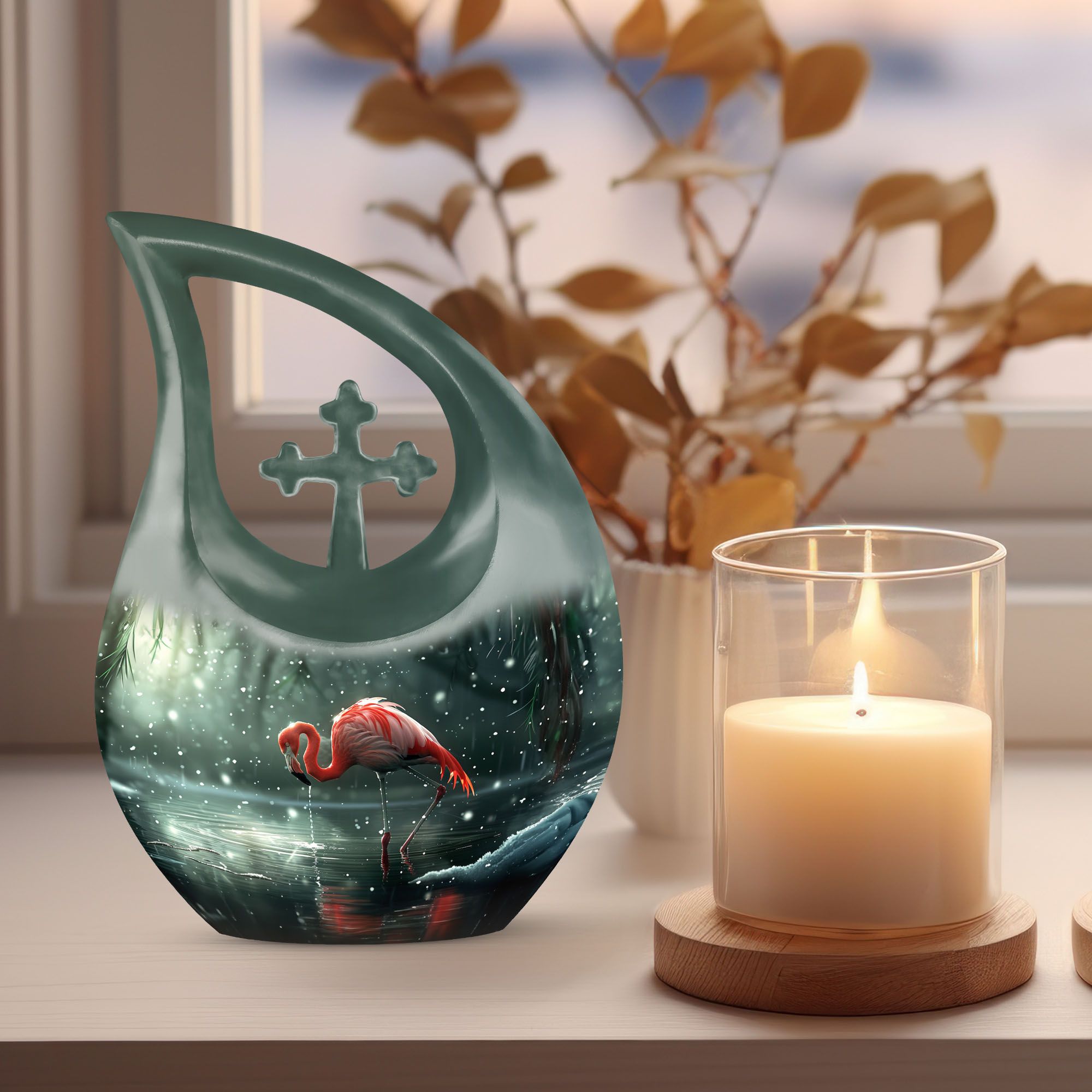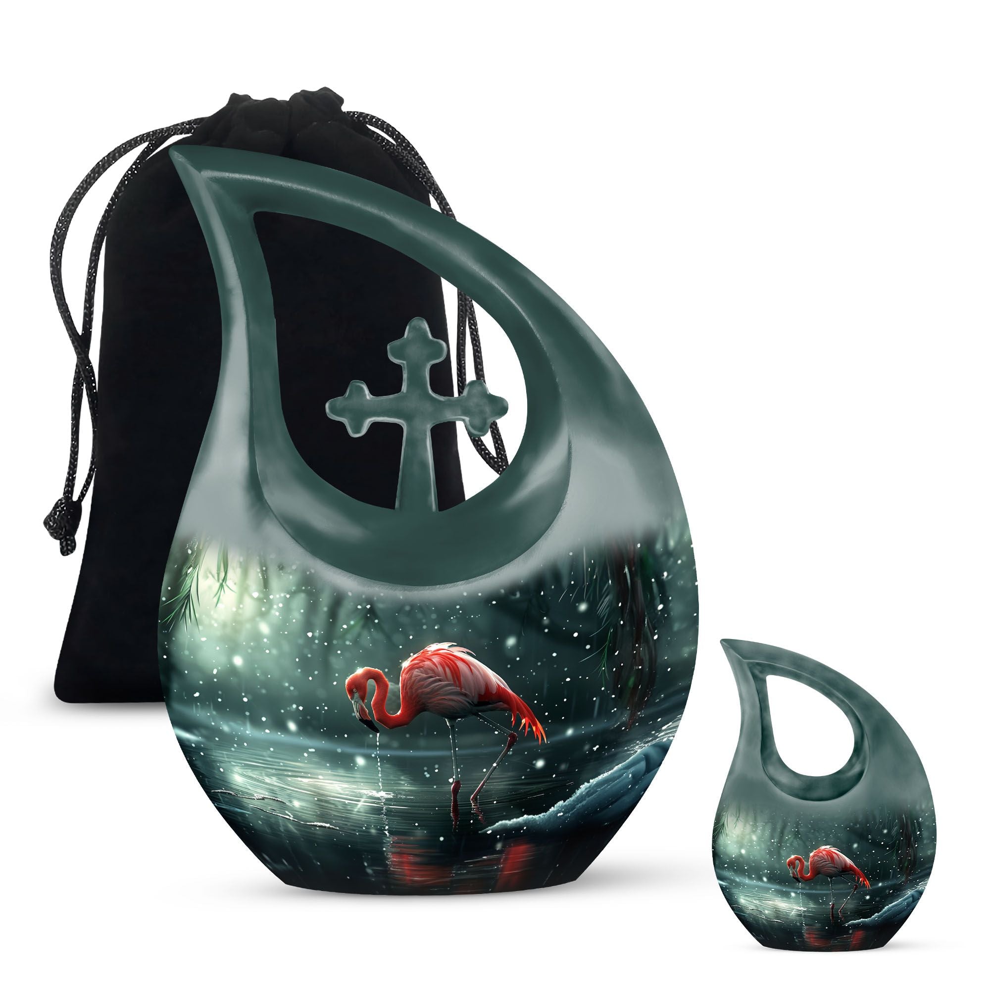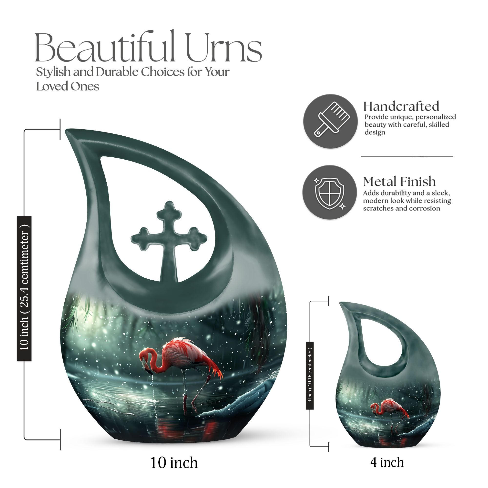 Crafted from durable aluminum, this 10 inch urn features detailed red flamingo artwork that brings comfort and serenity to any memorial space. Its secure screw-top lid and generous 200-cubic-inch capacity make it perfect for those searching for large cremation urns, large human ashes urn, large urn for human ashes, or large urns for human ashes adult female. Smooth, long-lasting, and beautifully finished, it offers dependable protection and heartfelt symbolism.