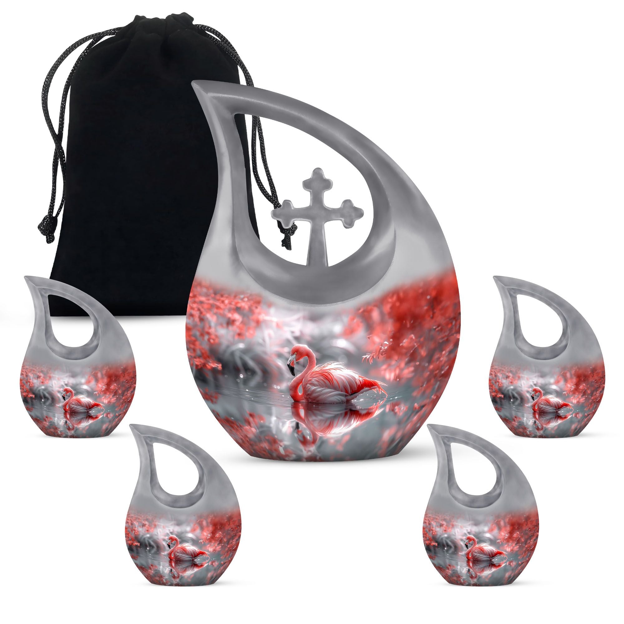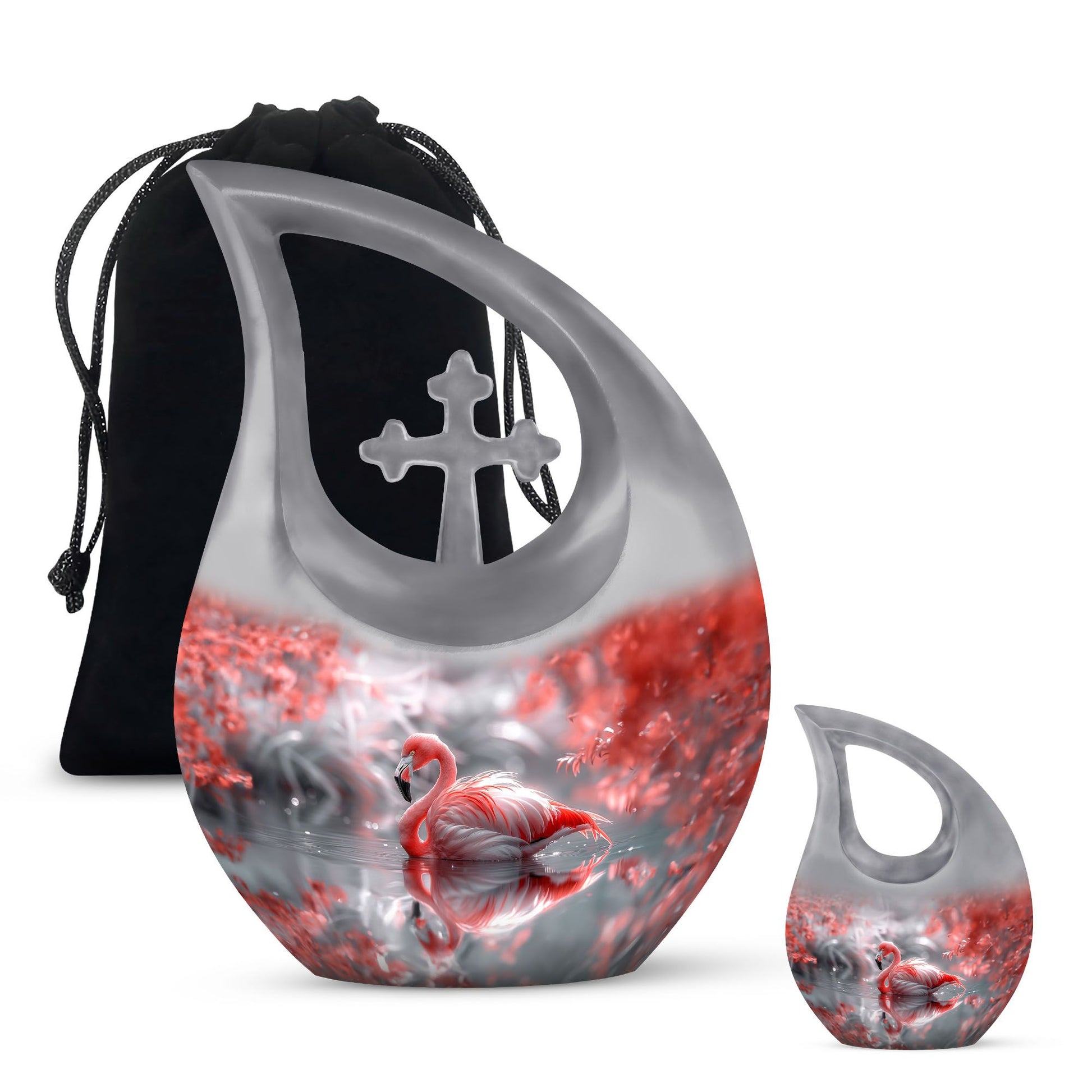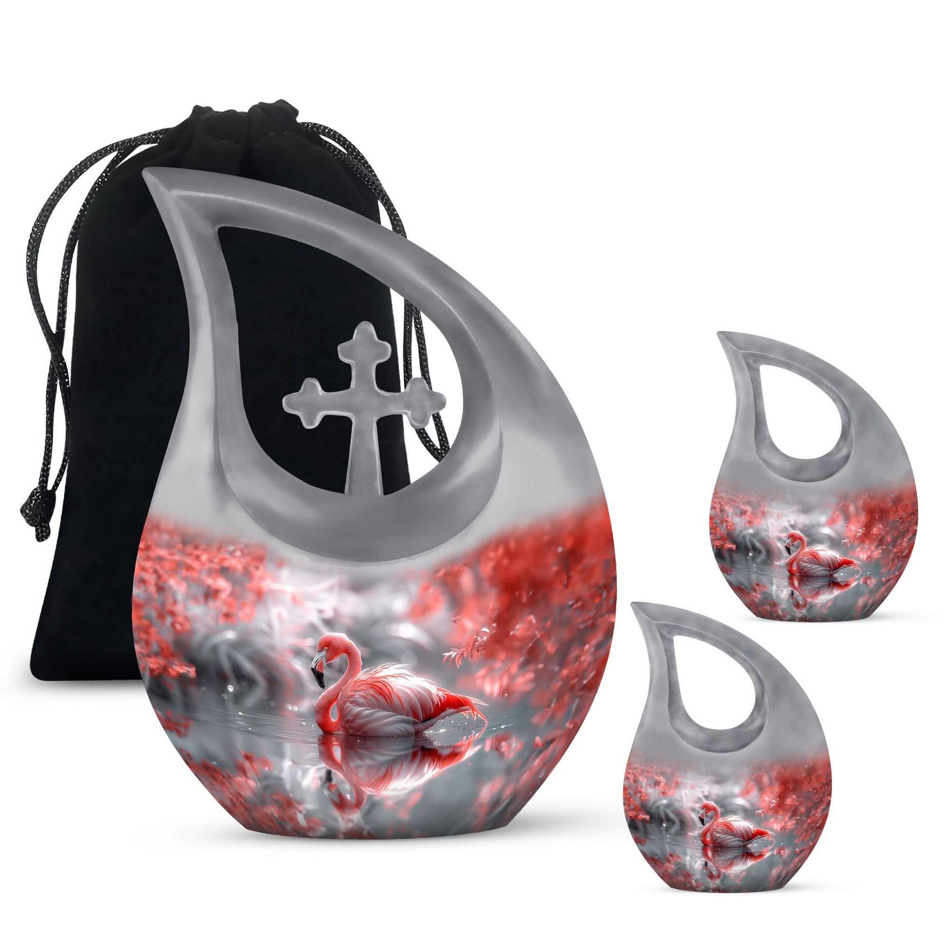 Crafted from durable aluminum, this urn features a soft, elegant design with beautifully detailed flamingo artwork. Its secure screw-top lid ensures ashes remain safe, making it ideal for those needing keepsake urns for human ashes adult, urn ashes keepsake, or a complete urn keepsake combo set. Families wishing to share ashes may choose the coordinating keepsake urn set, perfect for remembrance and honoring loved ones together. This design is also suitable for anyone seeking ash urns for humans keepsake, urns for ashes keepsake, or dependable human ash keepsake options.