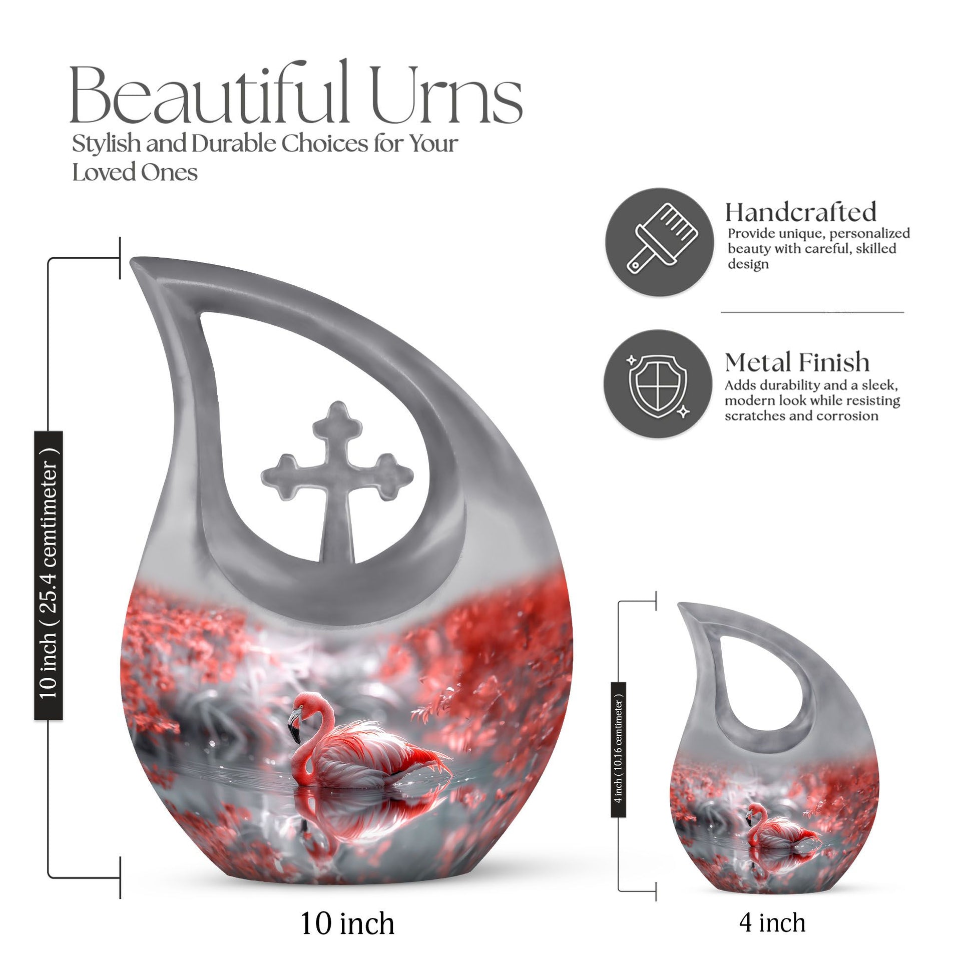 This flamingo-themed urn can be beautifully paired with matching mini keepsake urns, making it ideal for families who share ashes or desire a coordinated urn keepsake set. Its gentle colors and symbolic imagery offer comfort and peace during remembrance.