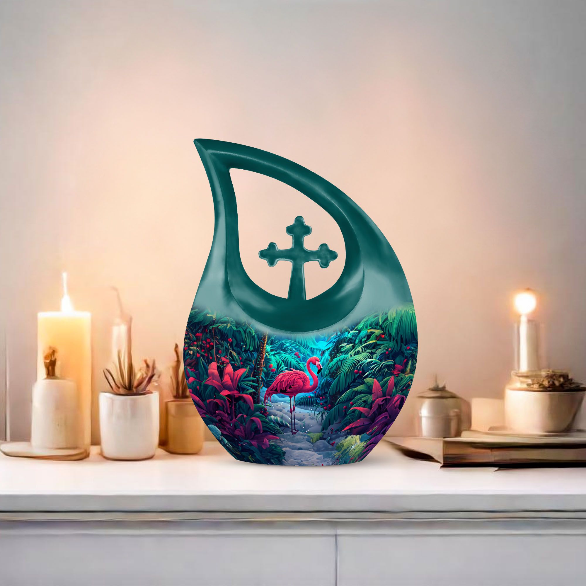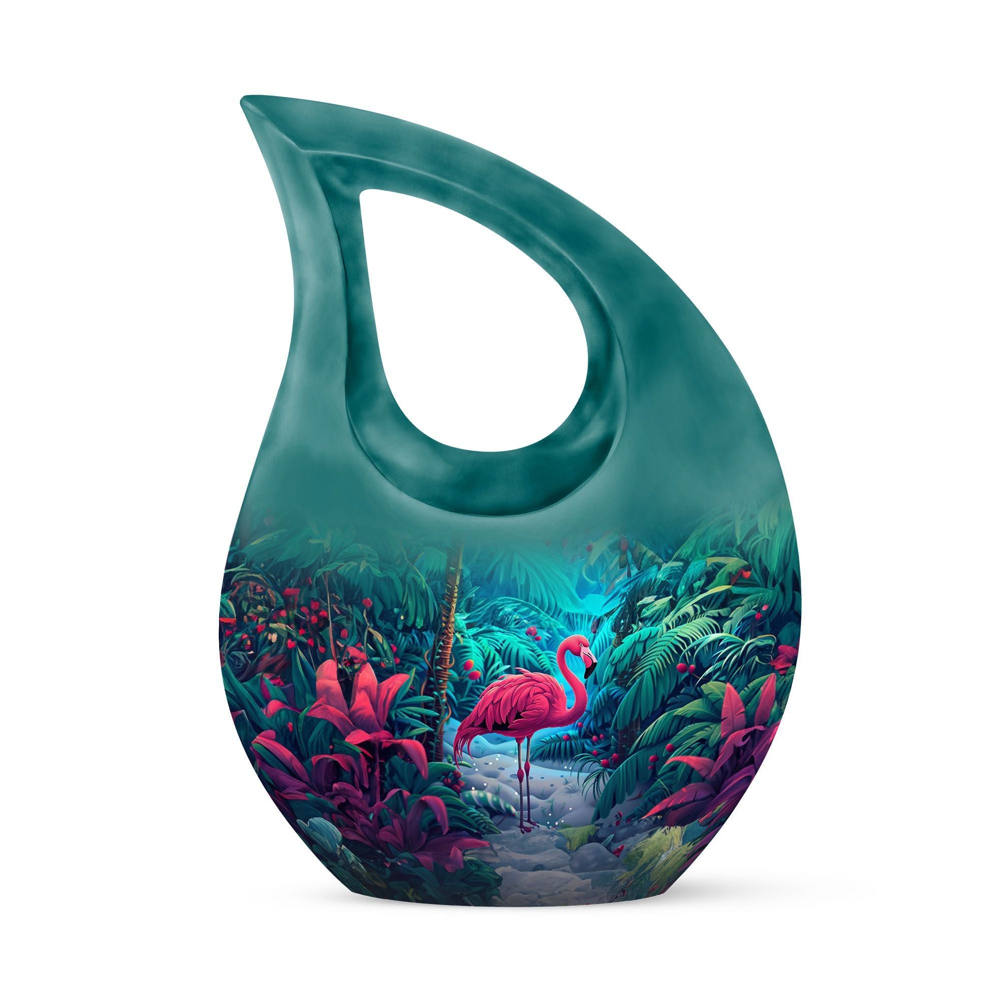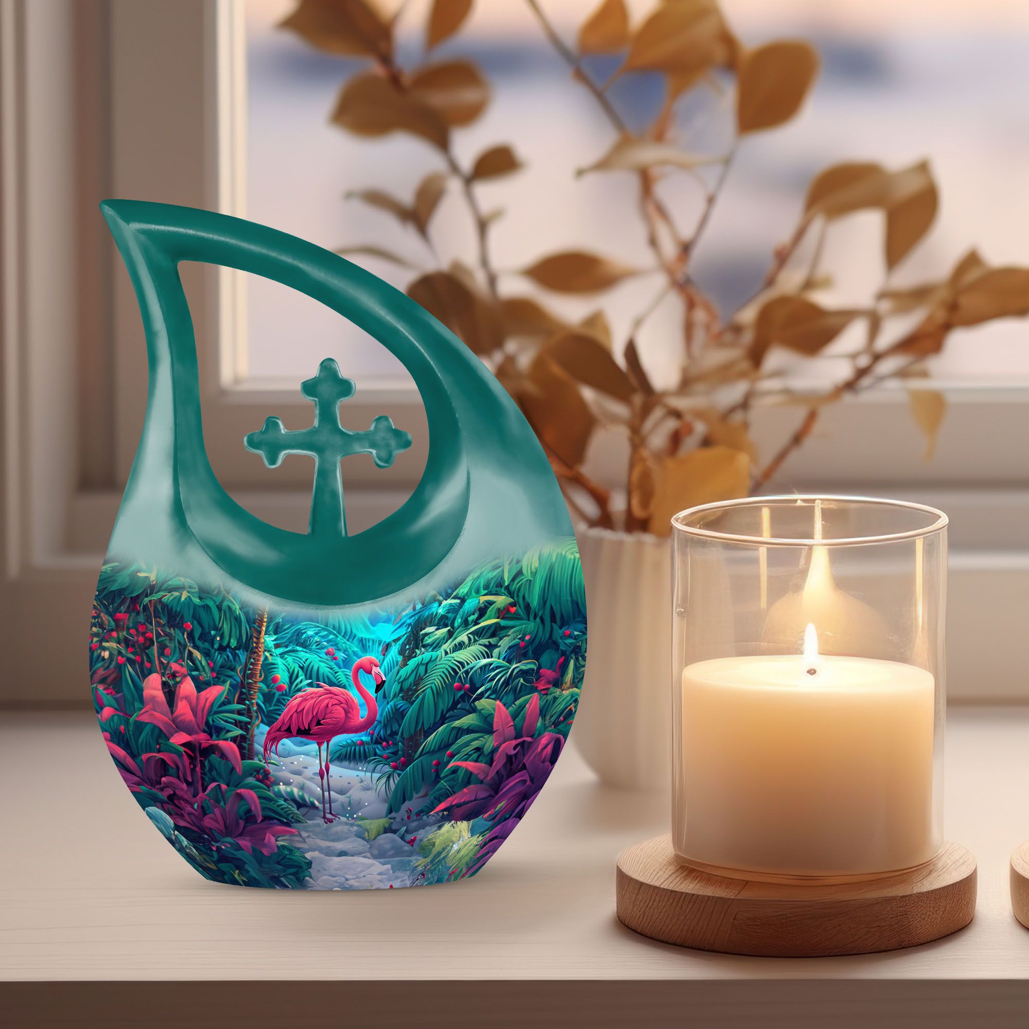 Honor the life of someone dearly loved with this Flamingo Cremation Urn, a soothing green memorial urn designed to bring comfort and gentle remembrance. Its calming flamingo artwork makes it a heartfelt choice for families seeking urns for human ashes adult male burial, urns for adult female small, or a meaningful tribute for both men and women.