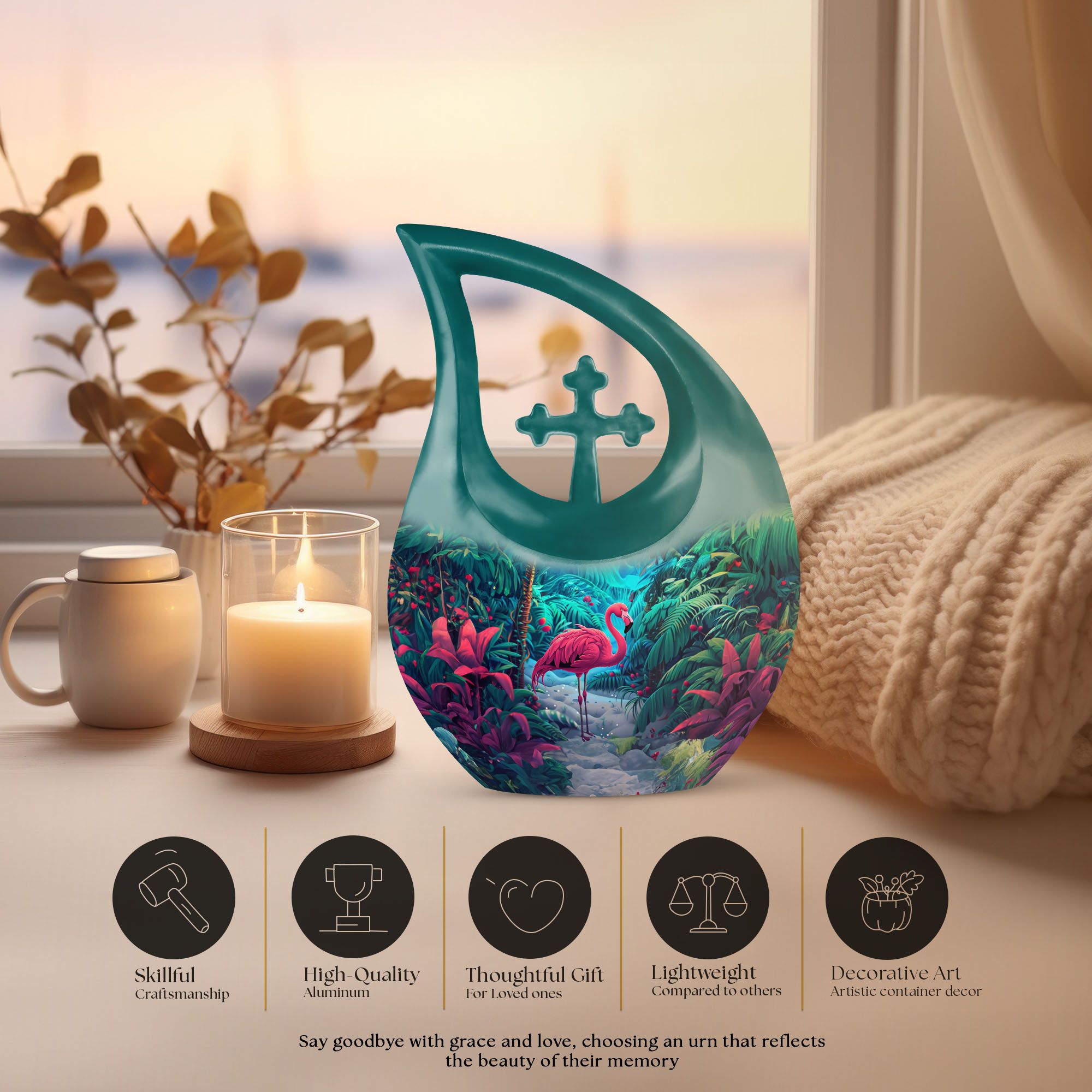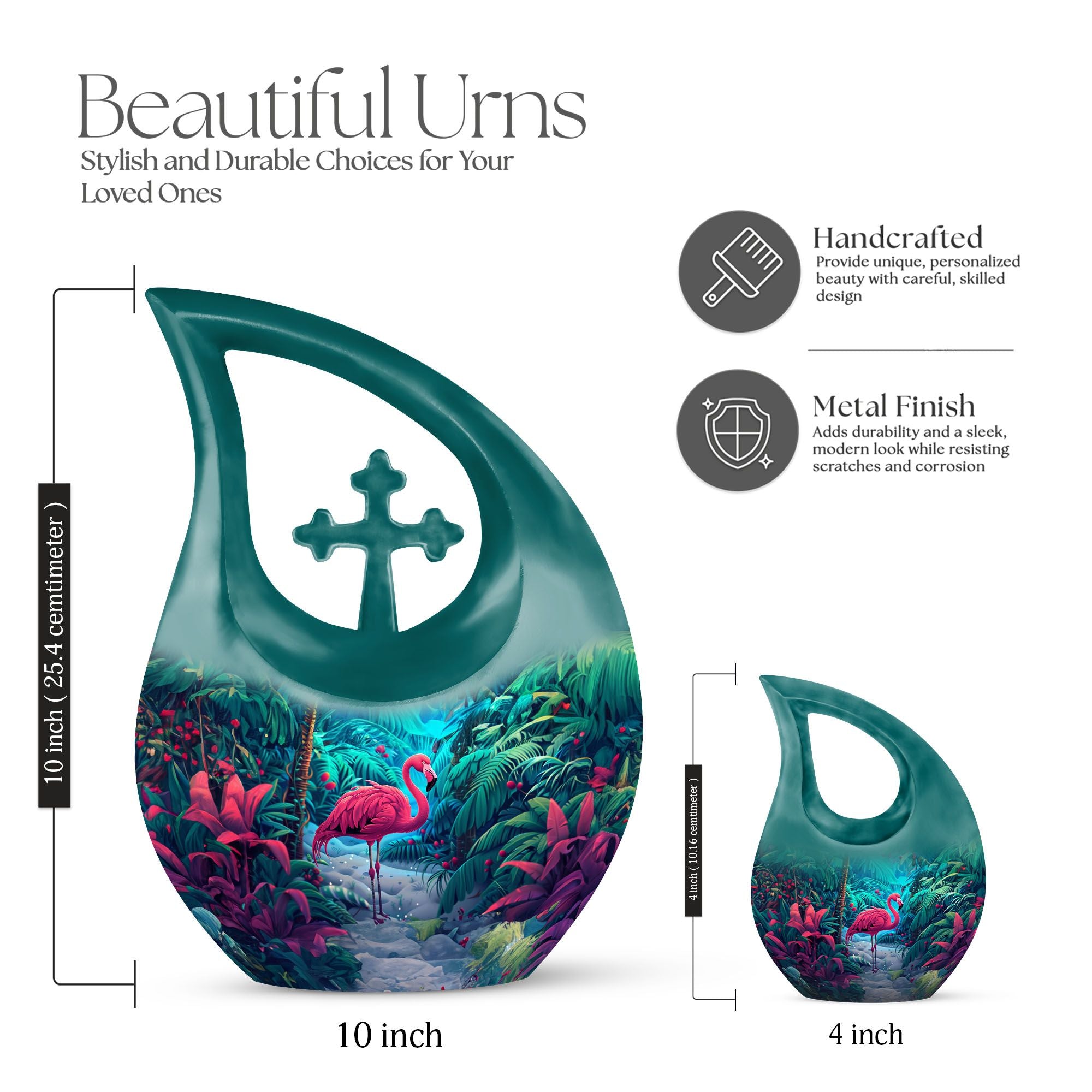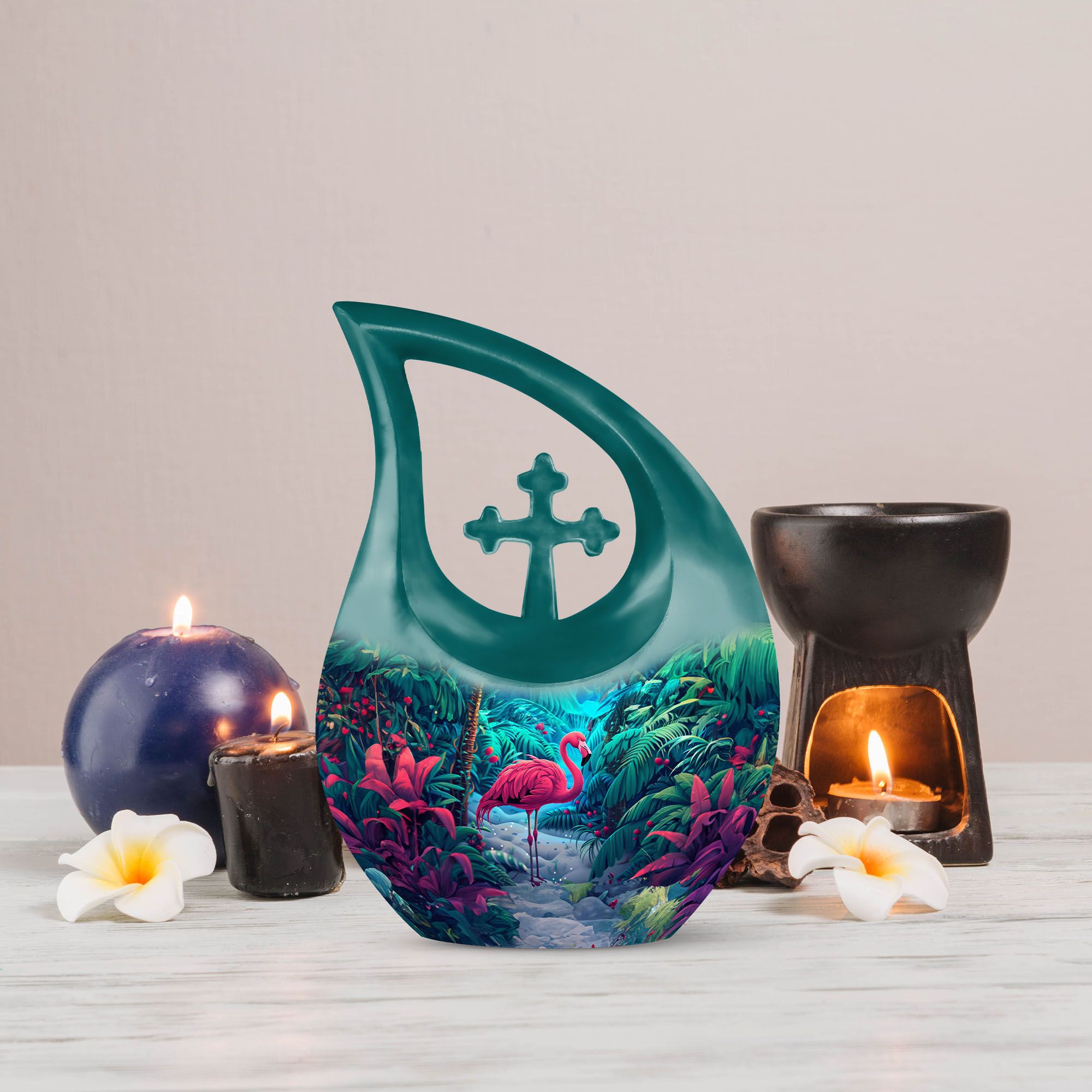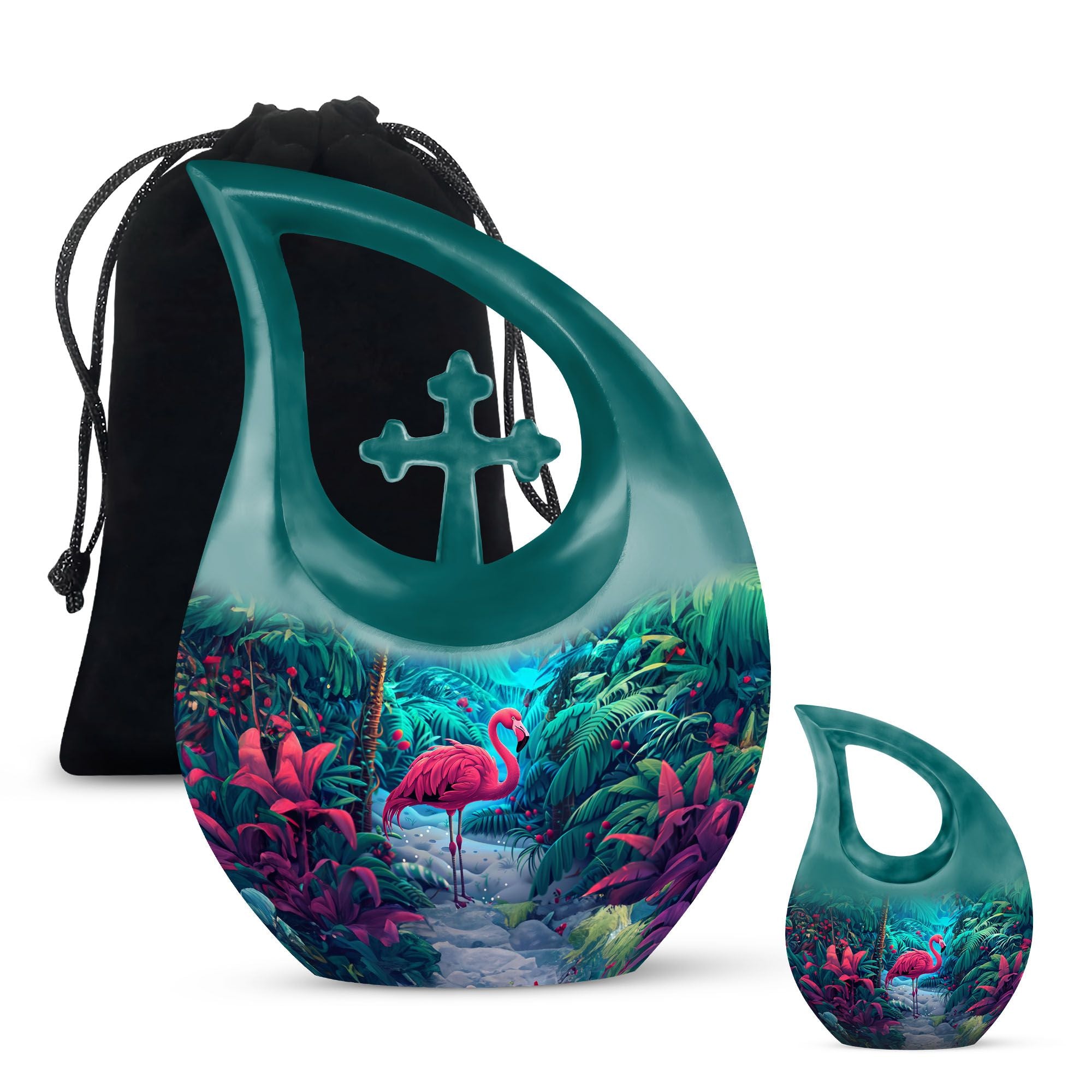 Honor the life of someone dearly loved with this Flamingo Cremation Urn, a soothing green memorial urn designed to bring comfort and gentle remembrance. Its calming flamingo artwork makes it a heartfelt choice for families seeking urns for human ashes adult male burial, urns for adult female small, or a meaningful tribute for both men and women.