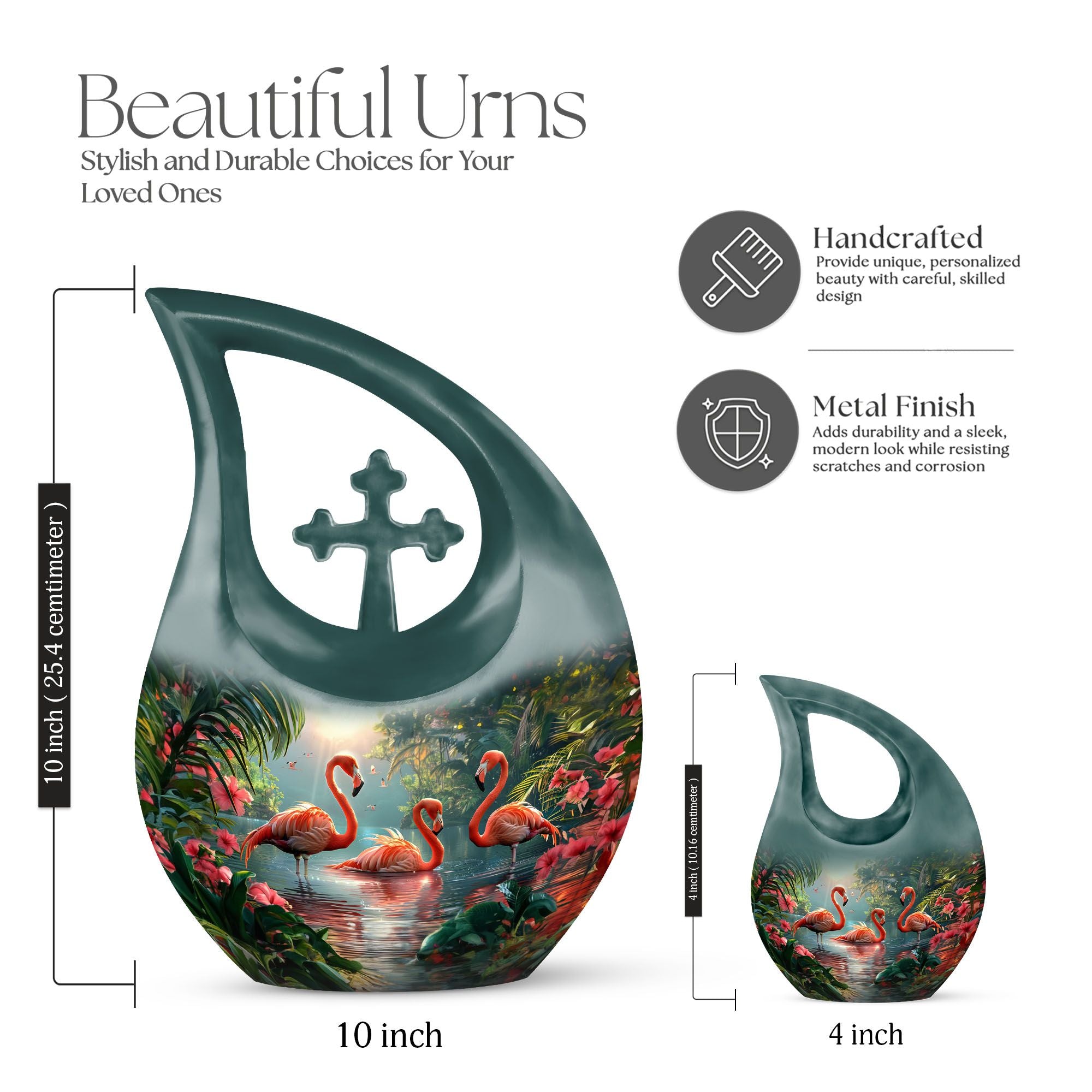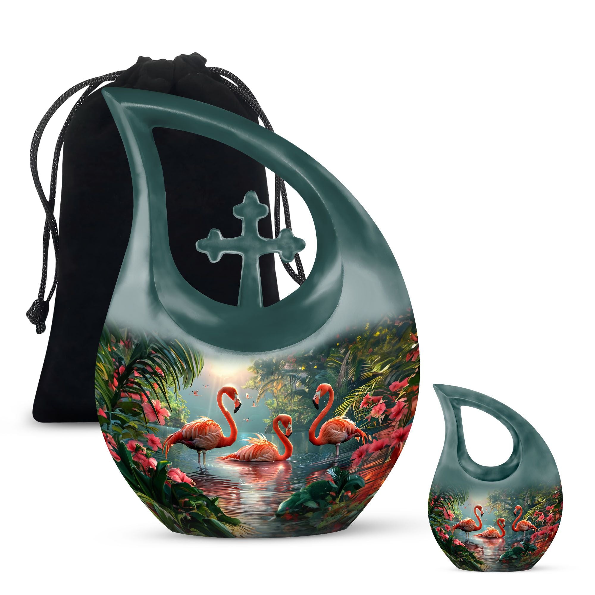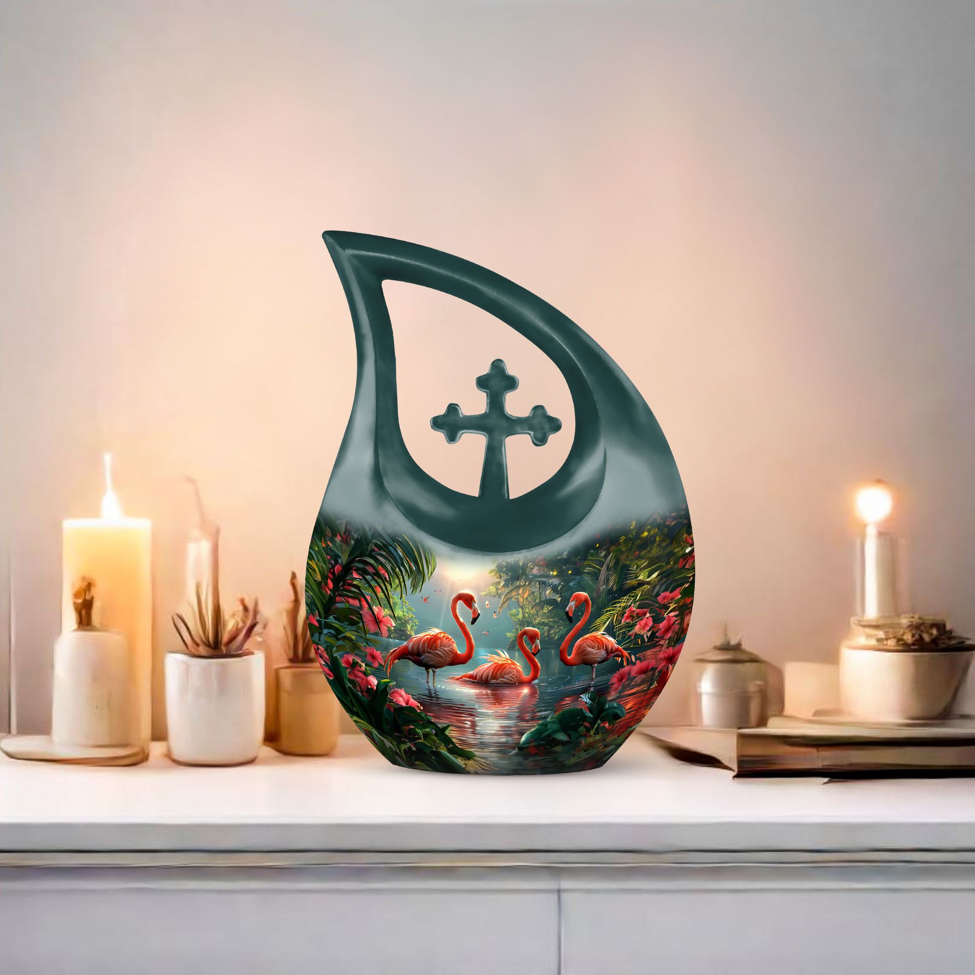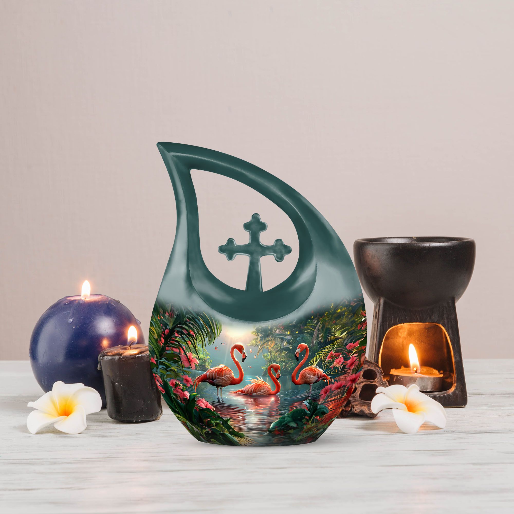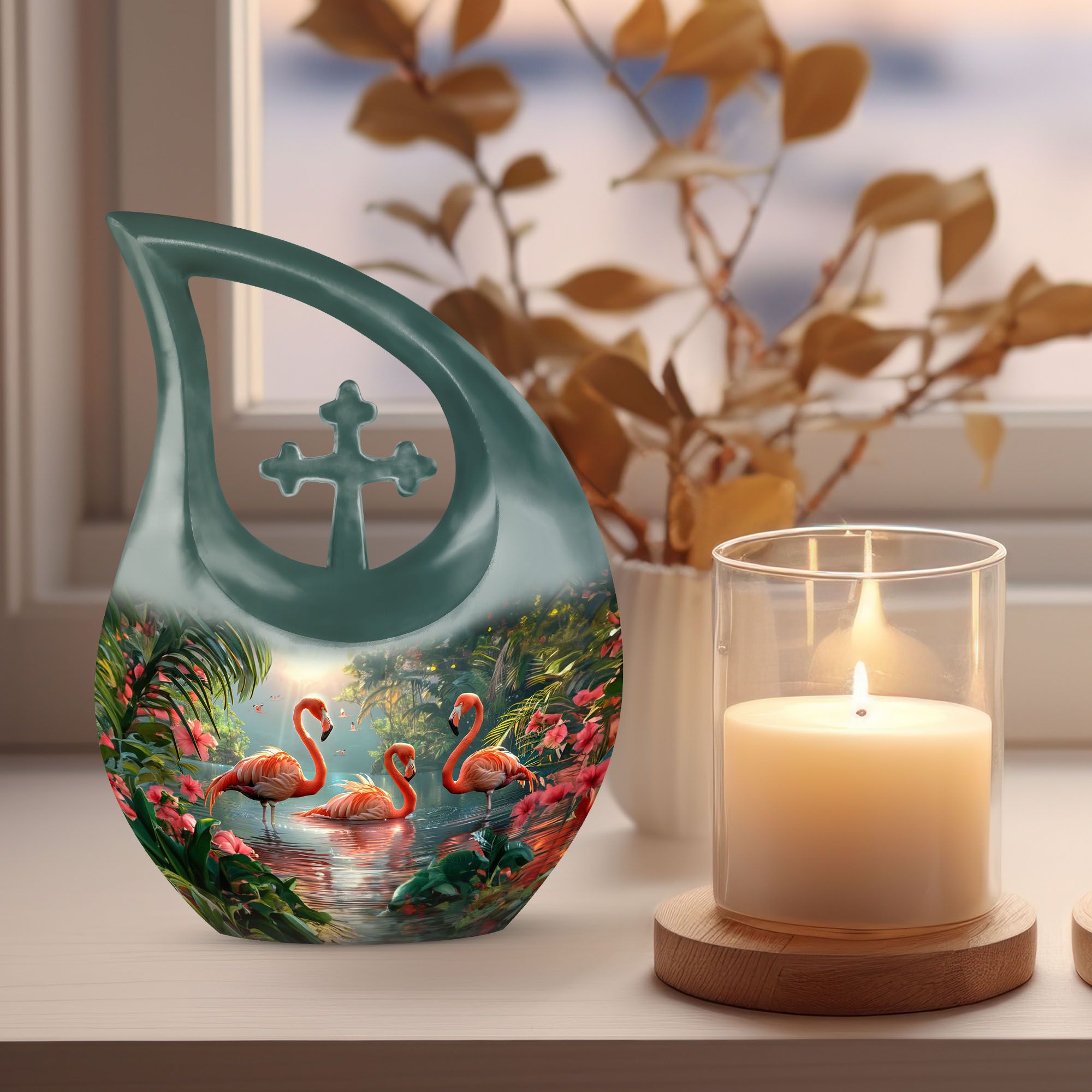 Honor a cherished life with this Flamingo Memorial Urn, a beautifully crafted tribute symbolizing peace, elegance, and everlasting love. With its calming design, it is perfect for families seeking cremation urns large adult, a dignified large decorative urn, or a heartfelt memorial suitable for both men and women.