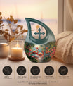 This urn also serves families seeking large cremation urns for human ashes, cremation urns for large human ashes adult, or a timeless large funeral urn, providing dignity and a gentle symbol of remembrance.