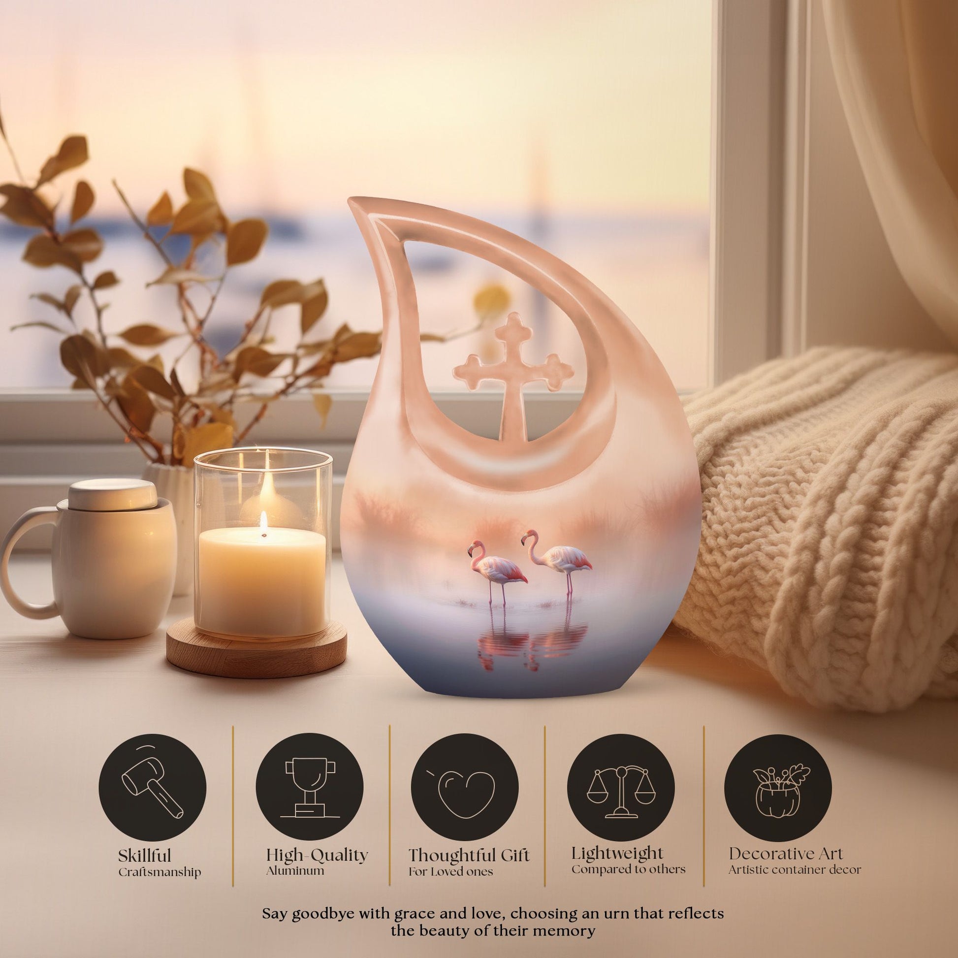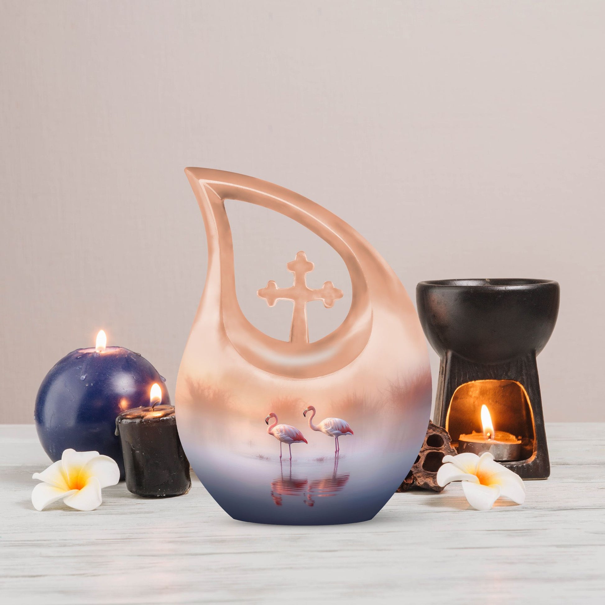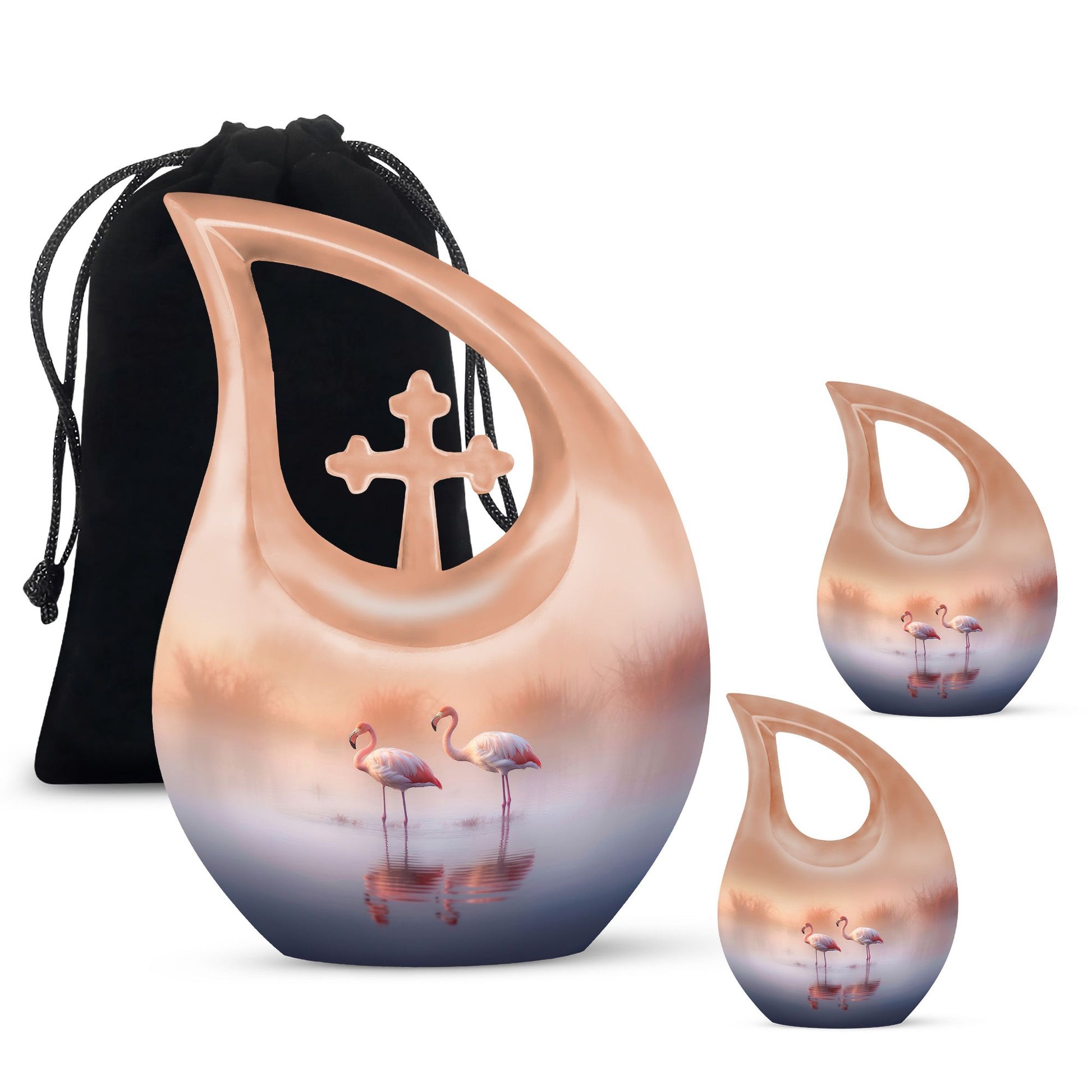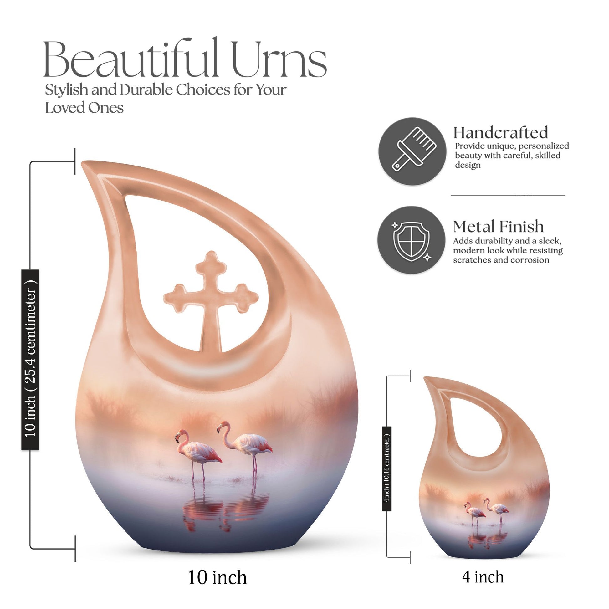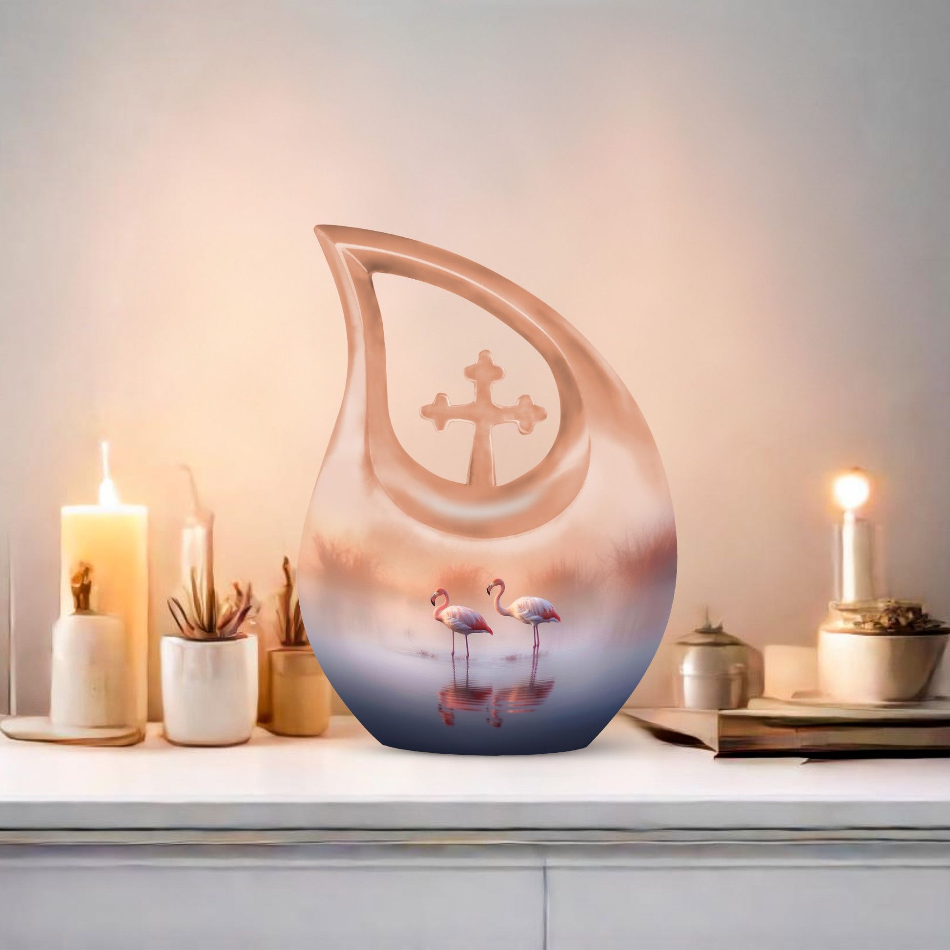 Meticulously crafted from high-quality aluminum, this urn combines durability with artistry. The serene flamingo couple design over a tranquil lake represents harmony and eternal companionship. The smooth finish and hand-painted detailing make this one of the most elegant men urns for human ashes or urns for human ashes adult female. Designed for long-lasting remembrance, it is suitable as an urn for ashes adult male or urn for ashes adult female, ensuring your loved one’s essence remains safe and honored.