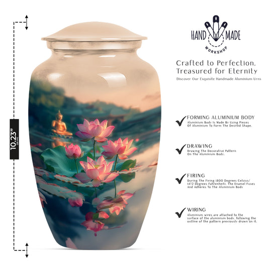 Each urn in this collection is crafted from durable aluminum, combining artistic floral patterns with lasting quality. Designs range from delicate roses and cherry blossoms to vibrant sunflowers, lilies, and forget-me-nots—each representing different meanings such as eternal love, hope, purity, and remembrance. These floral cremation urns are ideal for display in homes, columbariums, or for burial ceremonies.