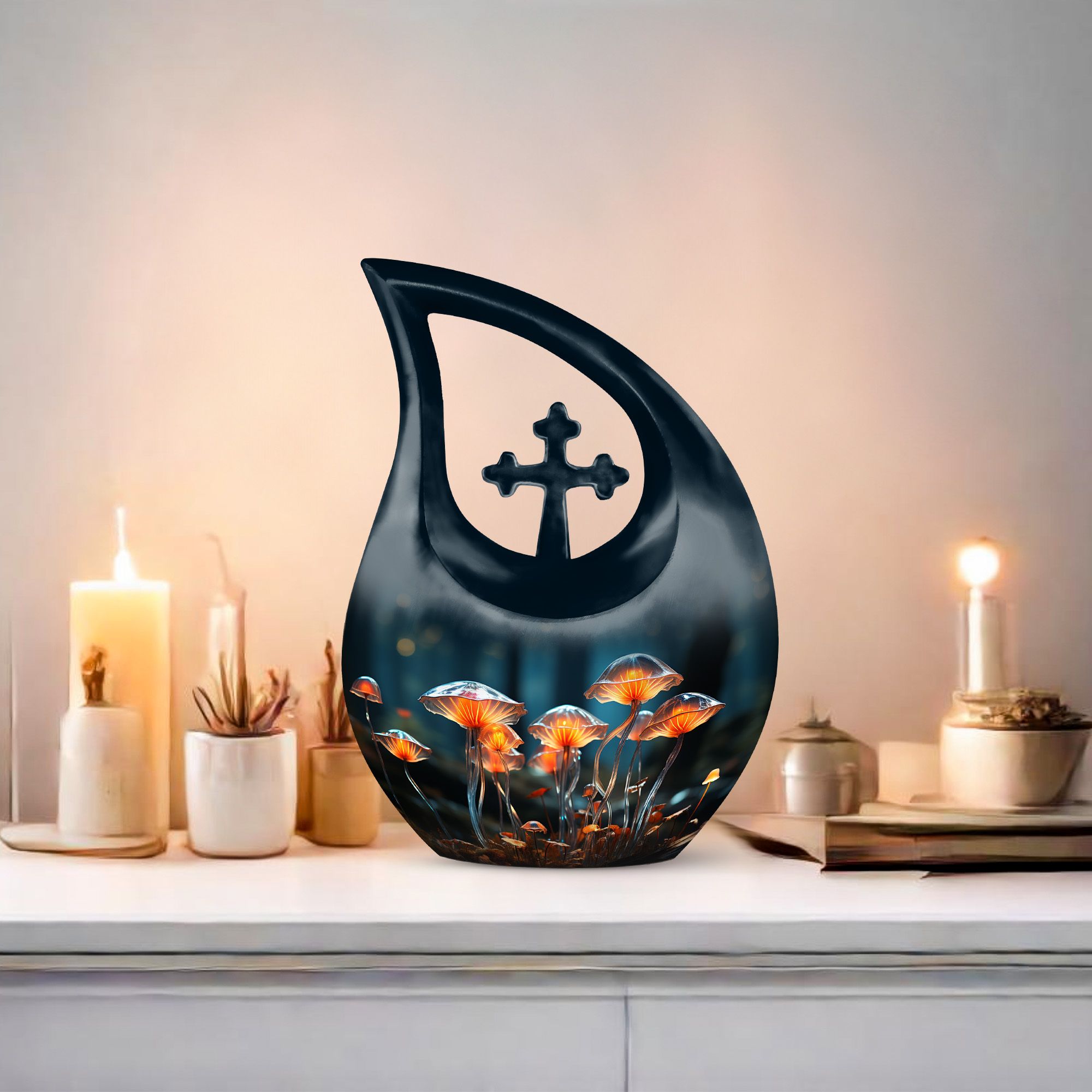 Our Lilly Flower Urn presents a dignified and affordable solution to memorialize your beloved ones. This masterpiece, carefully sized at 10 inches, expertly crafted from resilient Aluminium, providing long-lasting durability. It features a stunning 'Cross Drop' design, adding a touch of sublime elegance. Despite its large capacity of 200 cubic inches, this urn weighs only 3.3 pounds facilitating easy portability. Additionally, the urn extends a beautiful personal touch with options to engrave names, making it genuinely special. Accompanying the urn is a velvet pouch, ensuring careful containment of ashes. Whether you're accommodating adult or minuscule ashes, our urn is capable of housing each with respect. Amplify remembrance with this Lilly Flower Urn, an emblem of beauty and honor. It encapsulates the essence of memorial urns, offering a touching tribute to those dearly departed. Note that our large-sized urn implies it's fitting for substantial remains. Sought after by users looking for 'Custom Urns For Human Ashes', 'Cremation Urns For Adults', or 'Small Urns For Ashes', this unique urn provides the graceful resting place your loved one deserves.