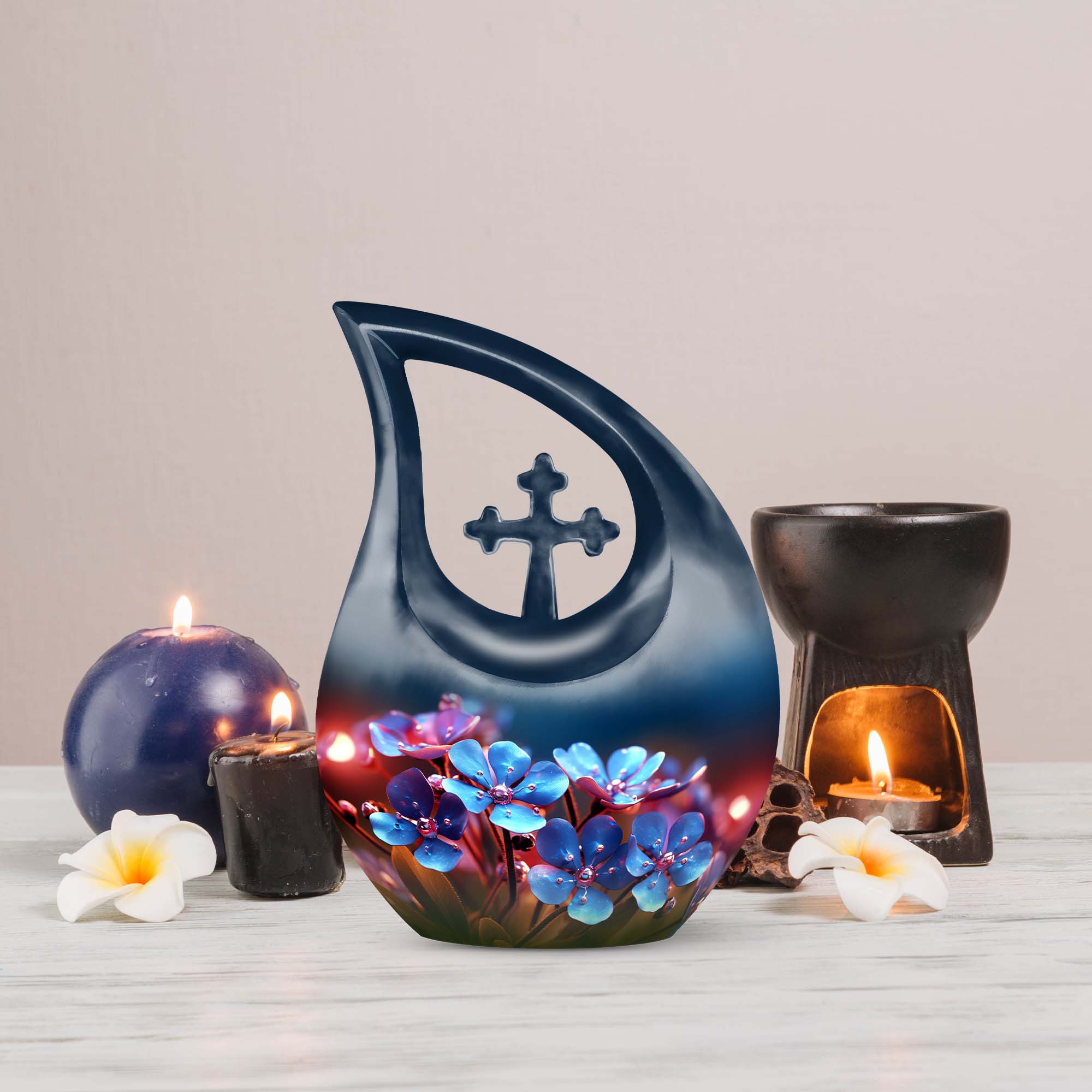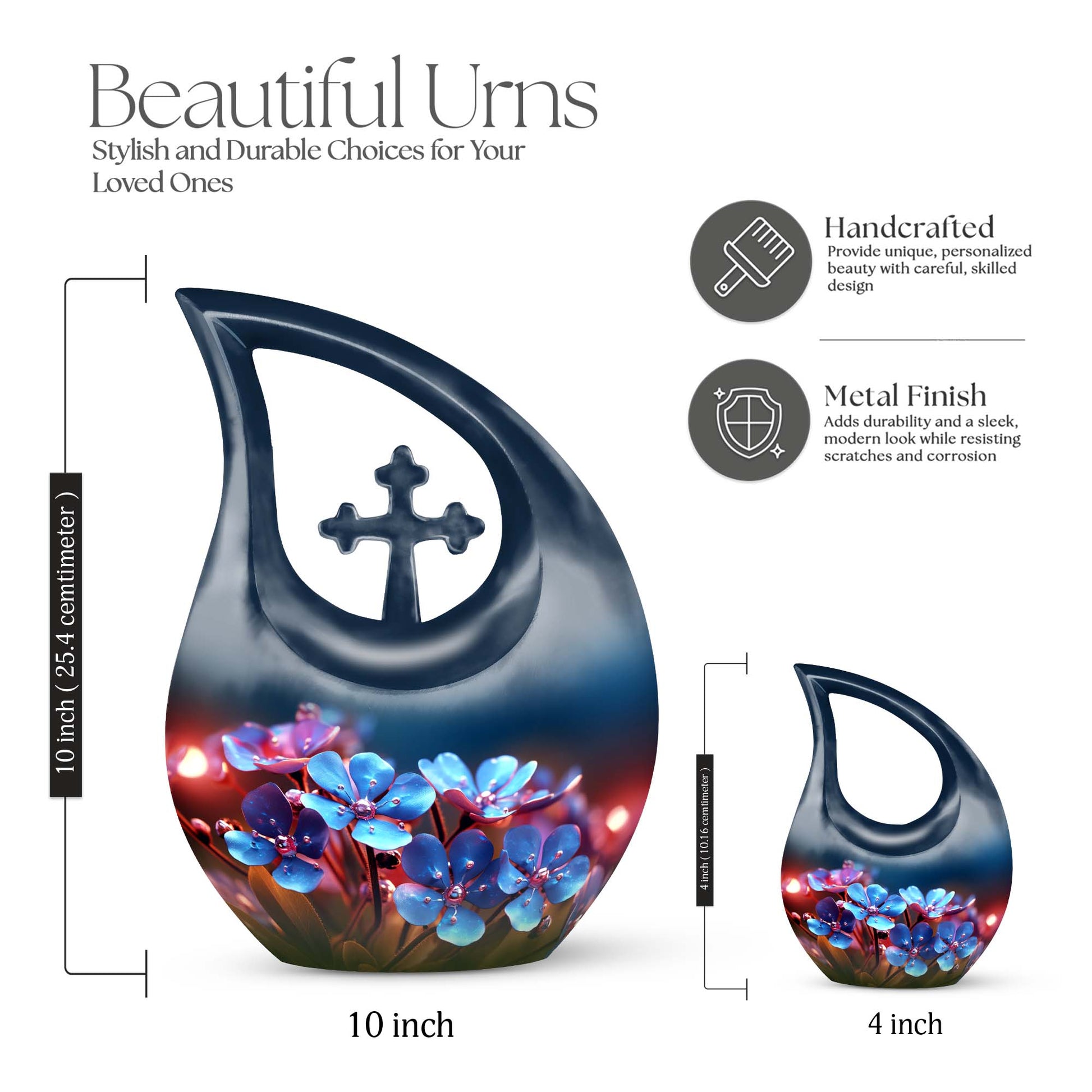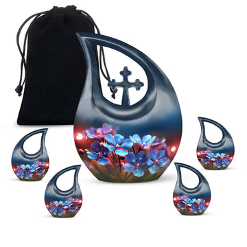 Celebrate the love, grace, and spirit of your mother with this Blue Blossoms Floral Cremation Urn for Mom, a heartfelt memorial that symbolizes eternal beauty and remembrance. Designed with compassion and care, this urn serves as both an elegant home display and a dignified burial urn for ashes, providing comfort and connection for years to come.