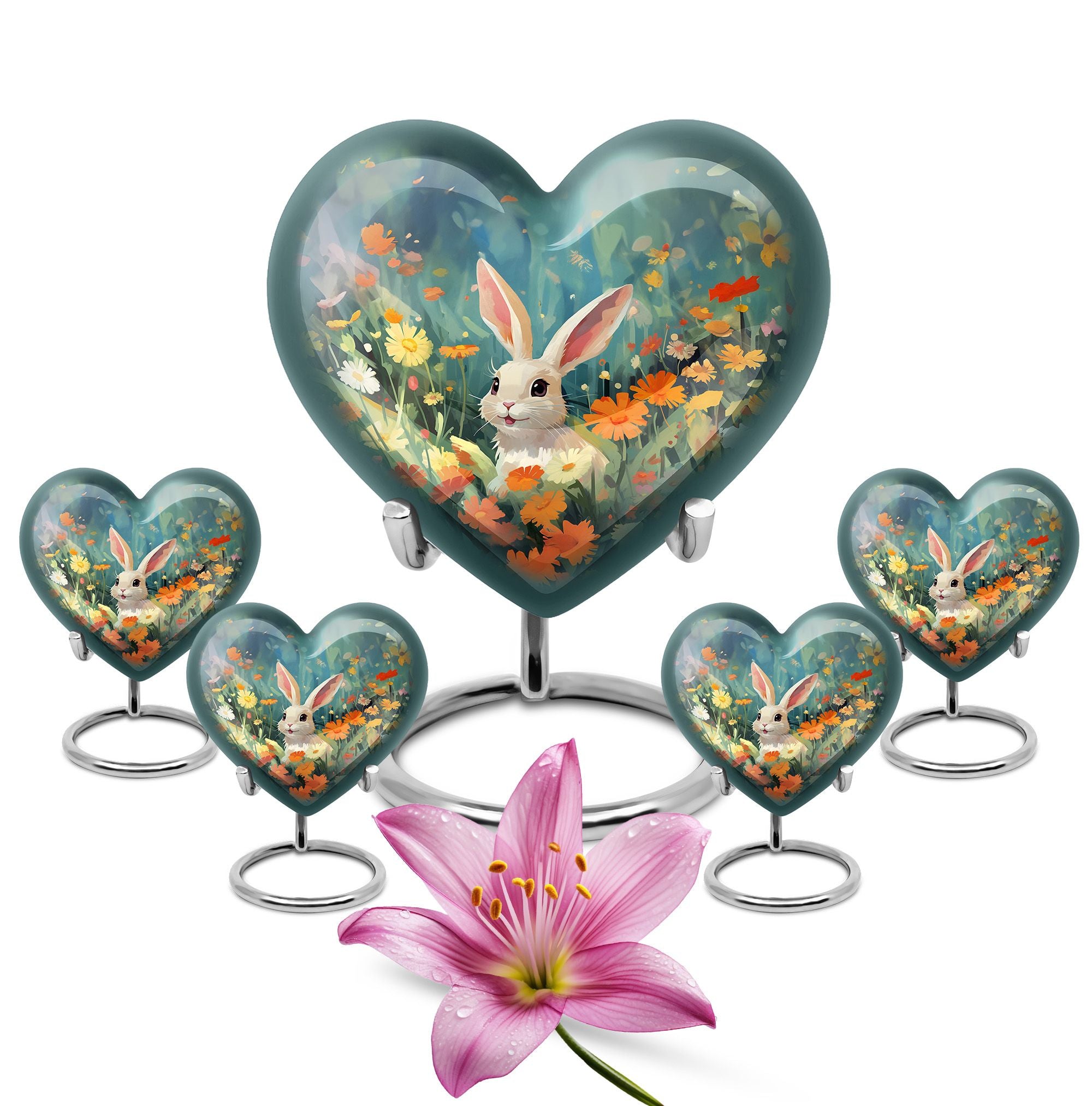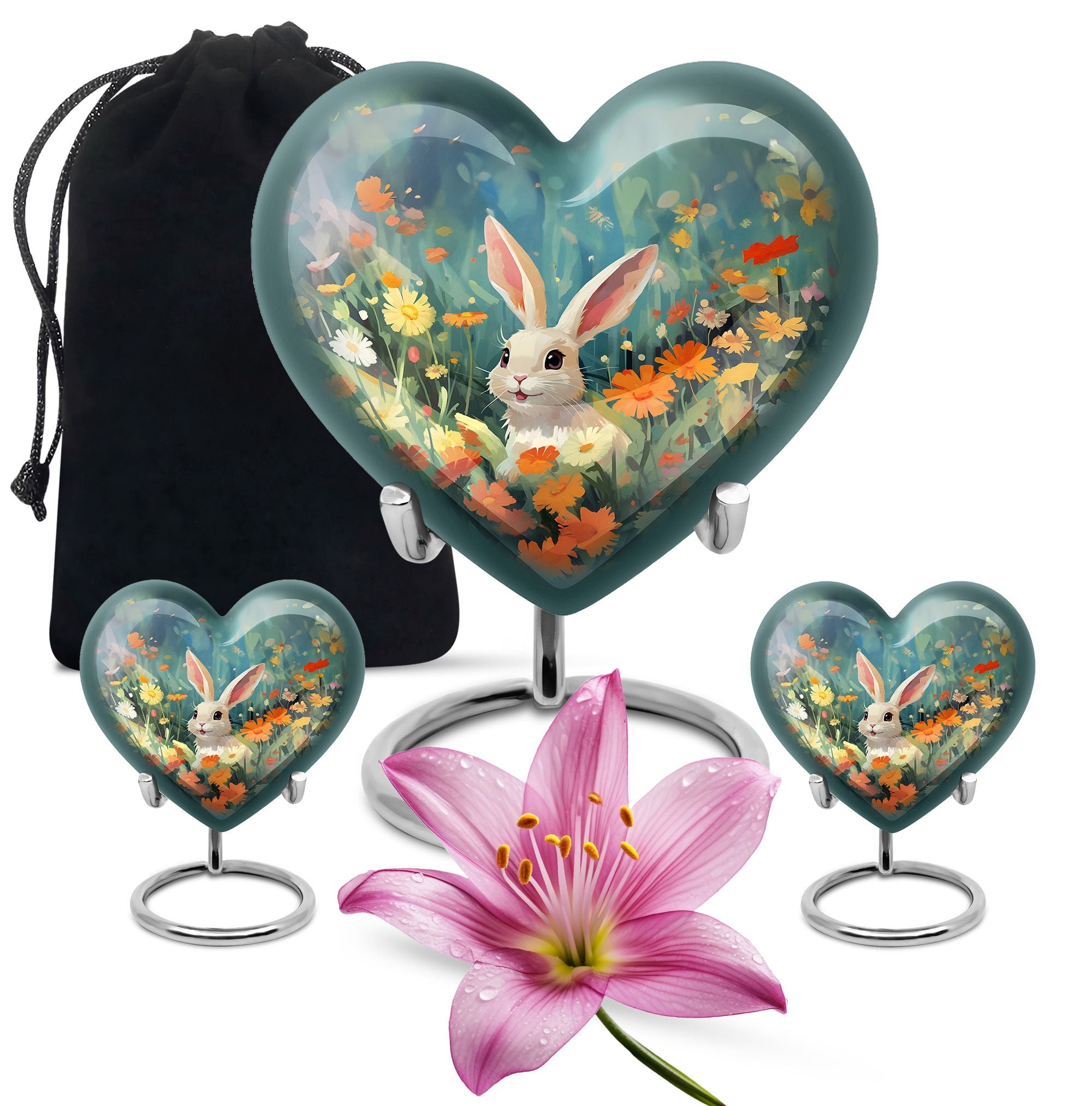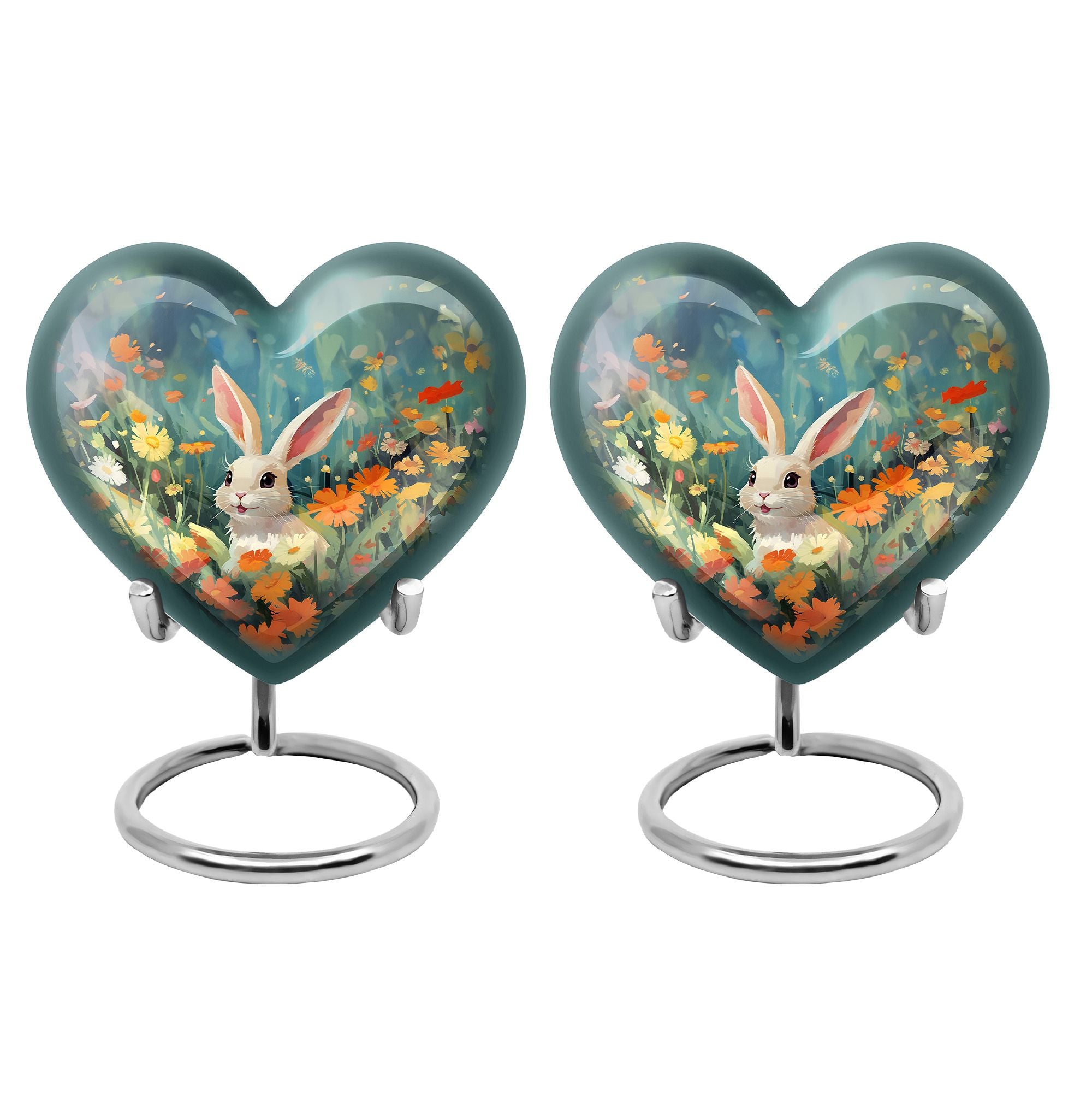 Cherish the memories of your loyal friend with this Colorful Flowers & Bunny Cremation Urn. Designed to celebrate the joy and love pets bring, this pet urn for ashes offers a heartfelt way to honor their memory. Perfect for families seeking pet urns for ashes that reflect the personality of their cherished companion.