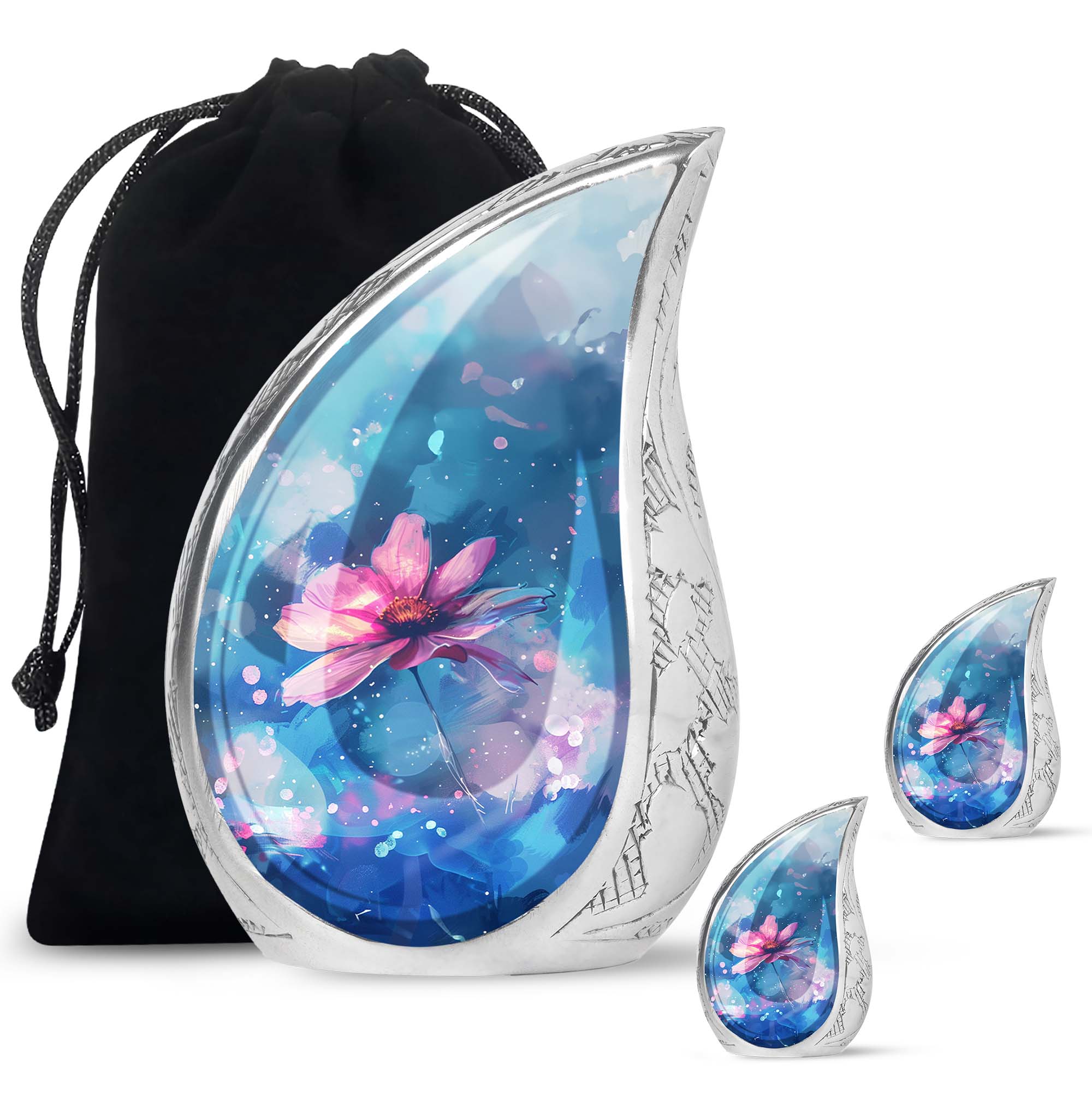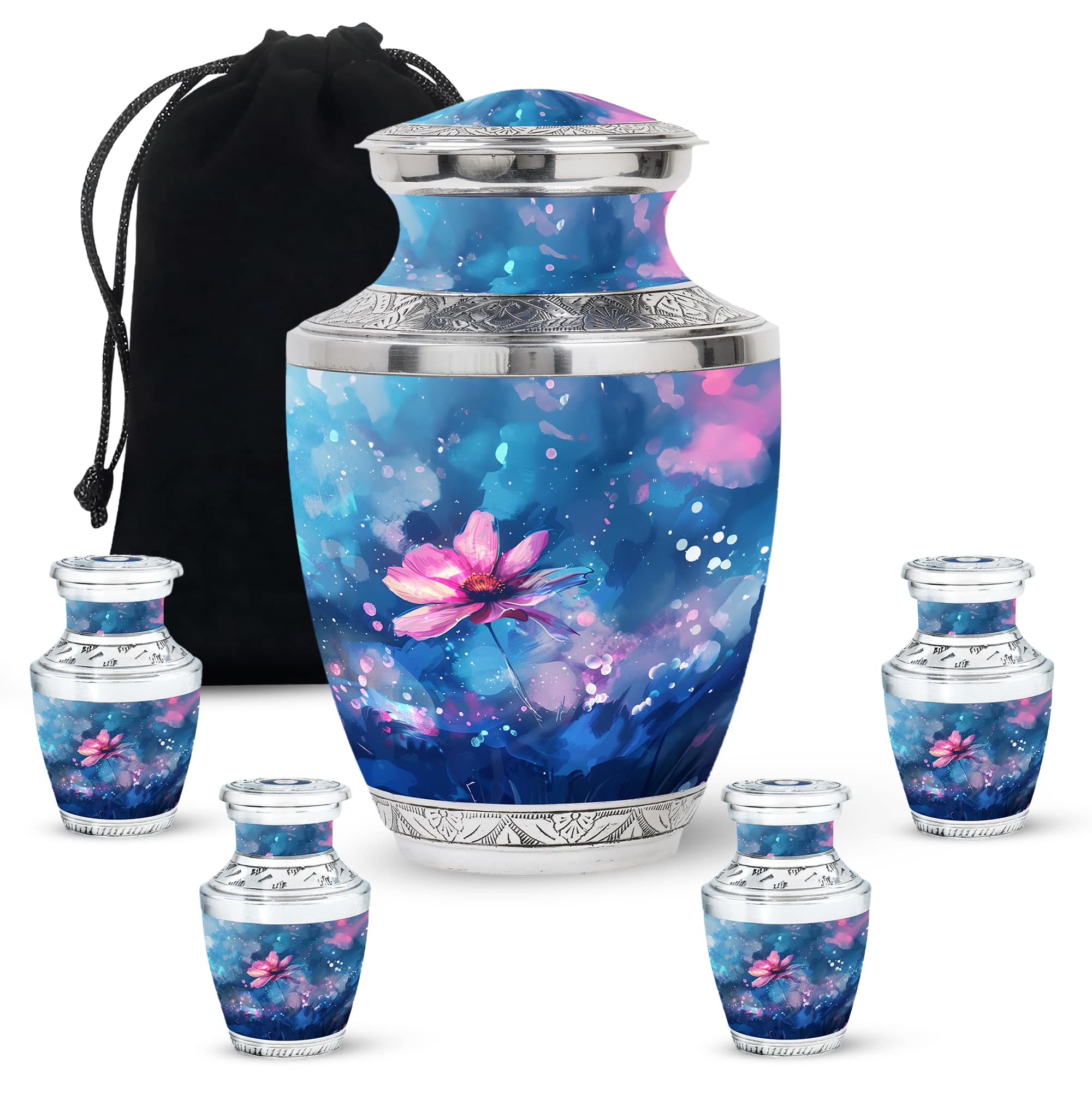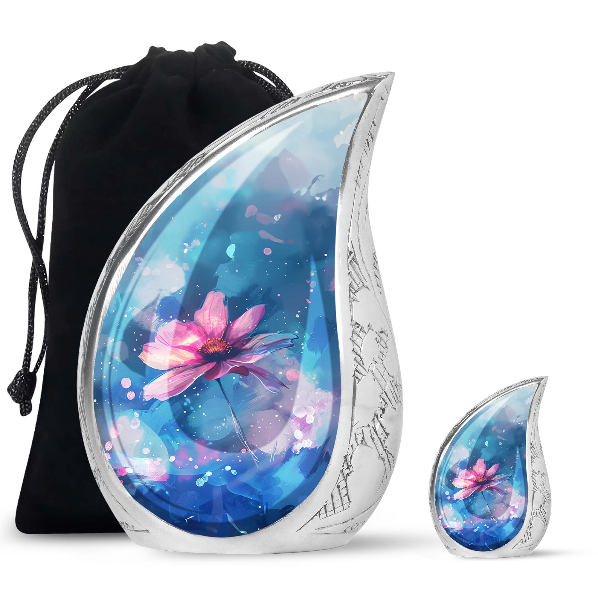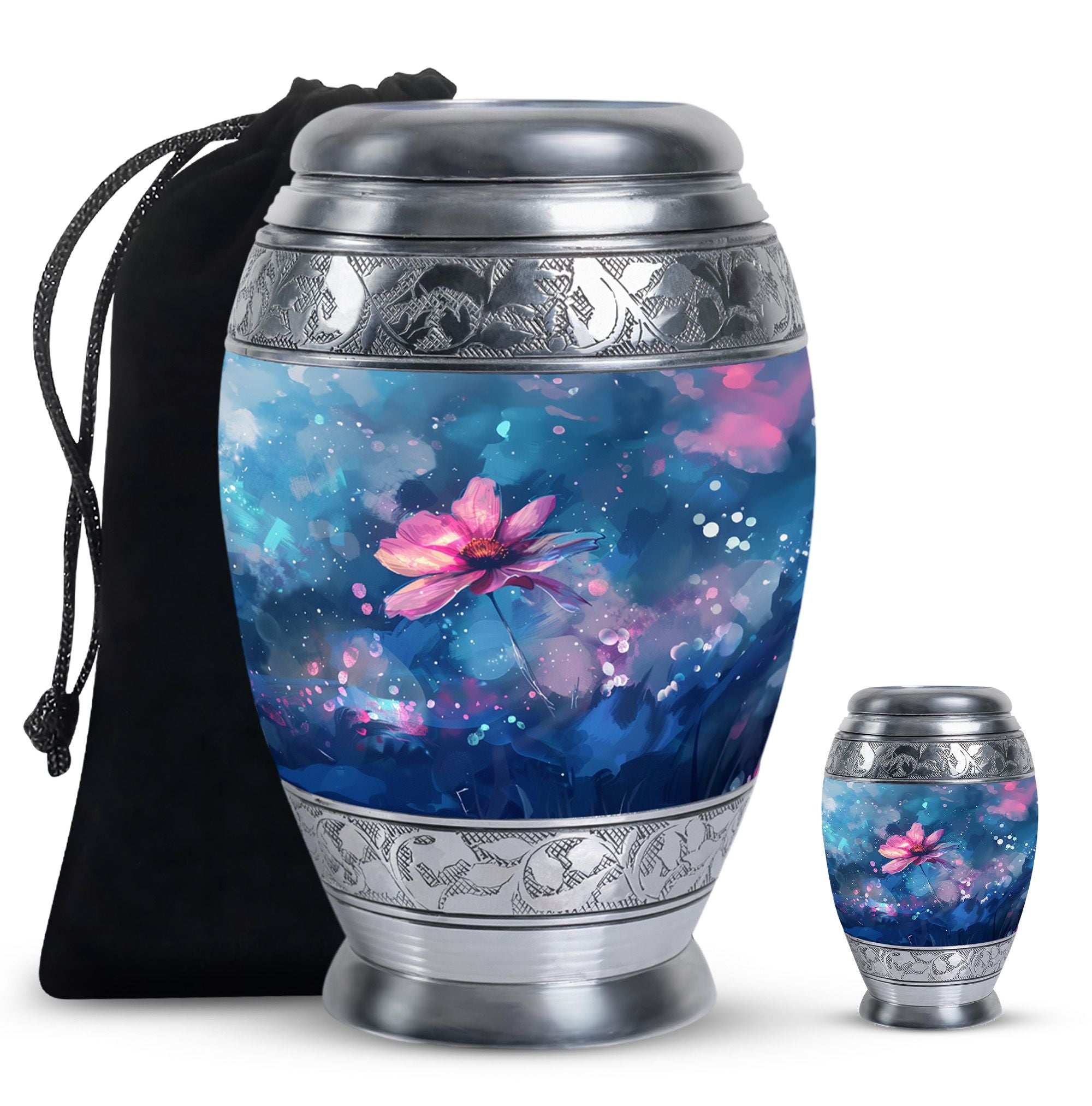 Crafted with precision and care, this cremation urn for women features a stunning pink floral pattern that radiates warmth and femininity. Made from high-quality aluminum, it ensures durability and lasting elegance. Ideal as a small urn for ashes for women, mini urn for ashes for women, or full-size memorial, its smooth finish and fine detailing make it a beautiful decorative piece for display or a meaningful funeral urn for women. Designed with practicality in mind, it offers secure storage with a threaded lid, ensuring her ashes are preserved with dignity.