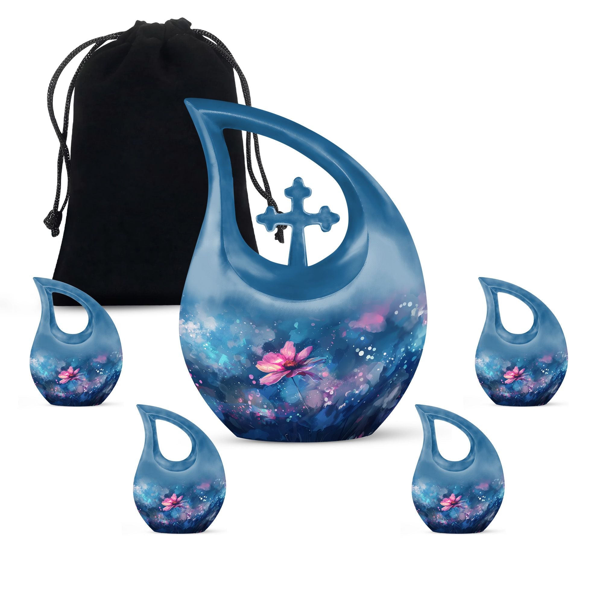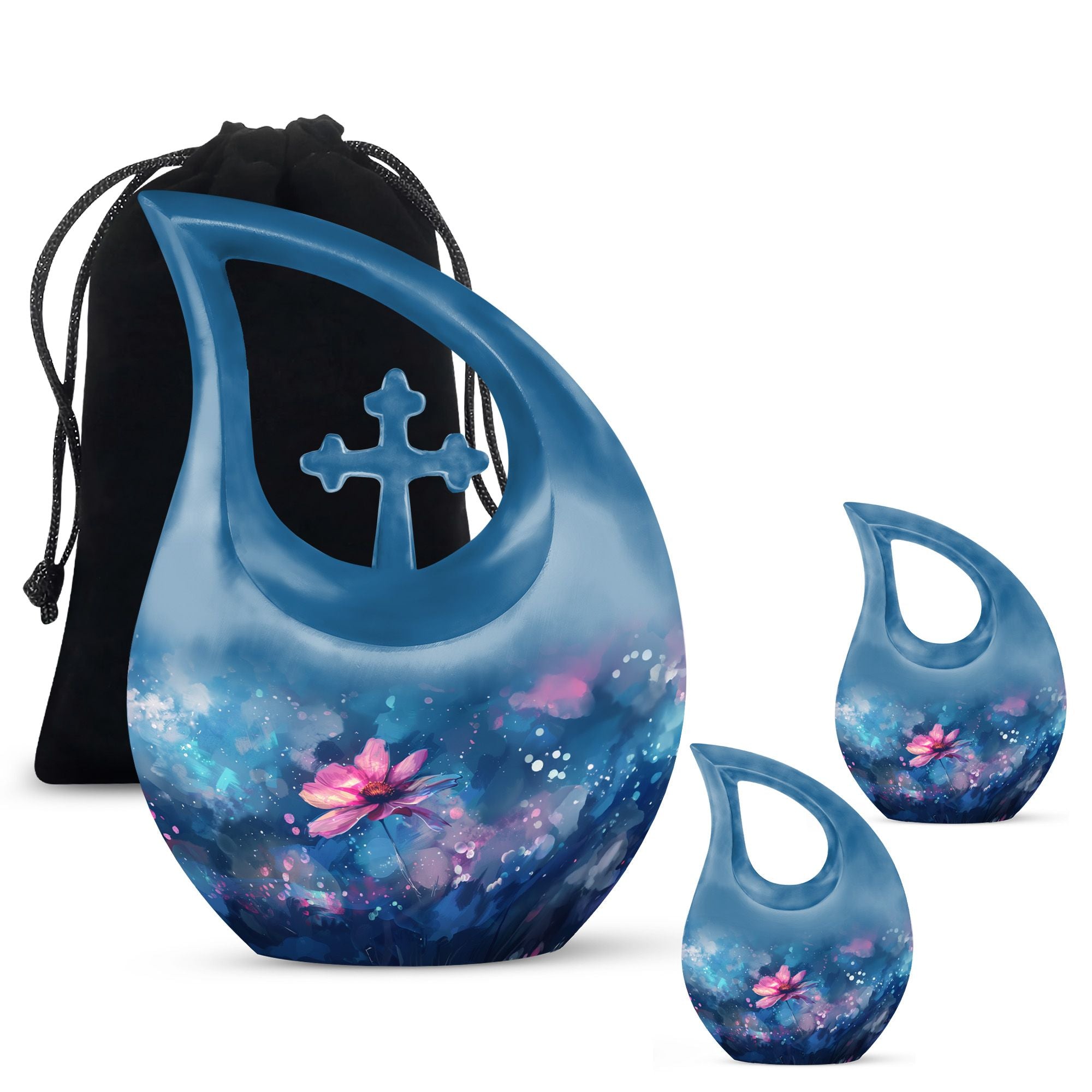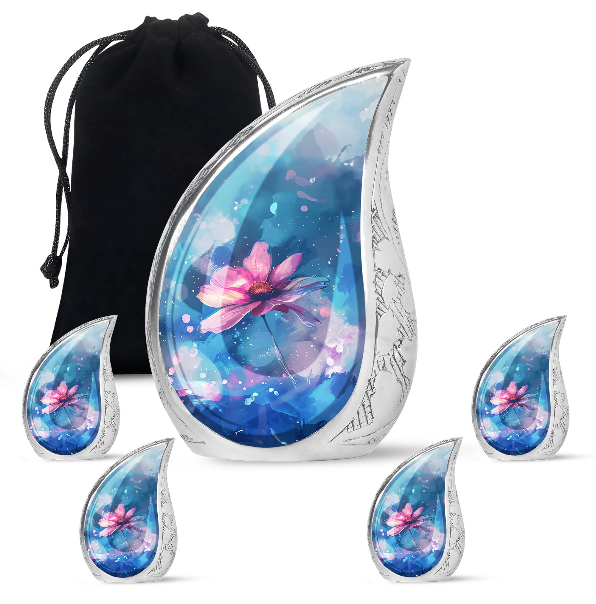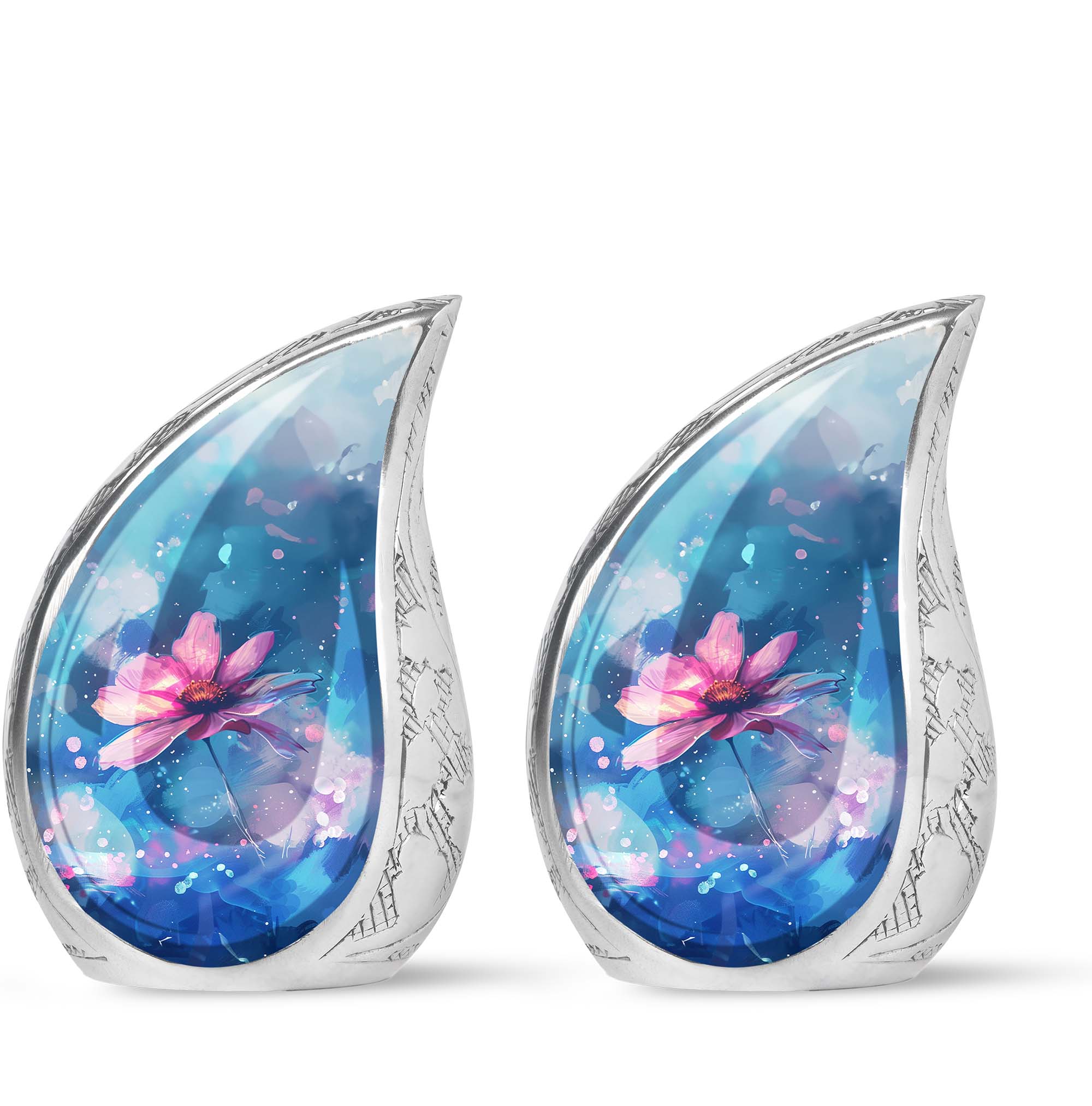 Crafted with precision and care, this cremation urn for women features a stunning pink floral pattern that radiates warmth and femininity. Made from high-quality aluminum, it ensures durability and lasting elegance. Ideal as a small urn for ashes for women, mini urn for ashes for women, or full-size memorial, its smooth finish and fine detailing make it a beautiful decorative piece for display or a meaningful funeral urn for women. Designed with practicality in mind, it offers secure storage with a threaded lid, ensuring her ashes are preserved with dignity.