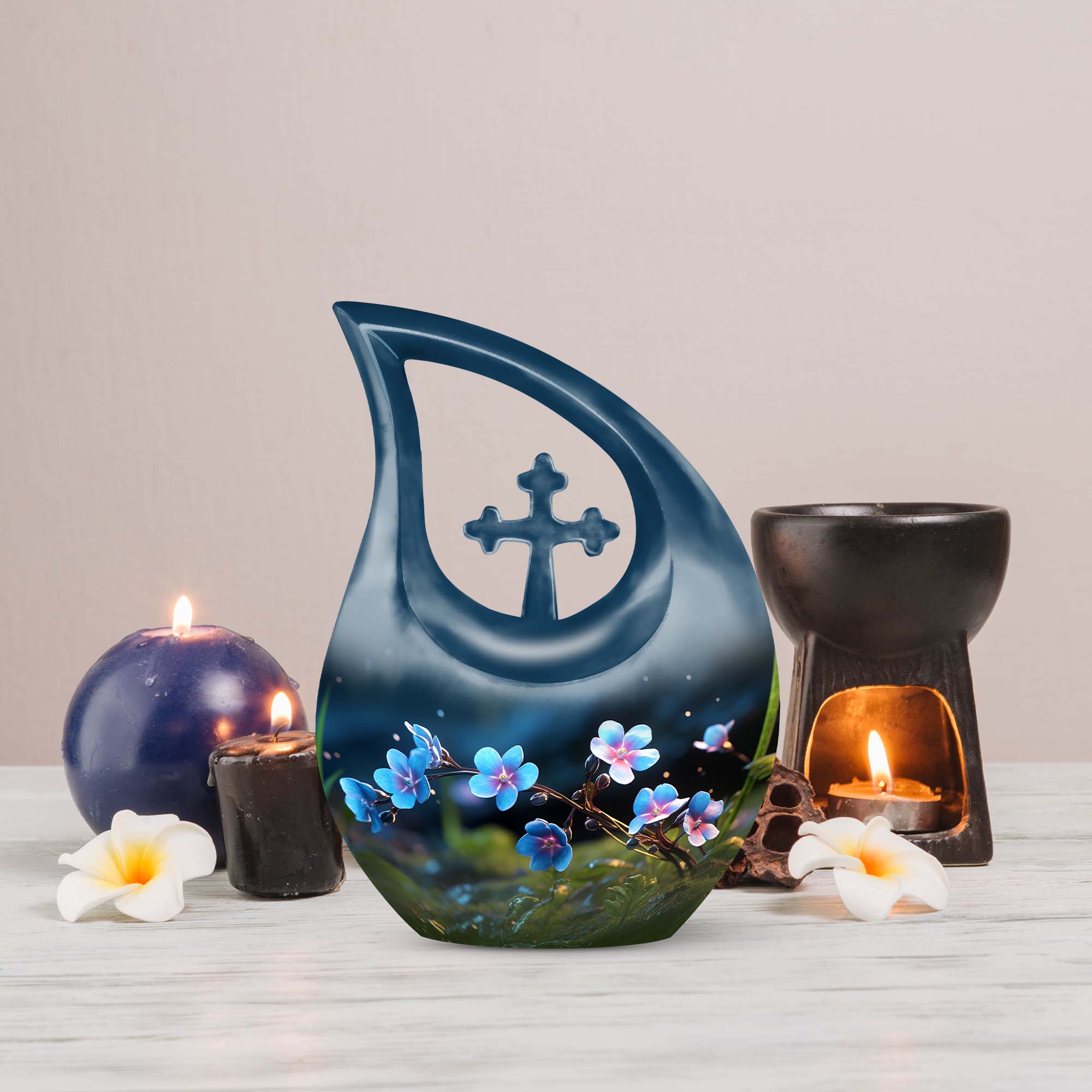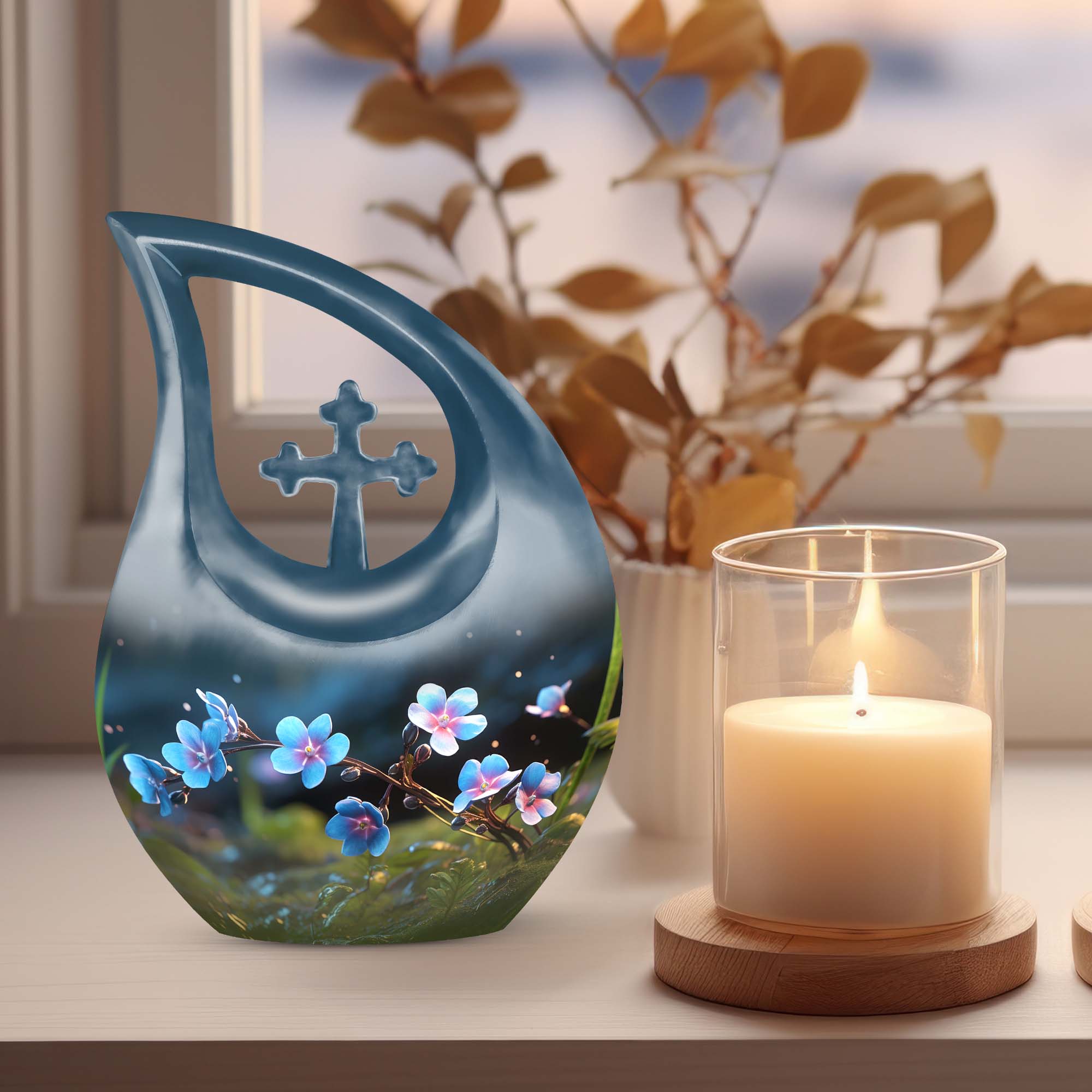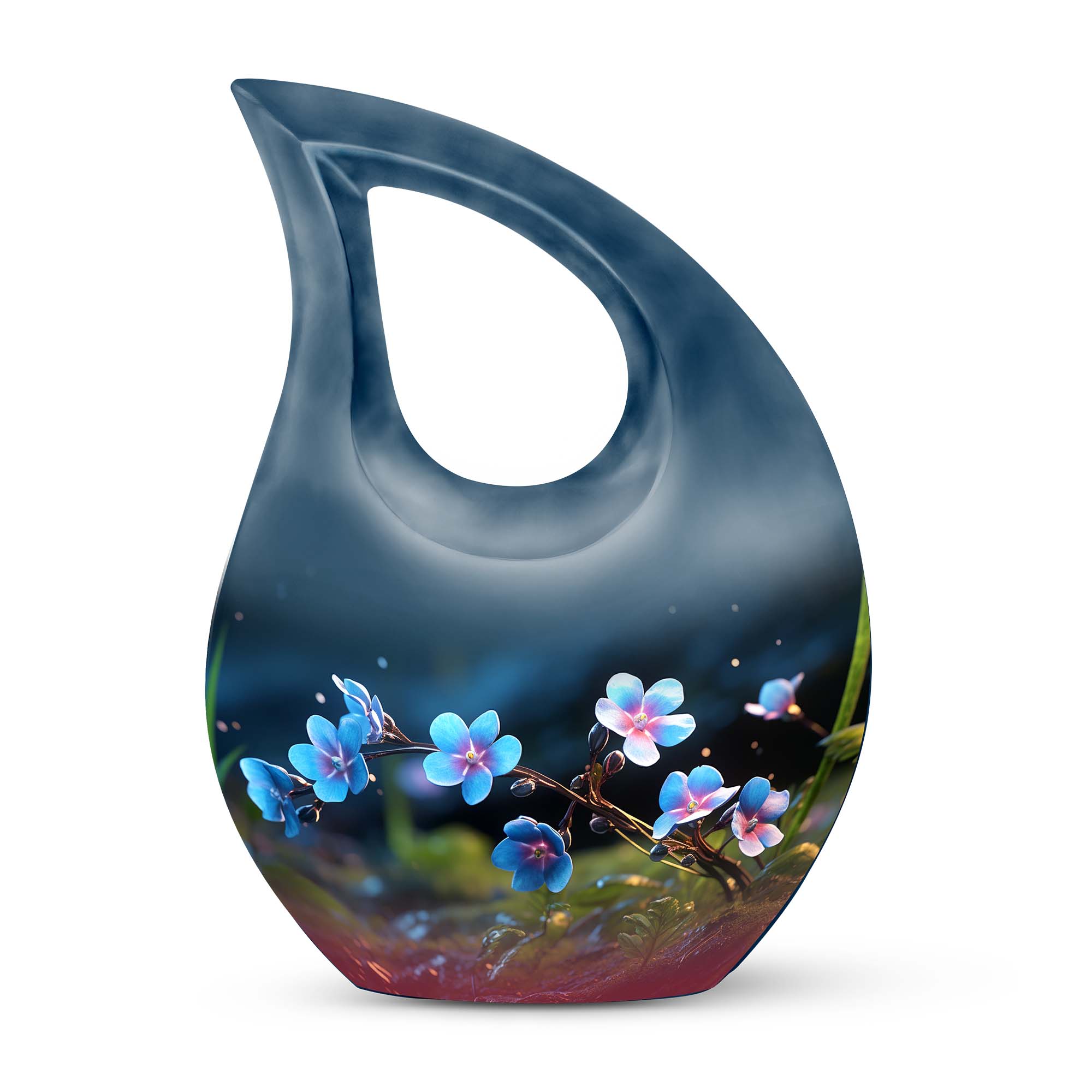 Celebrate a cherished life with this Blue Myosotis Flower Cremation Urn, a delicate floral memorial that symbolizes eternal love and remembrance. Designed with compassion and grace, this funeral cremation urn for ashes brings comfort and beauty to any memorial setting — a peaceful tribute for those who will forever be remembered.