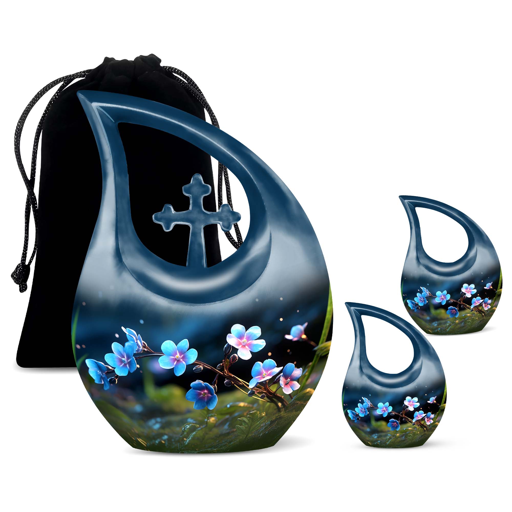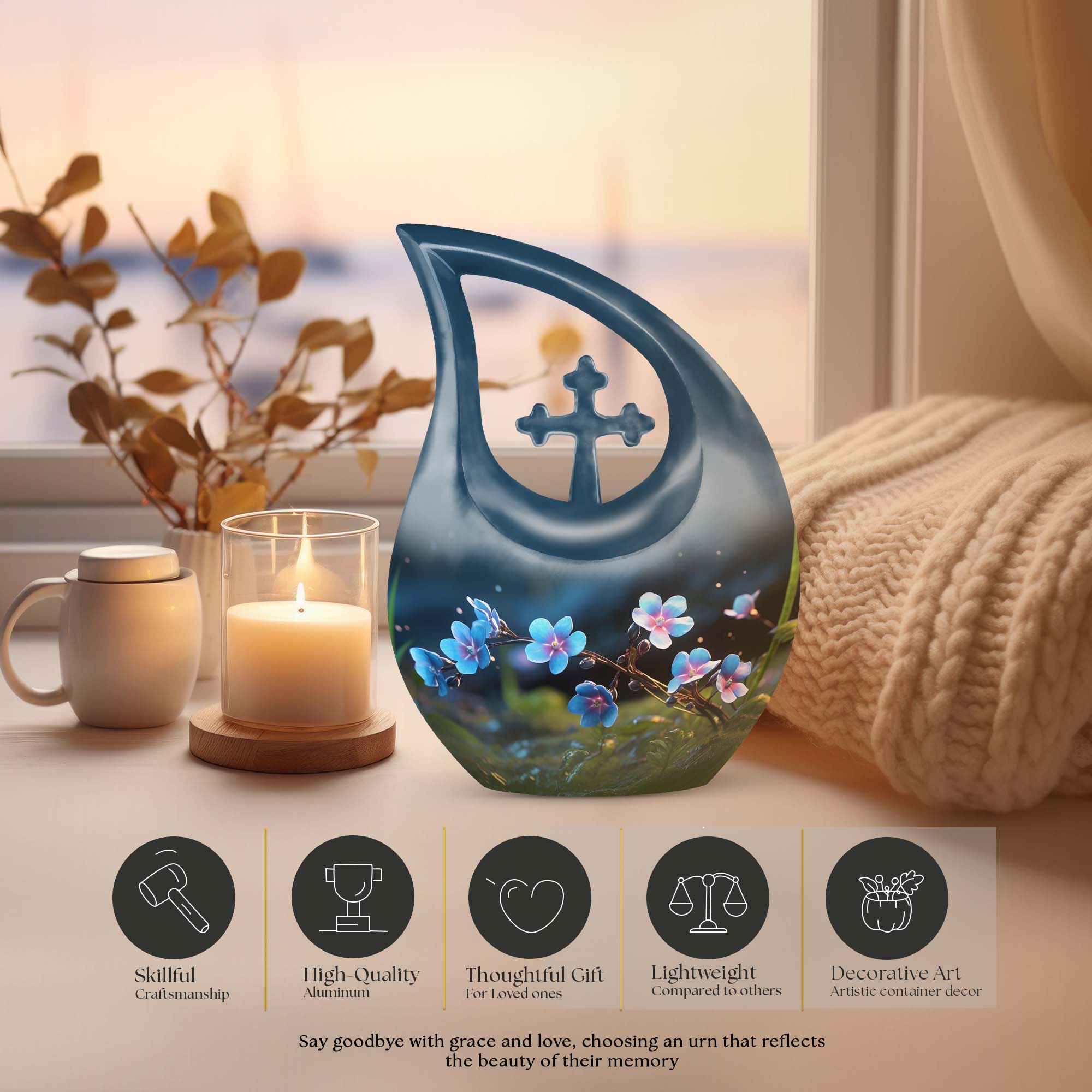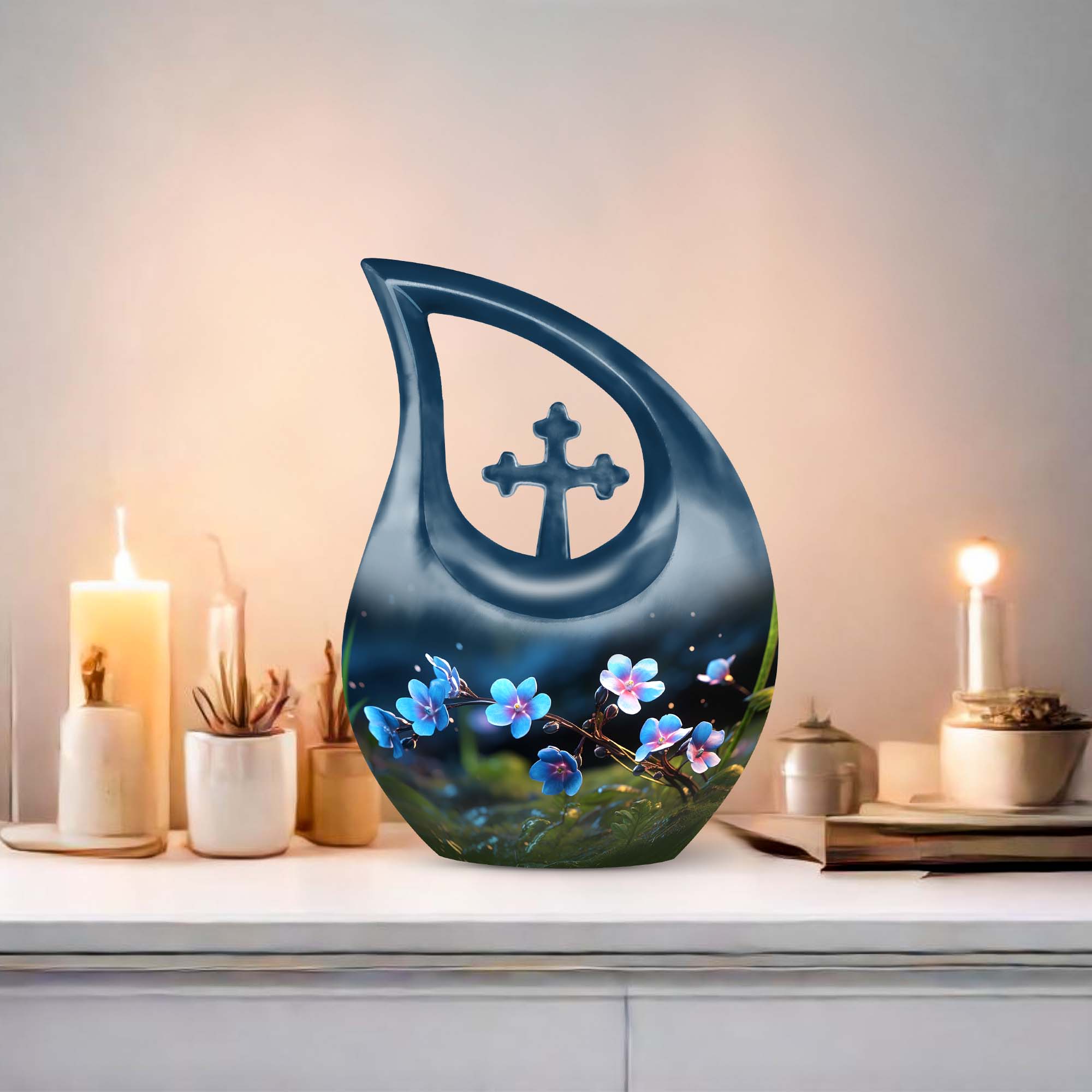 Celebrate a cherished life with this Blue Myosotis Flower Cremation Urn, a delicate floral memorial that symbolizes eternal love and remembrance. Designed with compassion and grace, this funeral cremation urn for ashes brings comfort and beauty to any memorial setting — a peaceful tribute for those who will forever be remembered.