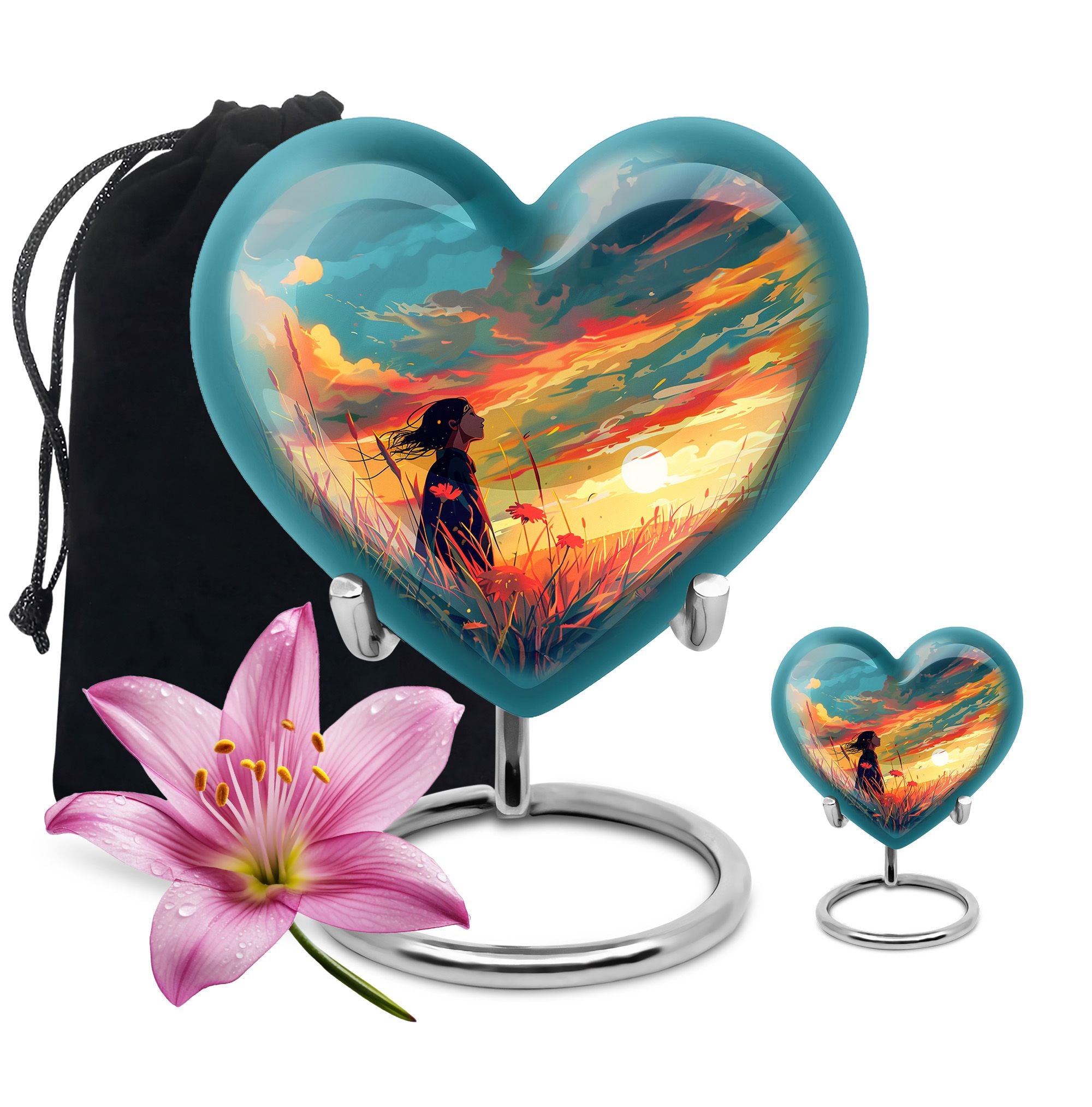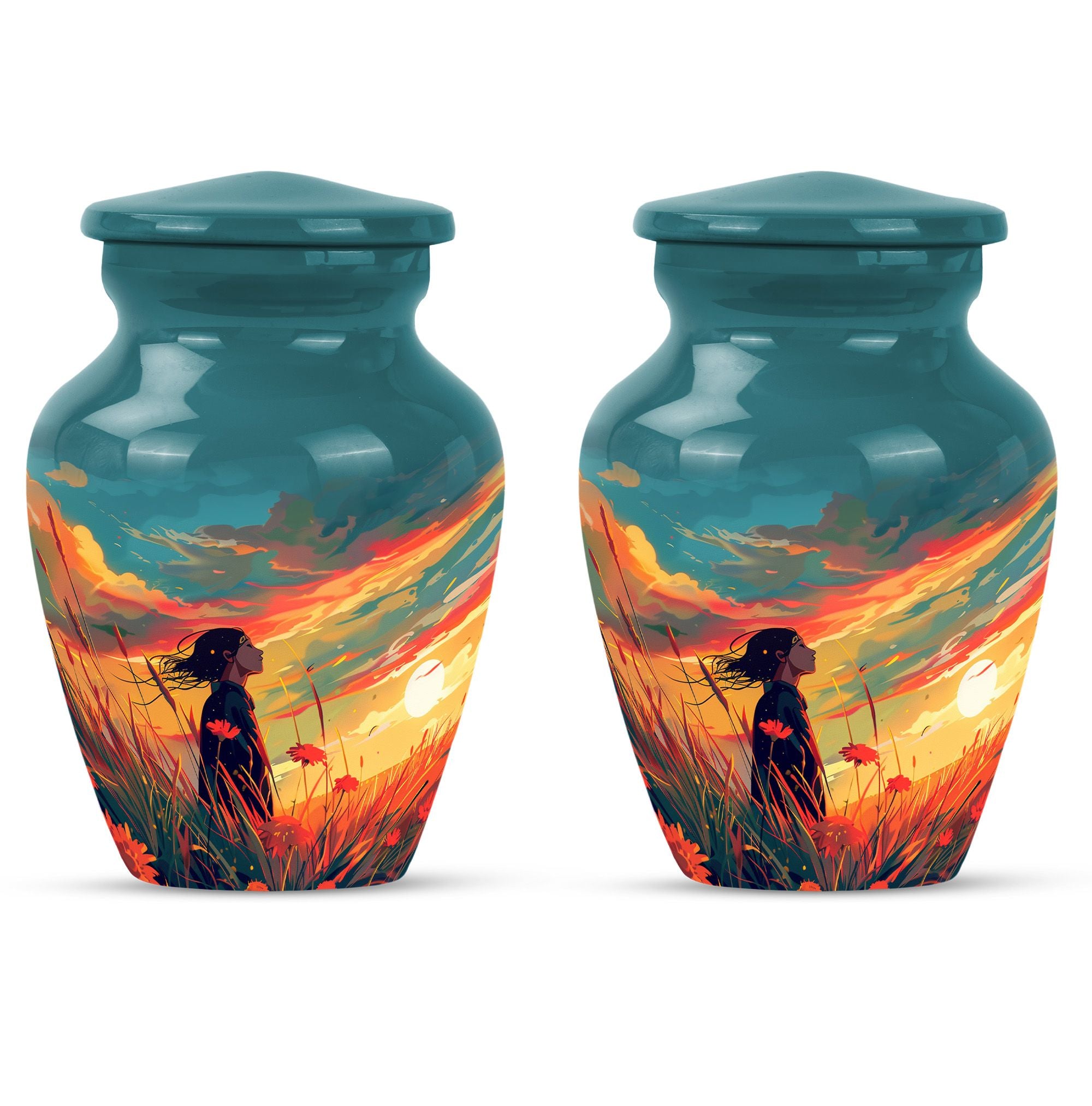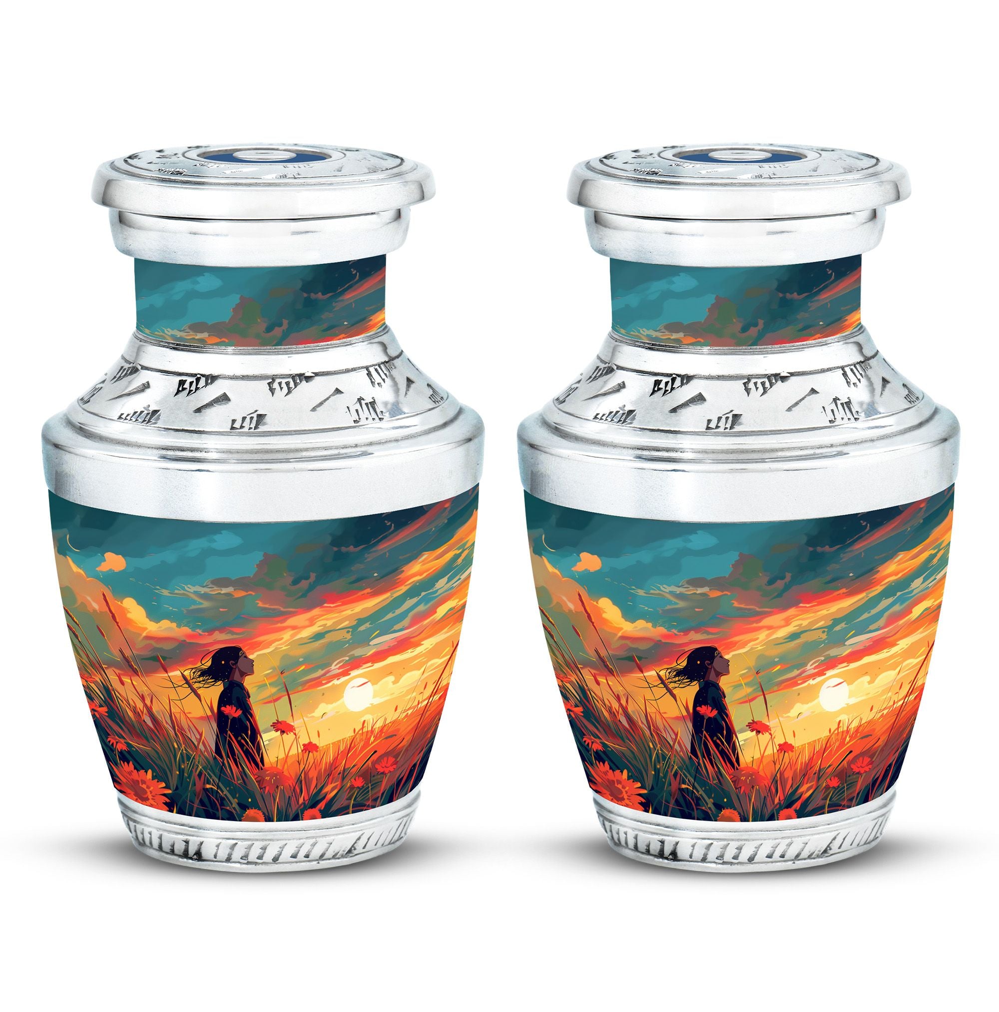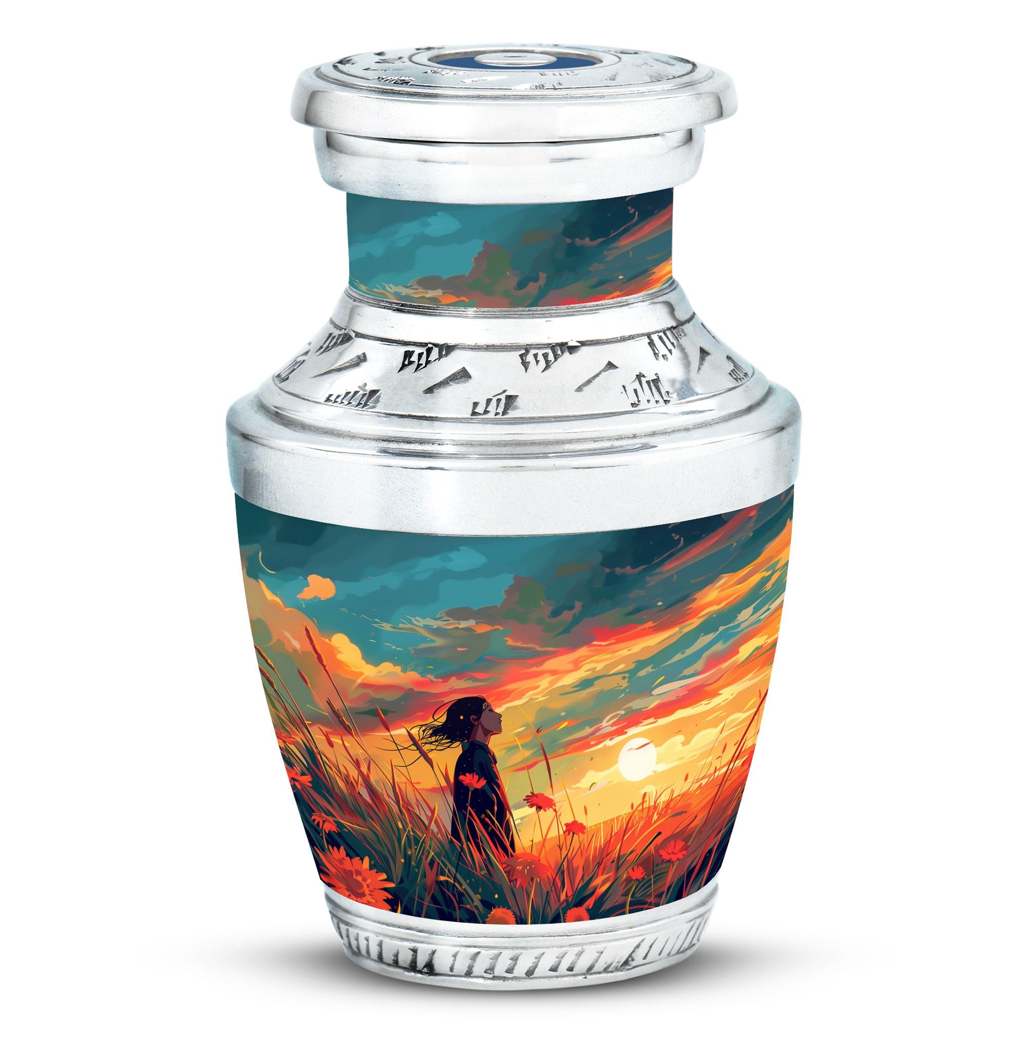 The floral sunset design symbolizes peace and eternal love, making this piece ideal as both a decorative memorial and a secure vessel for ashes. Whether you are looking for cremation urns for women, a mini urn for ashes for women, or versatile urn for men & women, this urn brings comfort and elegance.