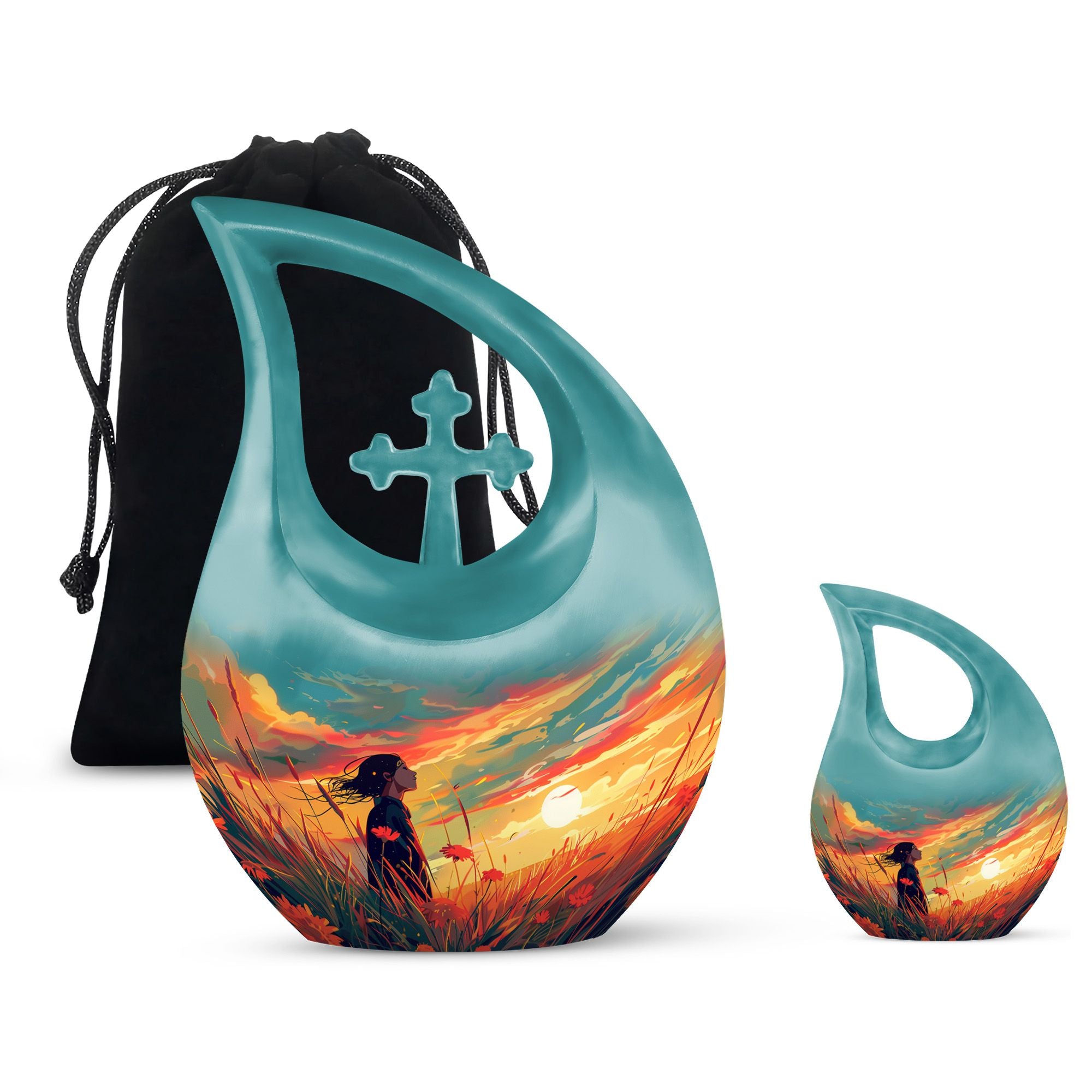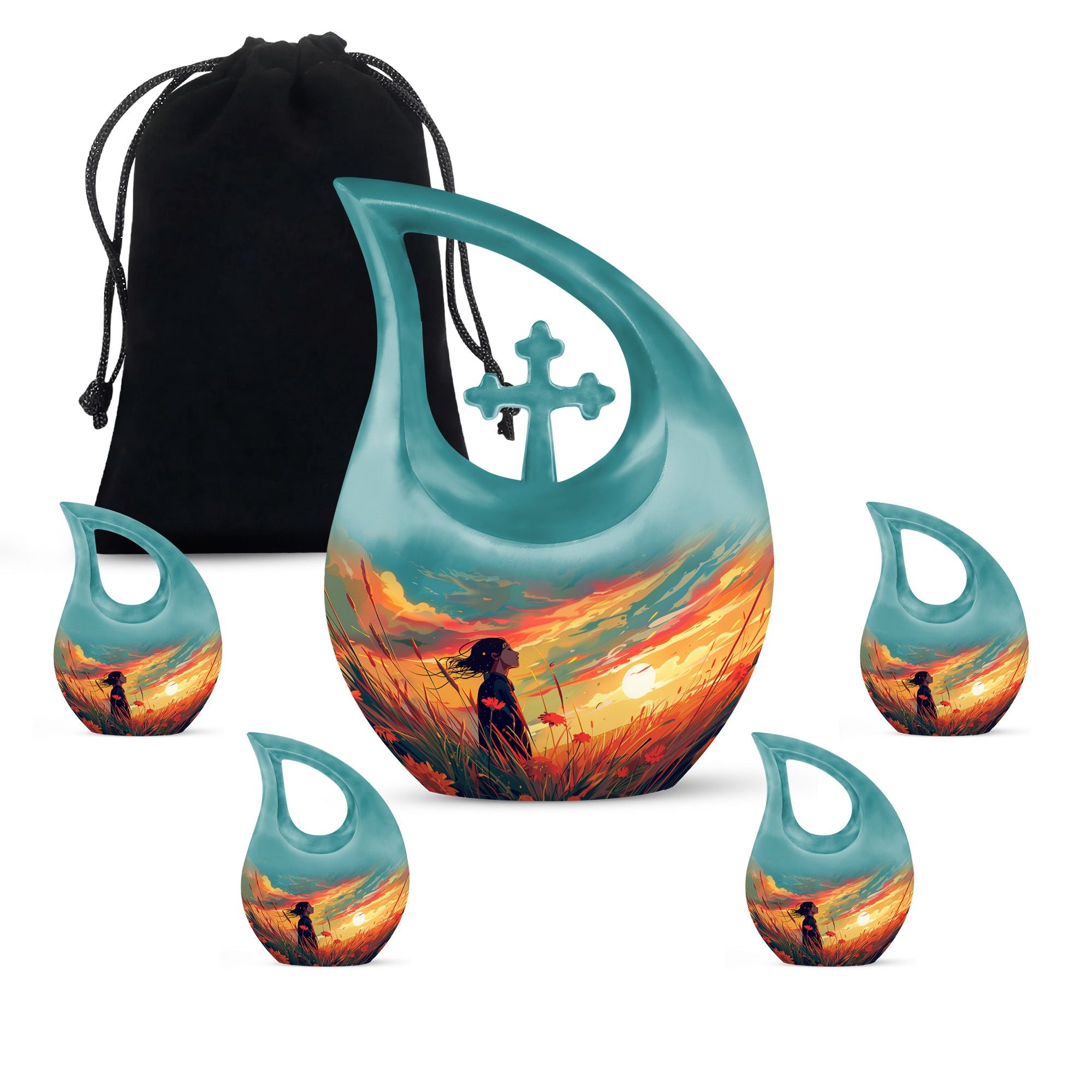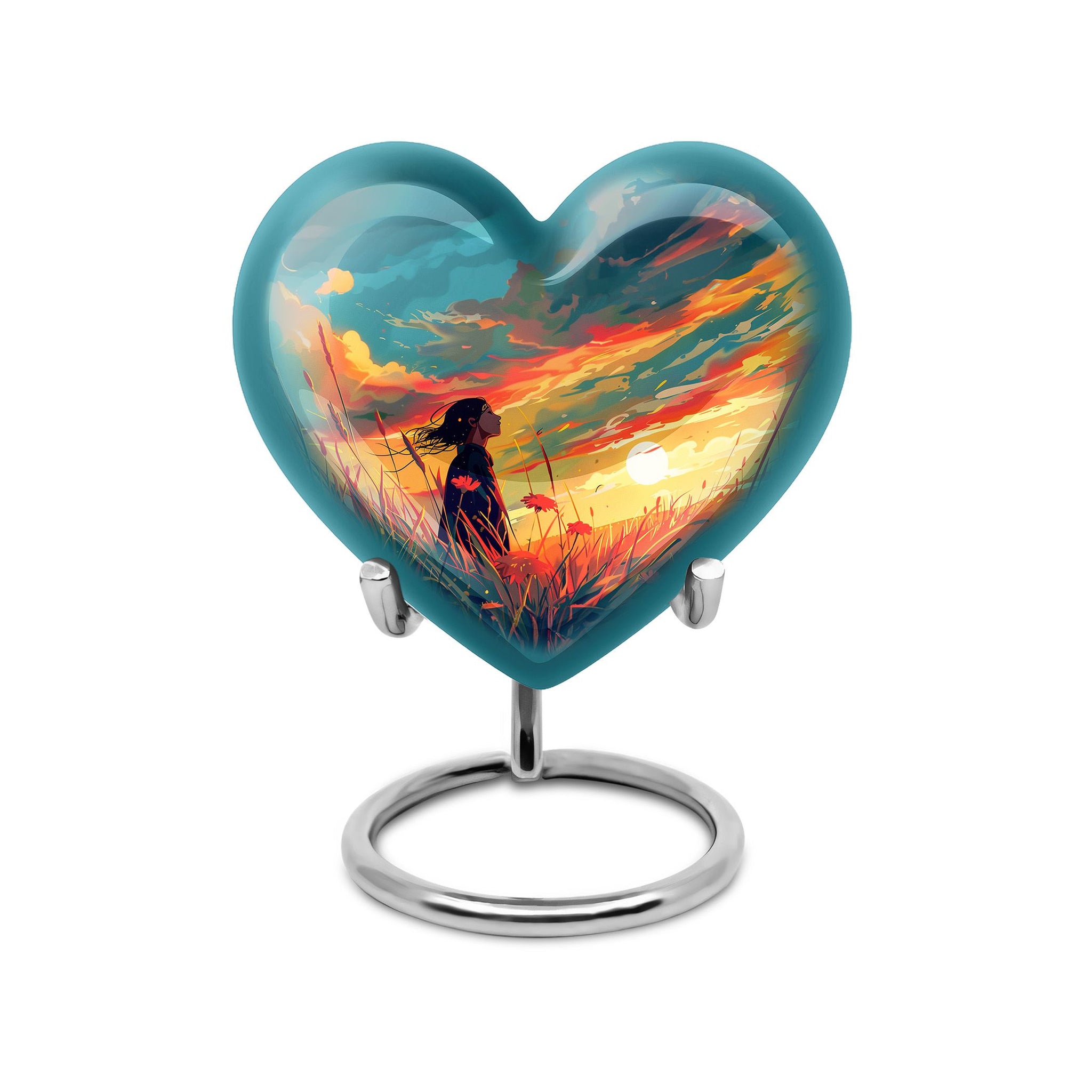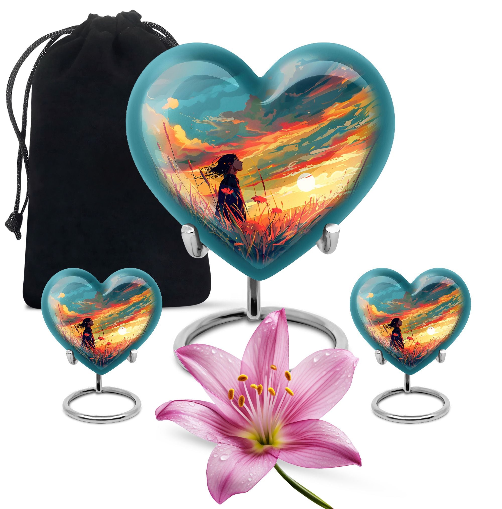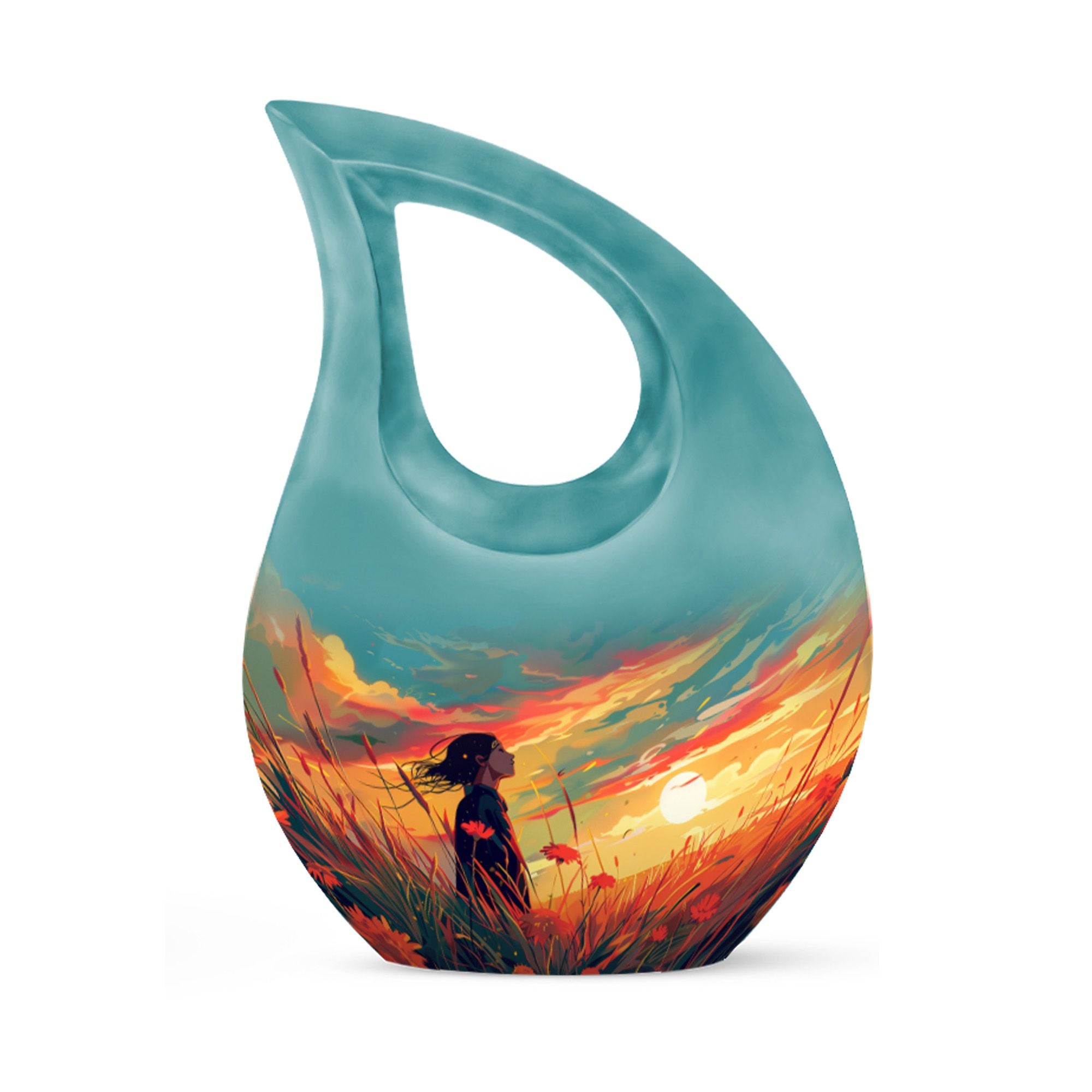 The floral sunset design symbolizes peace and eternal love, making this piece ideal as both a decorative memorial and a secure vessel for ashes. Whether you are looking for cremation urns for women, a mini urn for ashes for women, or versatile urn for men & women, this urn brings comfort and elegance.