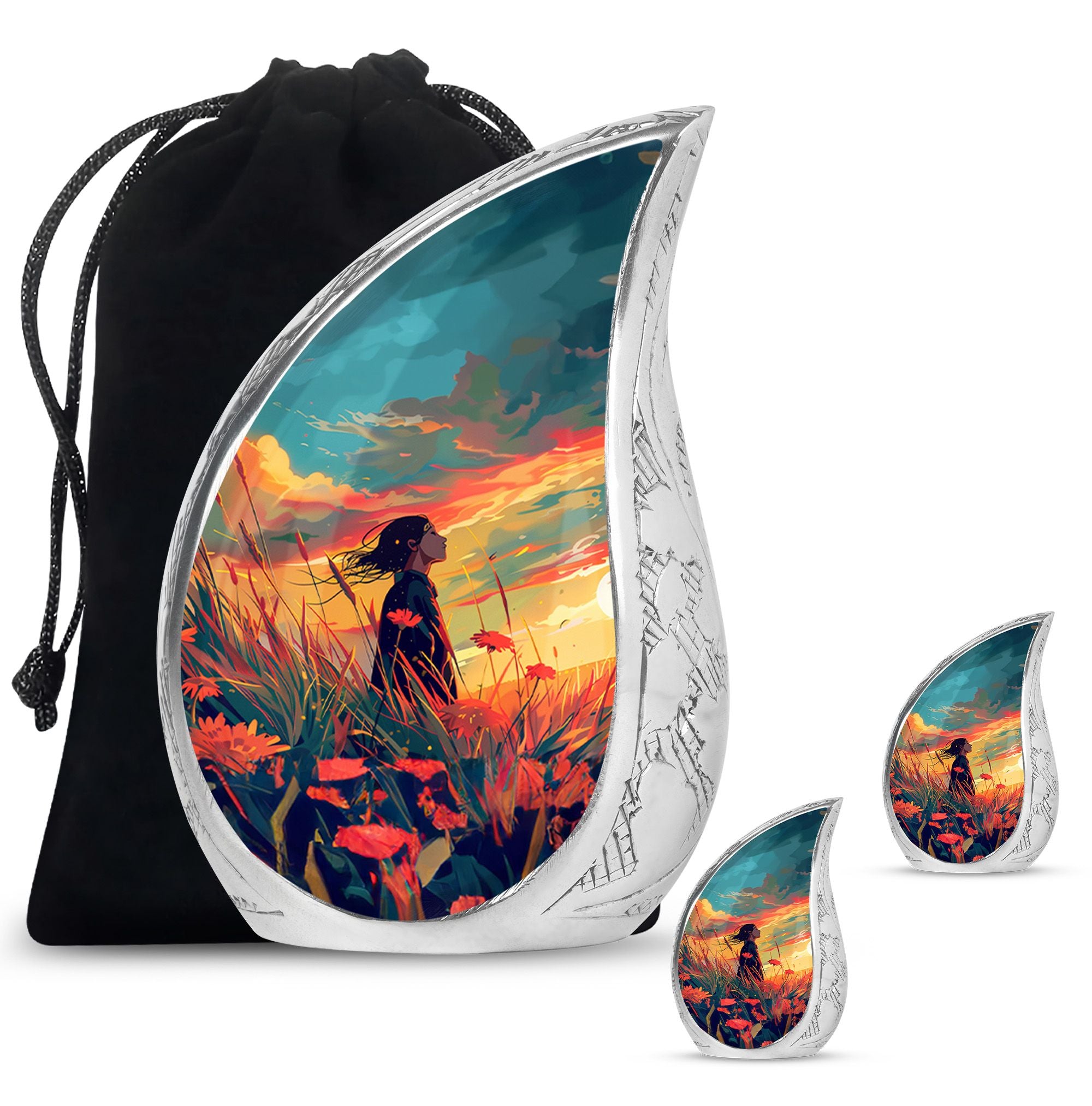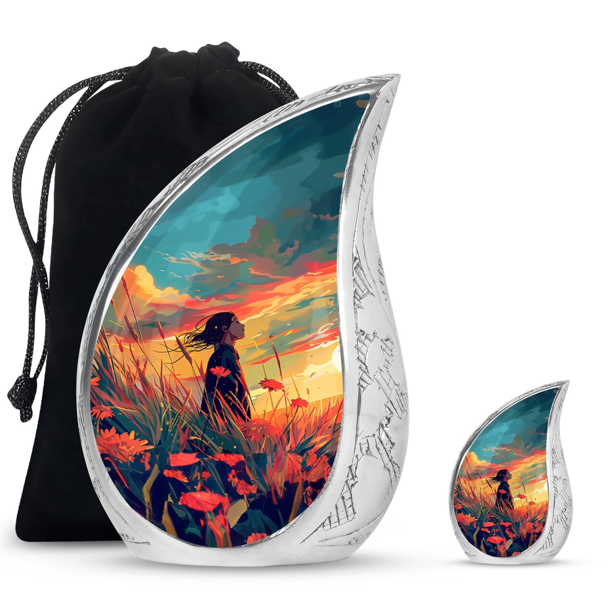 This Flower Sunset Cremation Urn is a heartfelt way to honor a loved one with beauty, dignity, and timeless design. Crafted with care, this urn is suitable for families seeking a small urn for ashes for women, a meaningful keepsake, or full-size funeral urns for women.