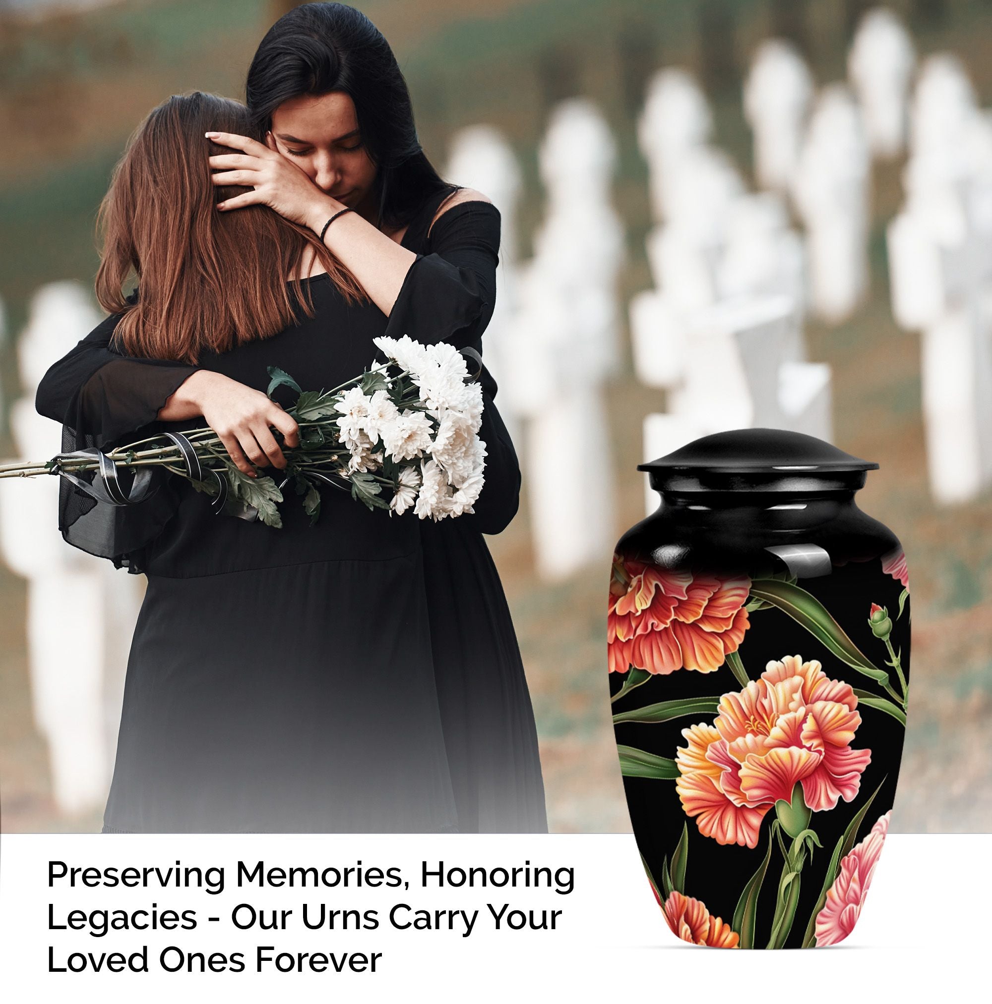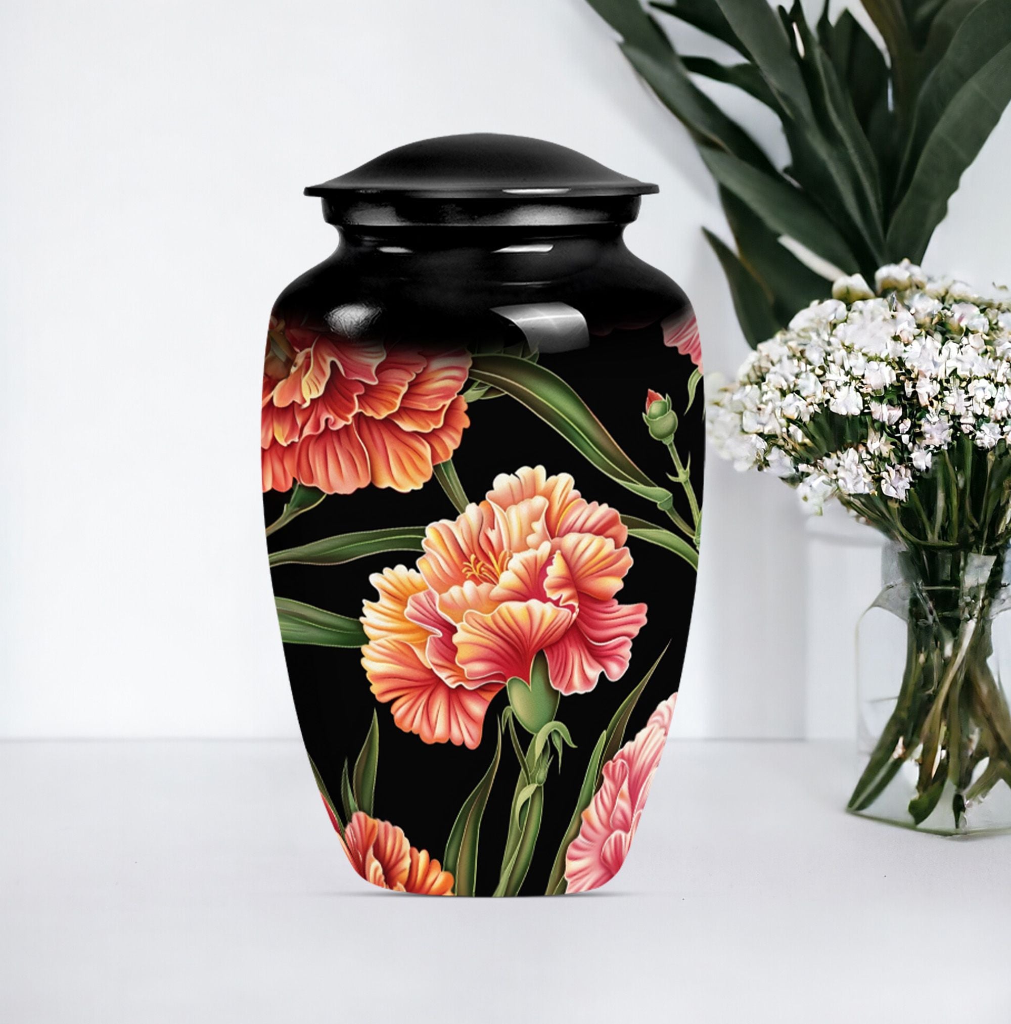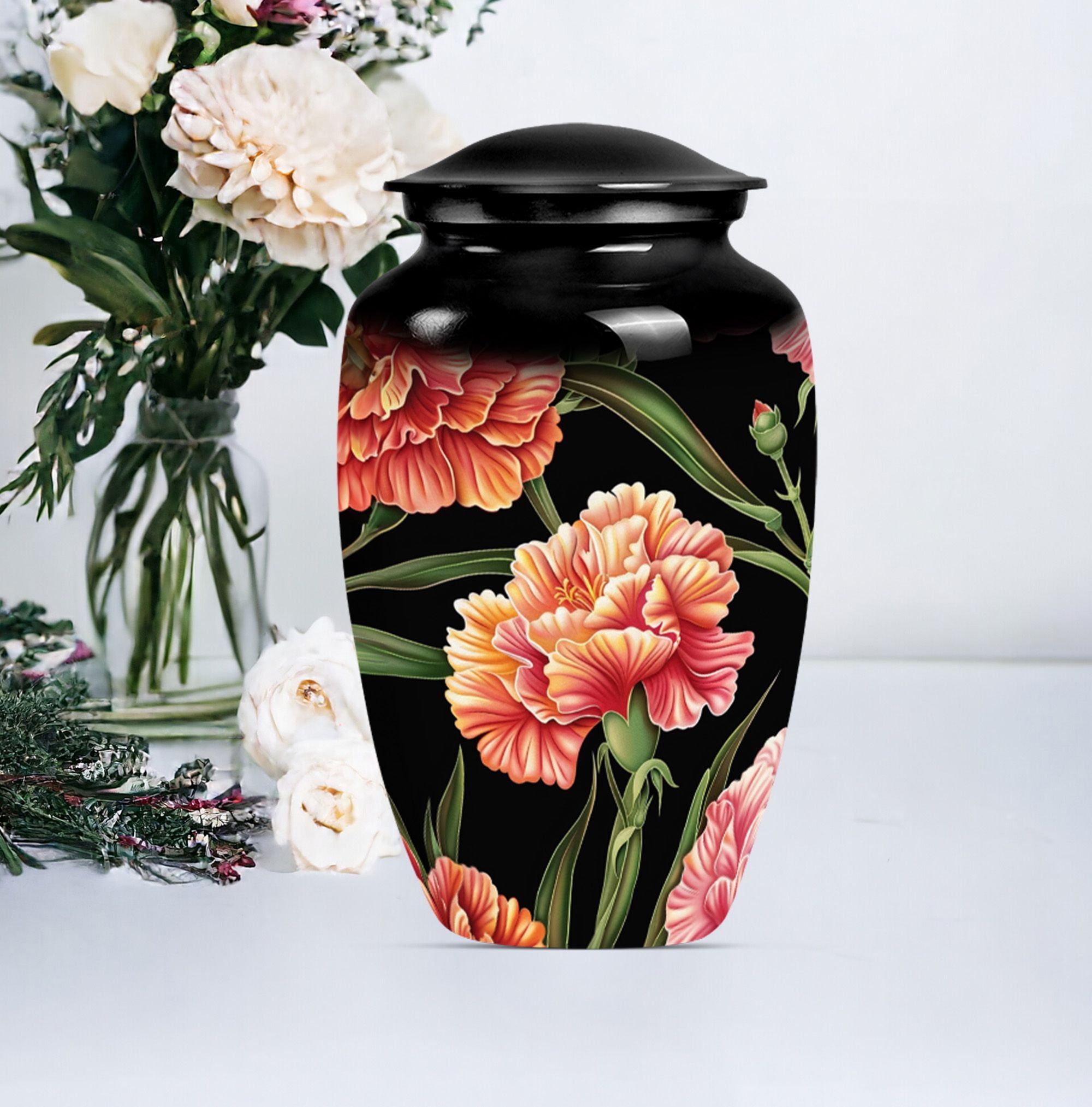 Presenting a distinguished way to commemorate and honor loved ones, our 10-inch, aluminium flower urn provides an exquisite resting place. This cremation urn, artistically themed as 'Purple Meadow,' emanates calming serenity while safely containing your cherished one's remains. It weighs a sturdy 3.3 pounds and is a perfect choice for those seeking large urns. Notably, our lovely cremation urn can hold up to 200 cubic inches of ashes, making it ideal for human ash containment. A sense of thoughtfulness is enhanced with our provided velvet pouch, ensuring the dignified containment of ashes. Personalize and add a touch of your affection with the offered customization option to engrave names on it. Besides being a 'Classic Urn,' the rarity of its design contributes to its unique aspect while providing comfort and eye-pleasing aesthetics. It is perfectly suited for those in need of cremation urns for human ashes, funeral urns, or burial ashes urn.
