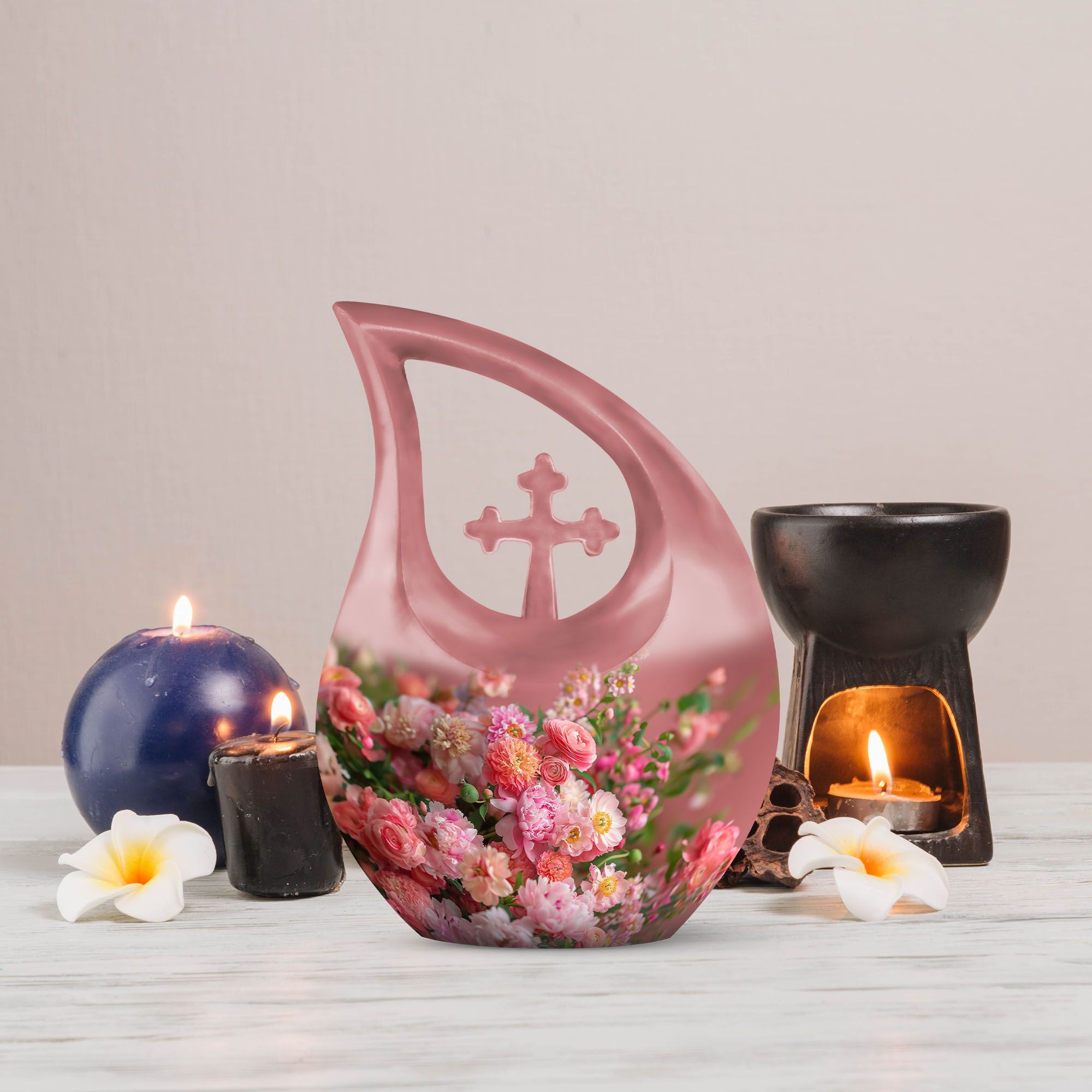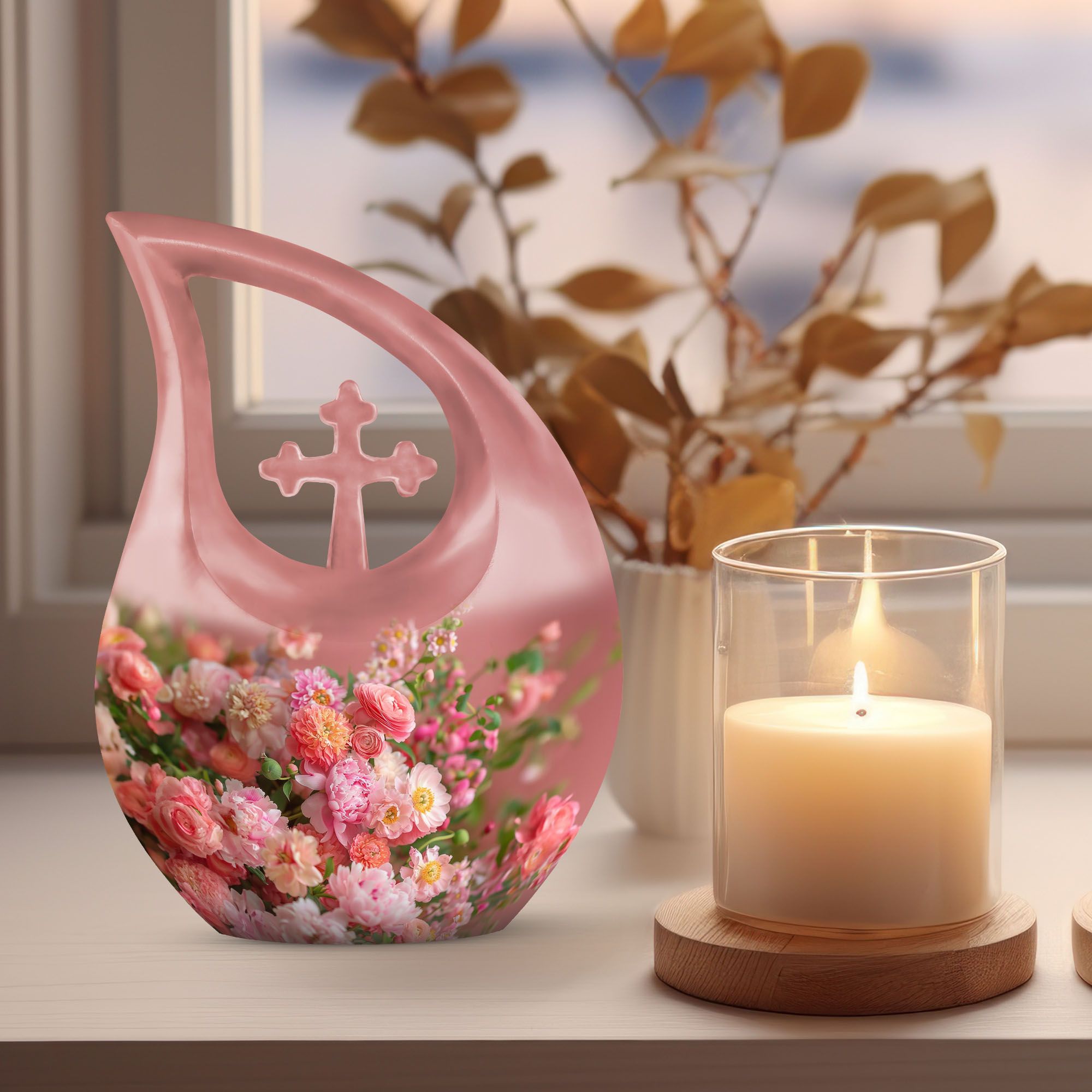The Pink Flowers Urn for Women is a heartfelt and elegant memorial that celebrates a life filled with love, warmth, and beauty. Designed as a beautiful urn for women, its soft pink floral design represents eternal grace and remembrance. Perfect for those seeking a refined way to honor a loved one, it serves as both a women adult urn and a meaningful memorial urn for men.