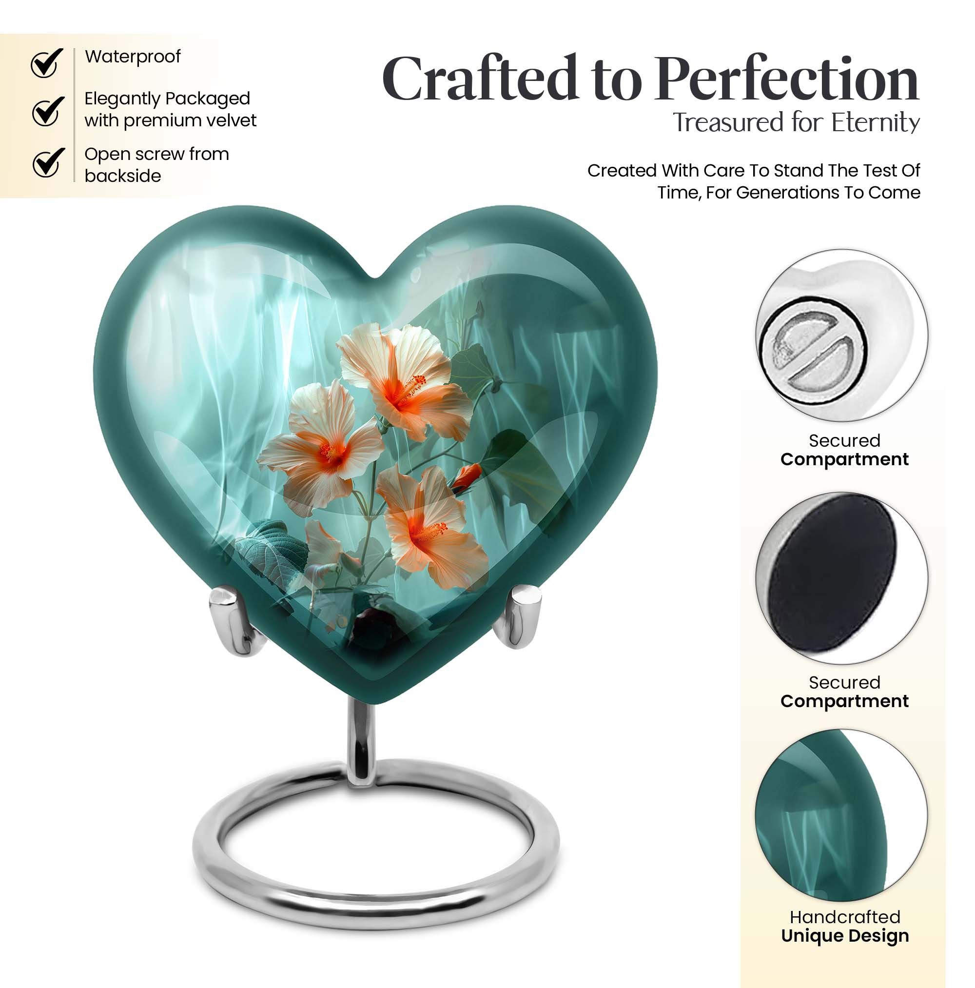 Celebrate the life of your loved ones with the Purple Meadow Heart Urn – a distinctive memorial element. Crafted from durable Aluminium, this flower urn doubles as a burial ash urn for humans. With a comforting size of 10 inches and weighing 3.3 pounds, this ornament is conveniently portable. The urn carries a magnificent aesthetic appeal; its allure is further magnified by the purple meadow theme. Irrespective of whether you are seeking cremation urns for adult male ashes, adult female ashes, or urns for adult cremation ashes, this urn incorporates every requirement seamlessly. It has a generous capacity of 200 cubic inches, ample for containment of remembrances. This large urn package incorporates a soft, velvet pouch for the sensitive containment of ashes. Highlight unique memories by personalizing the urn with engraved names. Note that the design is not included in this description. With this elegantly themed flower urn, keep your remembrances alive in a dignified and respectful way.