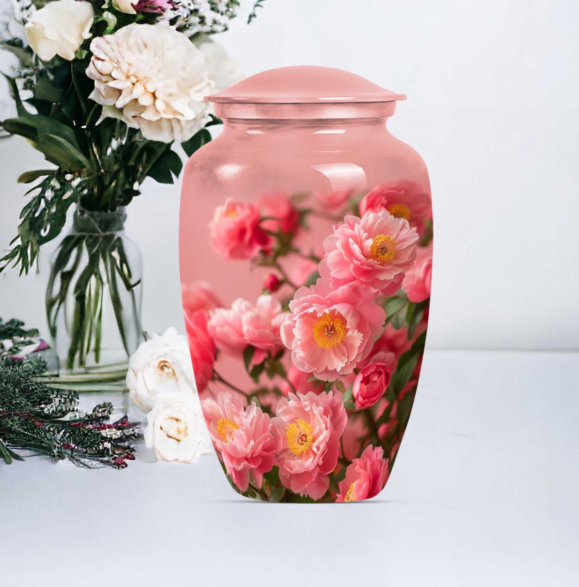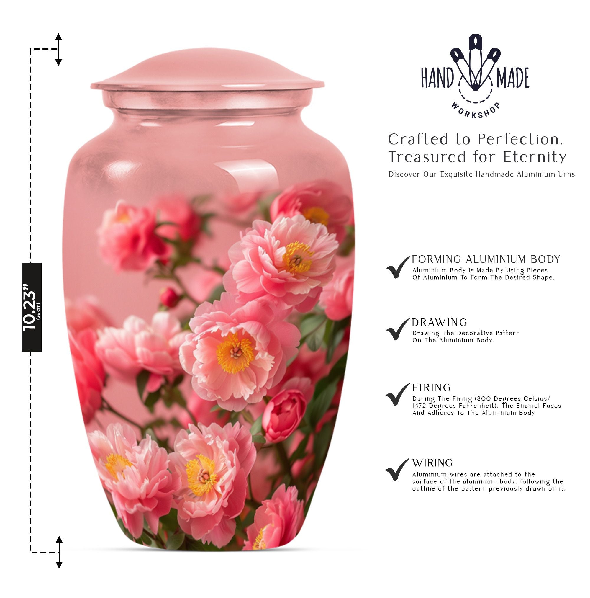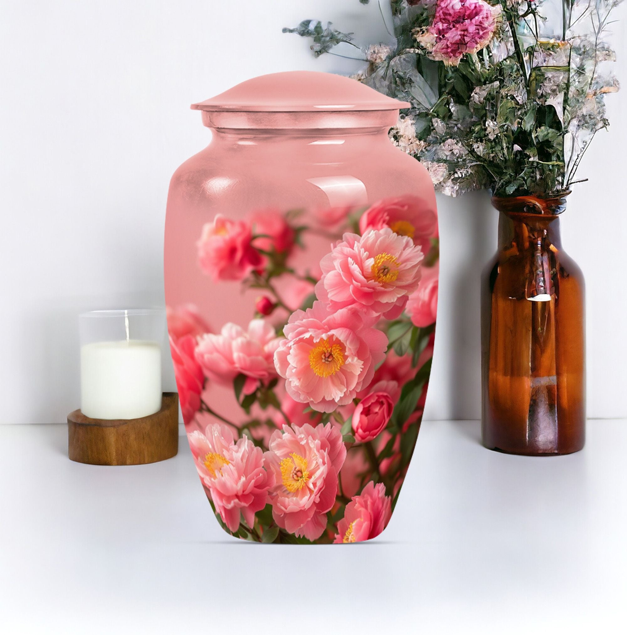 Step into the serene serene realm of Purple Meadow with this distinguished Large Funeral Urn, an offering from our memorial ceremony supplies category. A treasure to honor loved ones, this flower urn beams with calmness and peace, resonating with the tranquility of a meadow. Masterfully crafted from quality aluminium, this medium-sized urn for human ashes stands tall at 10 inches with the capacity to hold 200 cubic inches of remains. Weighing a sturdy 3.3 pounds, its décor is not only pleasing to the eyes but also reliable and long lasting. It is further personalized with names delicately engraved, making it a unique tribute to the departed. The package arrives meticulously wrapped in a velvet pouch for dignified containment of the ashes. Amplify your homage to your loved ones by placing their remains in this beautiful large urn, designed for adults and seniors. Remember them through our Purple Meadow theme which sprawls tranquility and calm. Keywords: Memorial urns, Flower urn, Funeral medium size urns for human ashes, Urn human ash adult ash, Urns for human ashes, Urns for cremation.