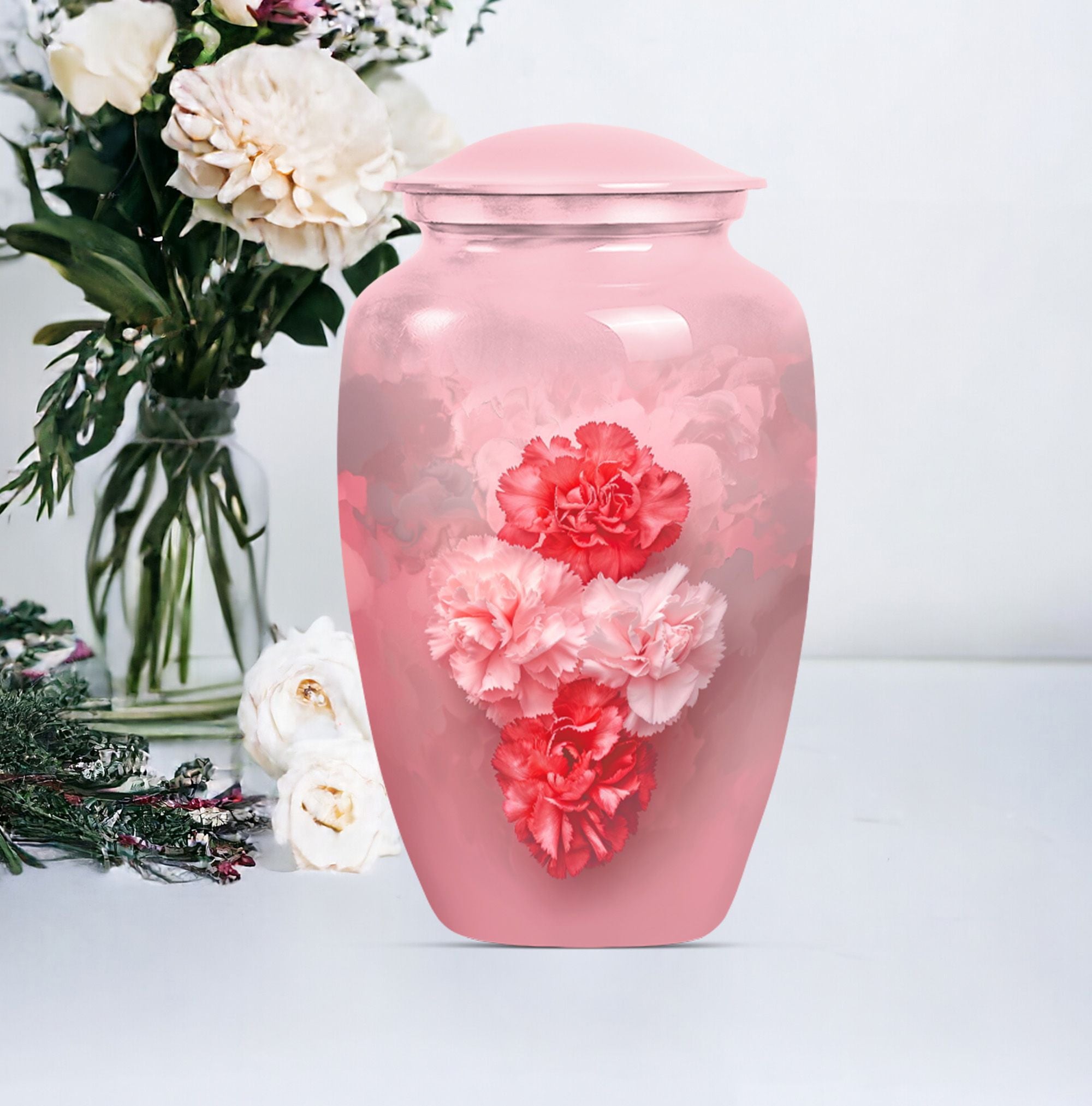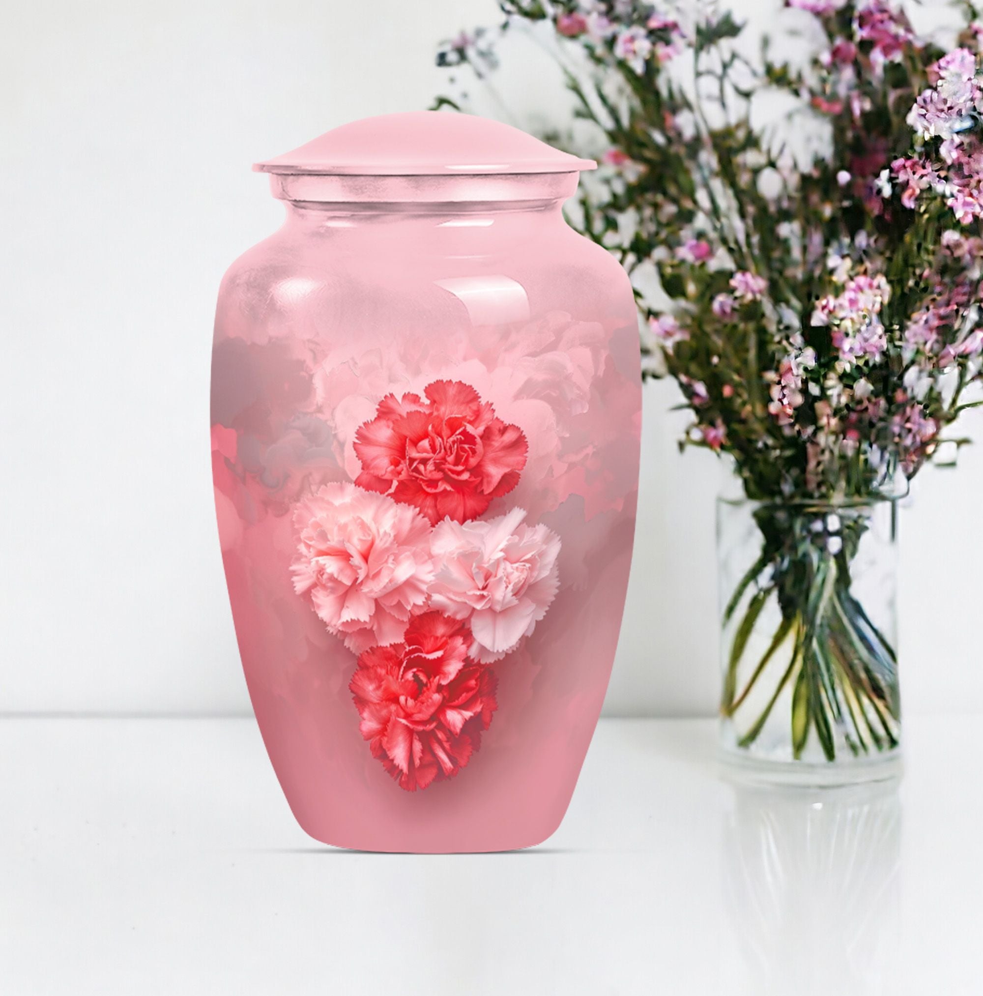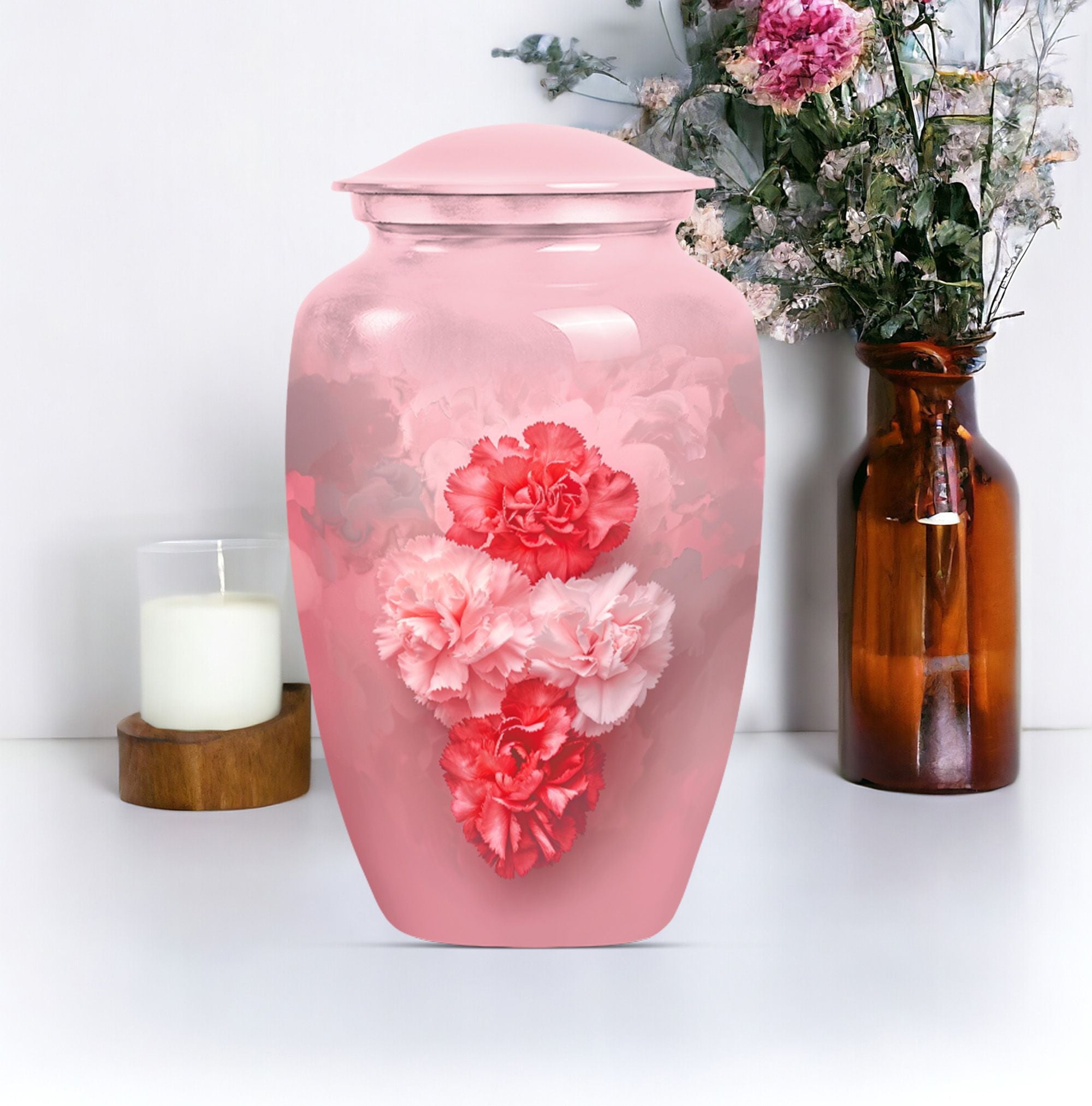 Step into tranquility and honor your loved one's memory with our exquisite 10 Inch flower Urn. This cremation urn for dad is elegantly crafted in robust aluminium, featuring a serene Purple Meadow theme that evokes peace and serenity. Whether you're looking for burial ash urns for humans or a distinctive vessel to hold precious memories, our large urn has the capacity to securely contain 200 cubic inches of ashes. Weighing only 3.3 pounds and measuring 10 inches in height, it's designed with deep respect for your cherished moments. The package comes complete with a velvet pouch for containment of ashes ensuring dignity and respect at all times. Add a personal touch to this cremation urn for burial with our customization option - engrave your dad's name to keep his spirit alive. Whether you're honoring the beautiful life of a loved one with a human ash urn or seeking an urn for human ashes that encapsulates their spirit, our Classic Urn design possesses a timeless appeal that will resonate with your heart.