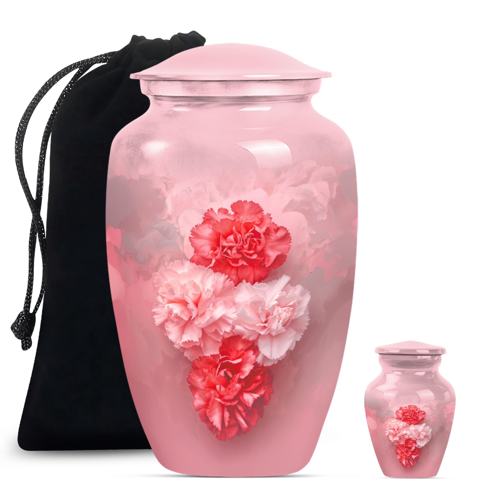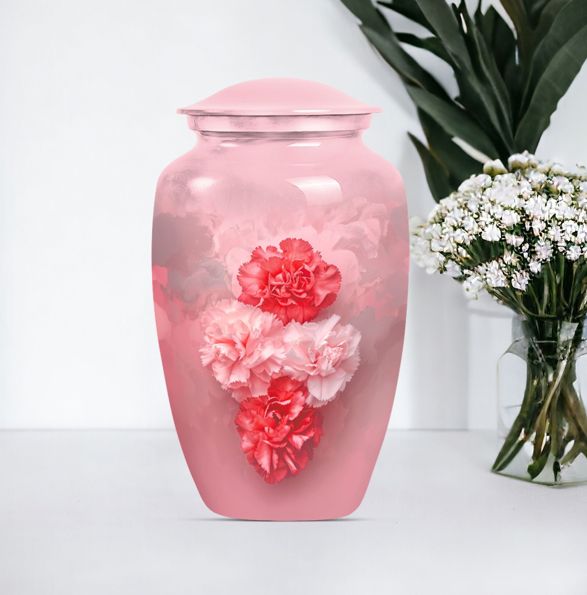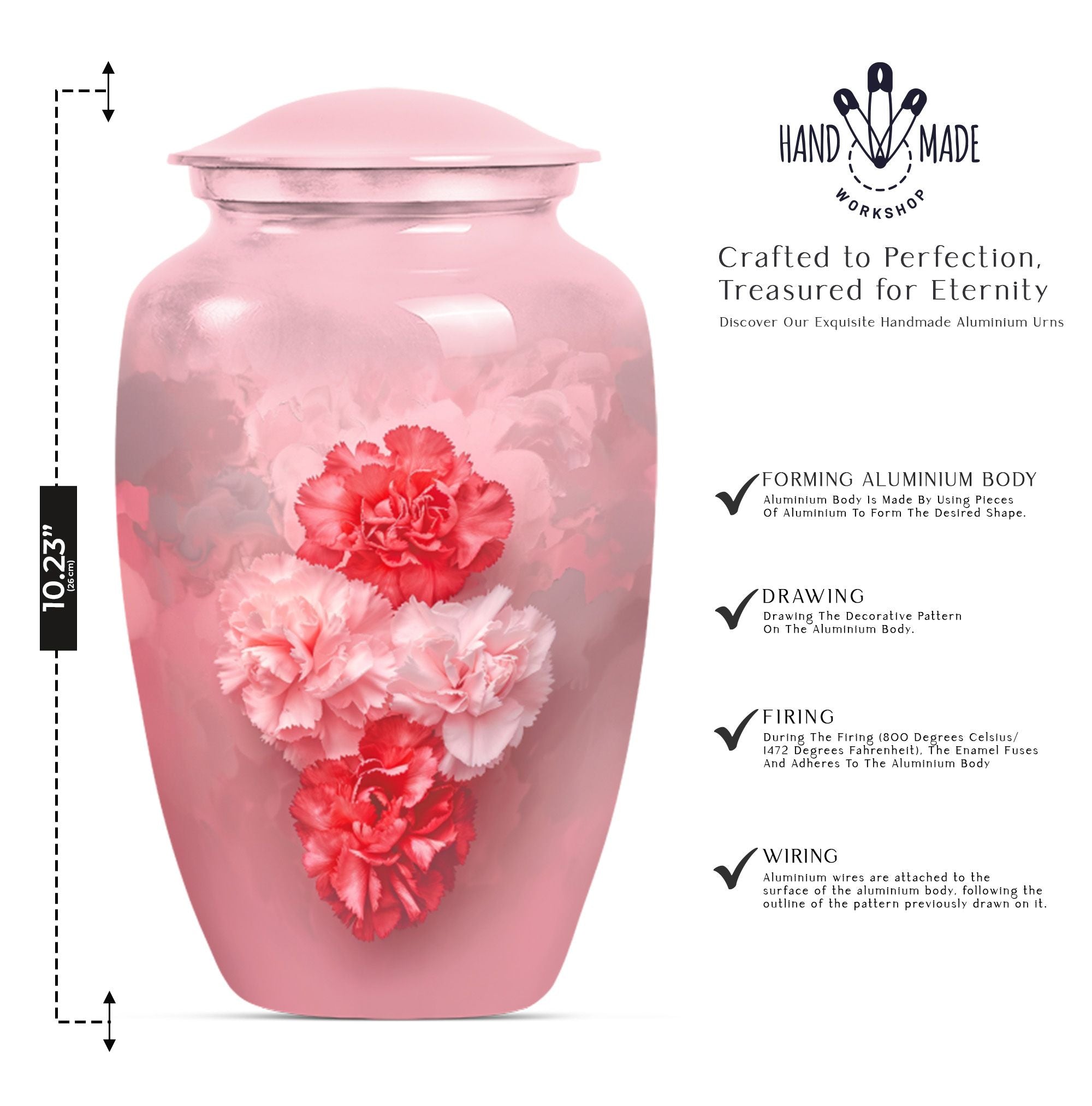 Step into tranquility and honor your loved one's memory with our exquisite 10 Inch flower Urn. This cremation urn for dad is elegantly crafted in robust aluminium, featuring a serene Purple Meadow theme that evokes peace and serenity. Whether you're looking for burial ash urns for humans or a distinctive vessel to hold precious memories, our large urn has the capacity to securely contain 200 cubic inches of ashes. Weighing only 3.3 pounds and measuring 10 inches in height, it's designed with deep respect for your cherished moments. The package comes complete with a velvet pouch for containment of ashes ensuring dignity and respect at all times. Add a personal touch to this cremation urn for burial with our customization option - engrave your dad's name to keep his spirit alive. Whether you're honoring the beautiful life of a loved one with a human ash urn or seeking an urn for human ashes that encapsulates their spirit, our Classic Urn design possesses a timeless appeal that will resonate with your heart.