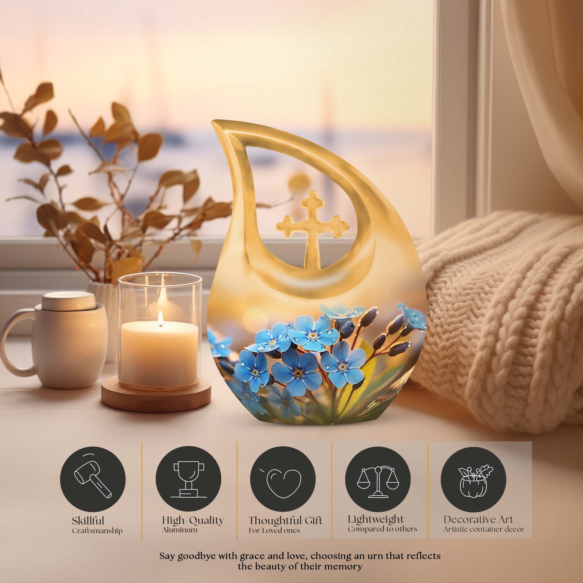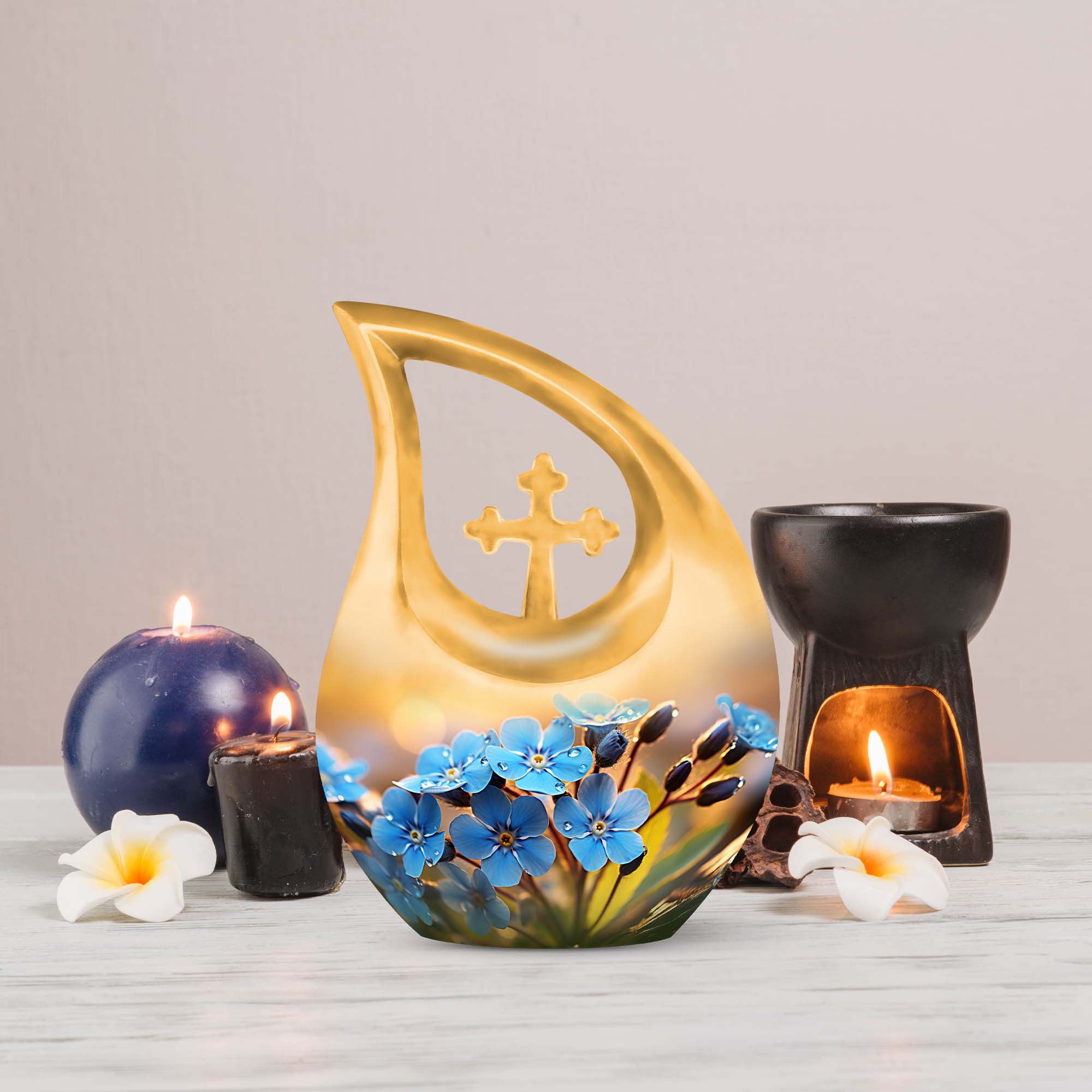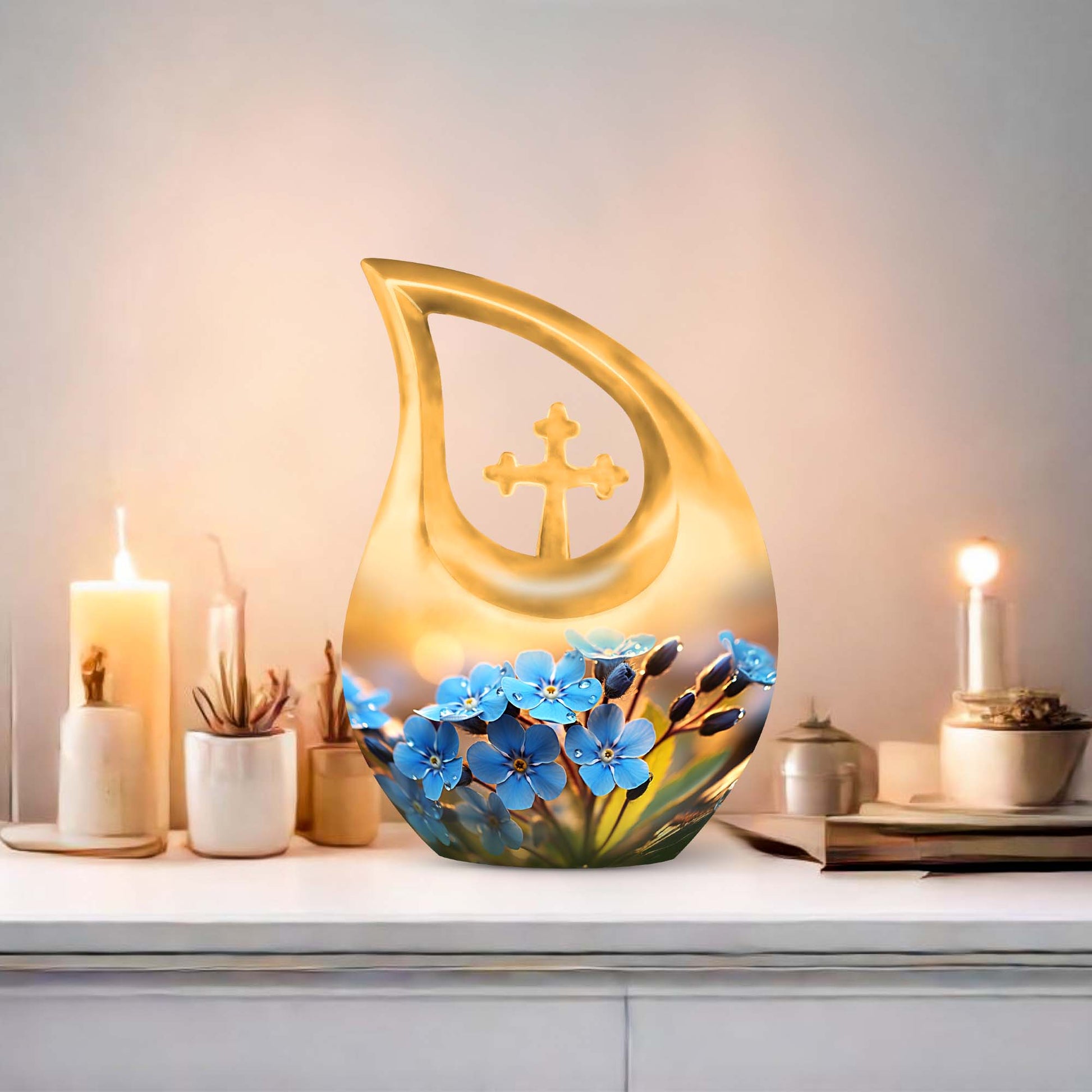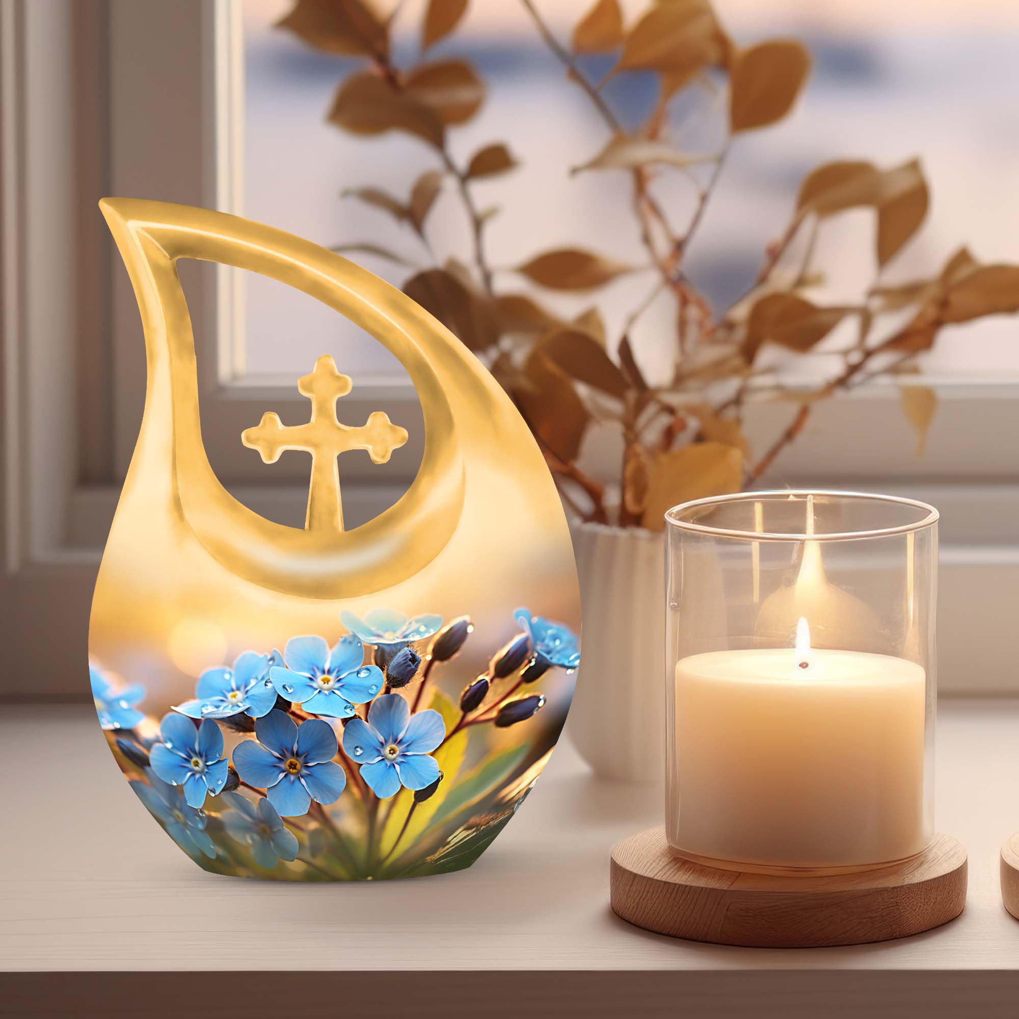 Celebrate a life of warmth and grace with this Blue Flowers Motif Urn for Ashes, a heartfelt memorial piece designed to preserve your loved one’s memory with dignity. Its radiant blue and yellow floral motif represents hope, peace, and eternal love — making it one of the most meaningful cremation burial urns for remembrance.