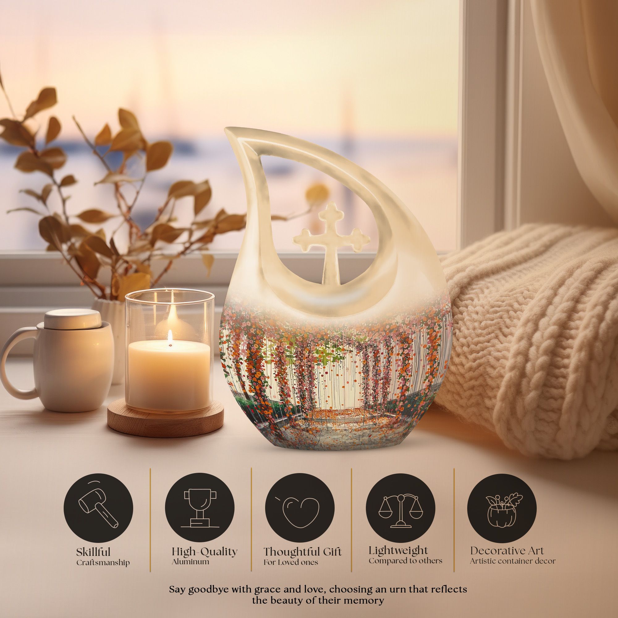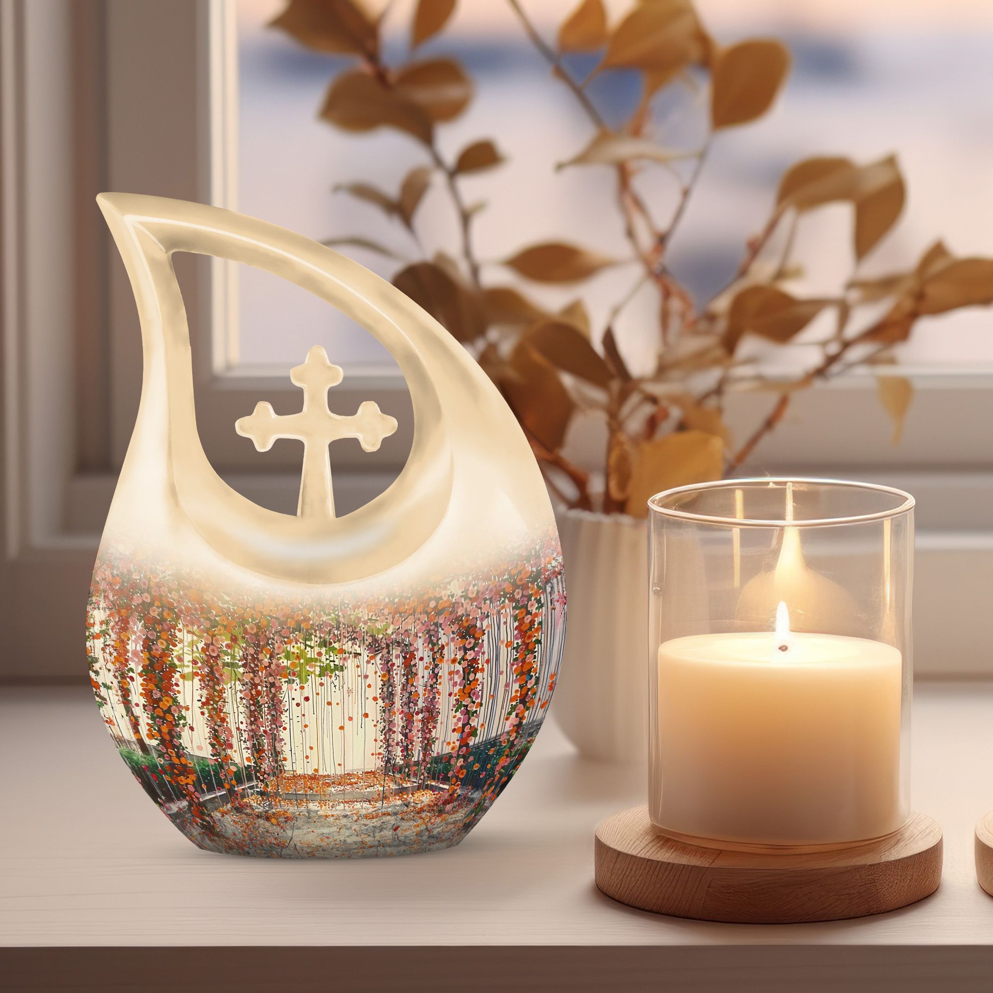 The Flowers Pathway Urn for Cremation is a heartfelt tribute inspired by nature’s grace and the journey of everlasting love. Its soft floral pathway design symbolizes peace, remembrance, and new beginnings — an ideal choice for those seeking beautiful urns women or urn ashes for women that reflect tenderness and serenity. The gentle hues and hand-painted details make this urn a perfect centerpiece for home memorials or a meaningful burial urn men alternative for shared remembrance.