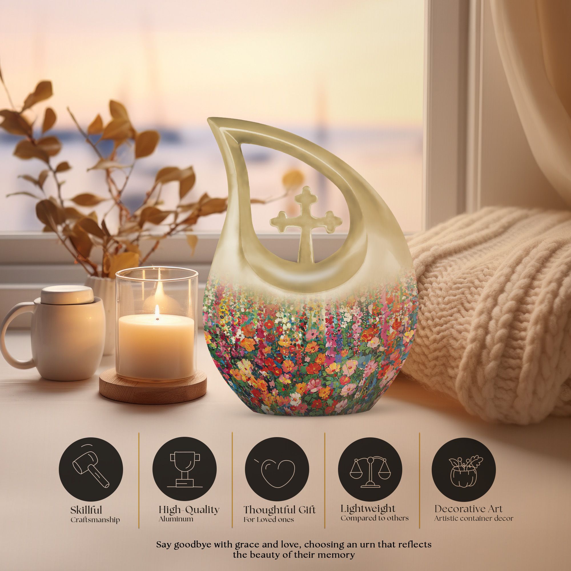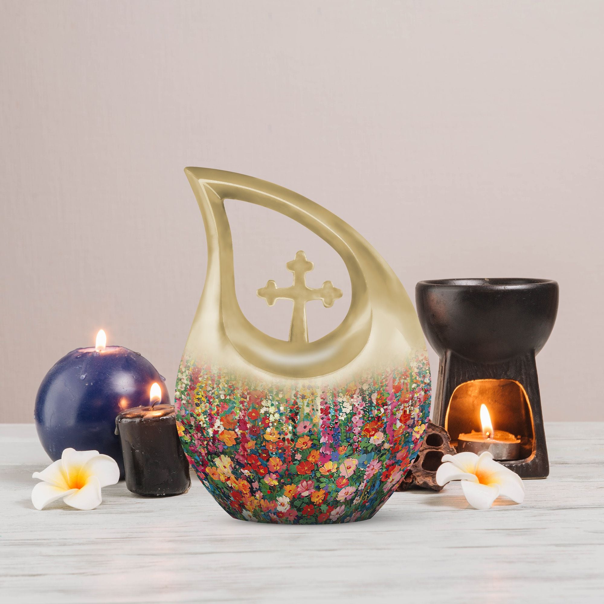 The Flowers Urn for Funeral is a beautifully designed symbol of love and peace, crafted to honor the memory of your loved one with grace and dignity. This large urn for ashes adult male or female captures the beauty of life and the serenity of nature through its elegant floral artwork. The soft petal patterns and tranquil tones make it a fitting choice for both men and women, bringing comfort and reflection to any memorial setting.