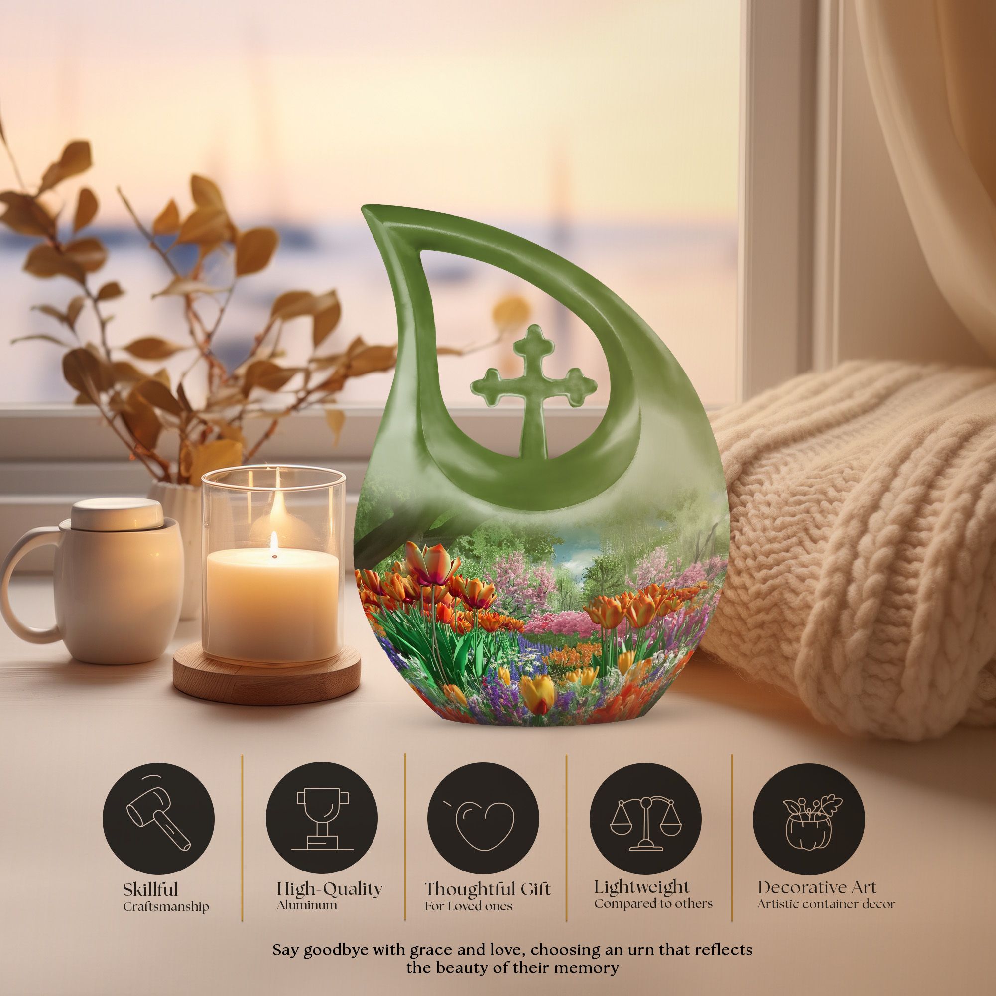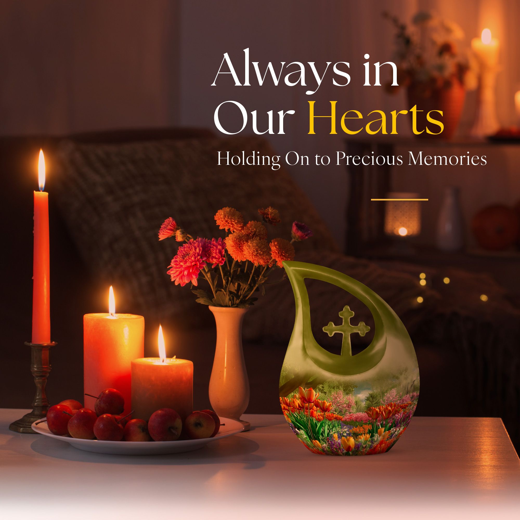 The Flowers Garden Memorial Urn expresses love through art and nature — a touching representation that, like every bloom, love continues to grow in remembrance.