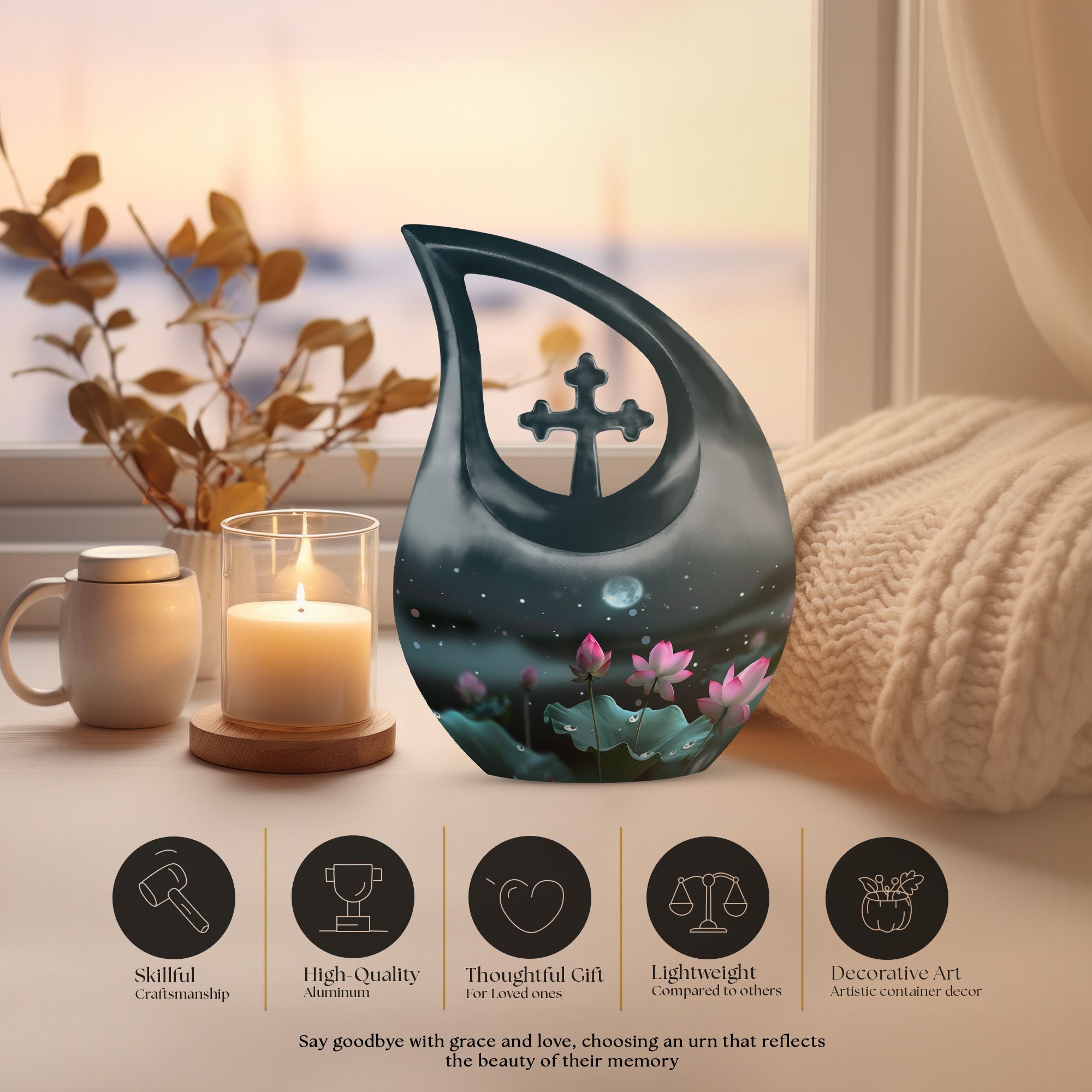 Handcrafted from durable aluminum, this elegant 10 inch urn blends refined lotus artwork with trusted protection for your loved one’s ashes. It serves as a dependable cremation urn for adult or adult cremation urn, suitable for home display, burial, or memorial ceremonies. Families who wish to create a coordinated tribute can choose from full cremation urns set, cremation urns for adults, urns cremation selections, and cremation urns for human collections. Matching keepsakes—including keepsake cremation urns for human ashes, cremation ashes keepsake, and cremation urns for human ashes adult set—allow for shared remembrance among family members.