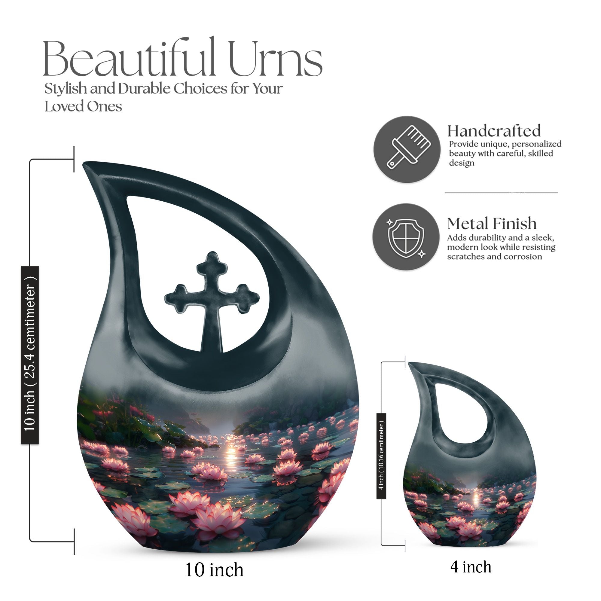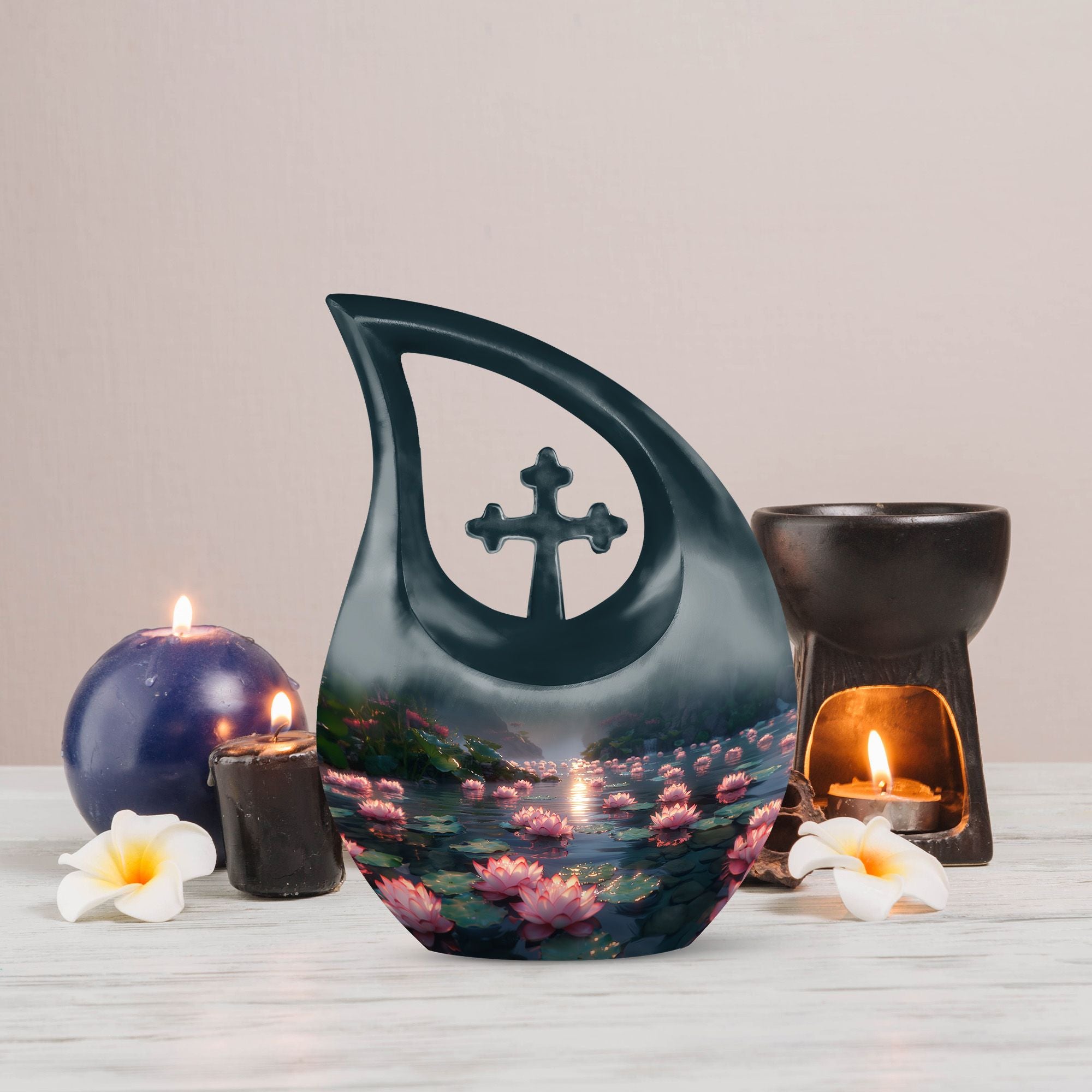 Crafted with care, this adult cremation urn blends artistic detail with long-lasting strength. Its elegant lotus motif brings gentle beauty to memorial spaces, whether displayed at home, in a niche, or during a ceremony. With dependable construction, it is suitable for cremation urns for humans and cremation urns for adults humans seeking both style and security. The spacious capacity makes it ideal for cremation urn adult human needs, while its classic dark tones complement cremation urns for human ashes adult black selections. Families looking for a meaningful cremation ashes urn or cremations urns for adults will find this piece both practical and deeply symbolic.
