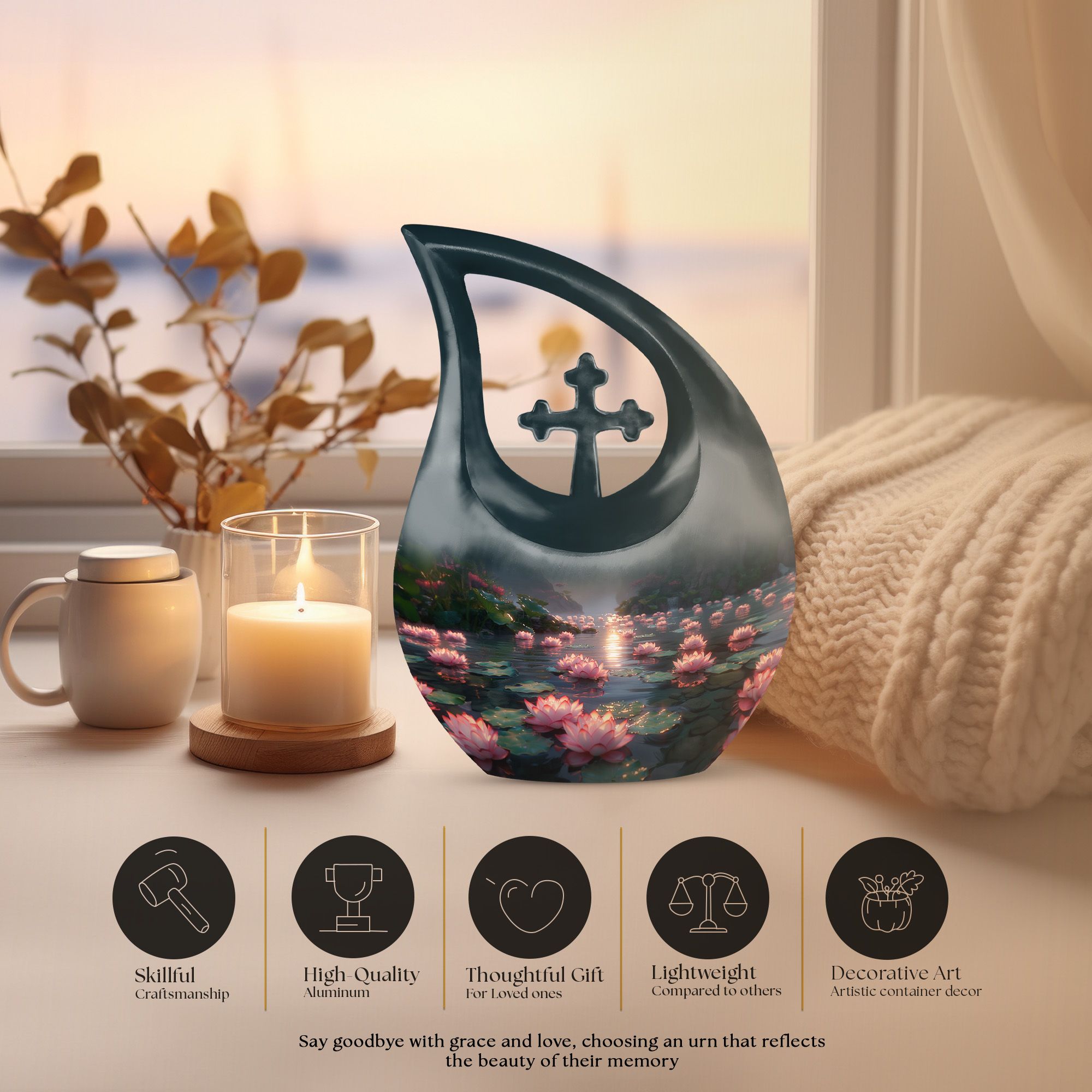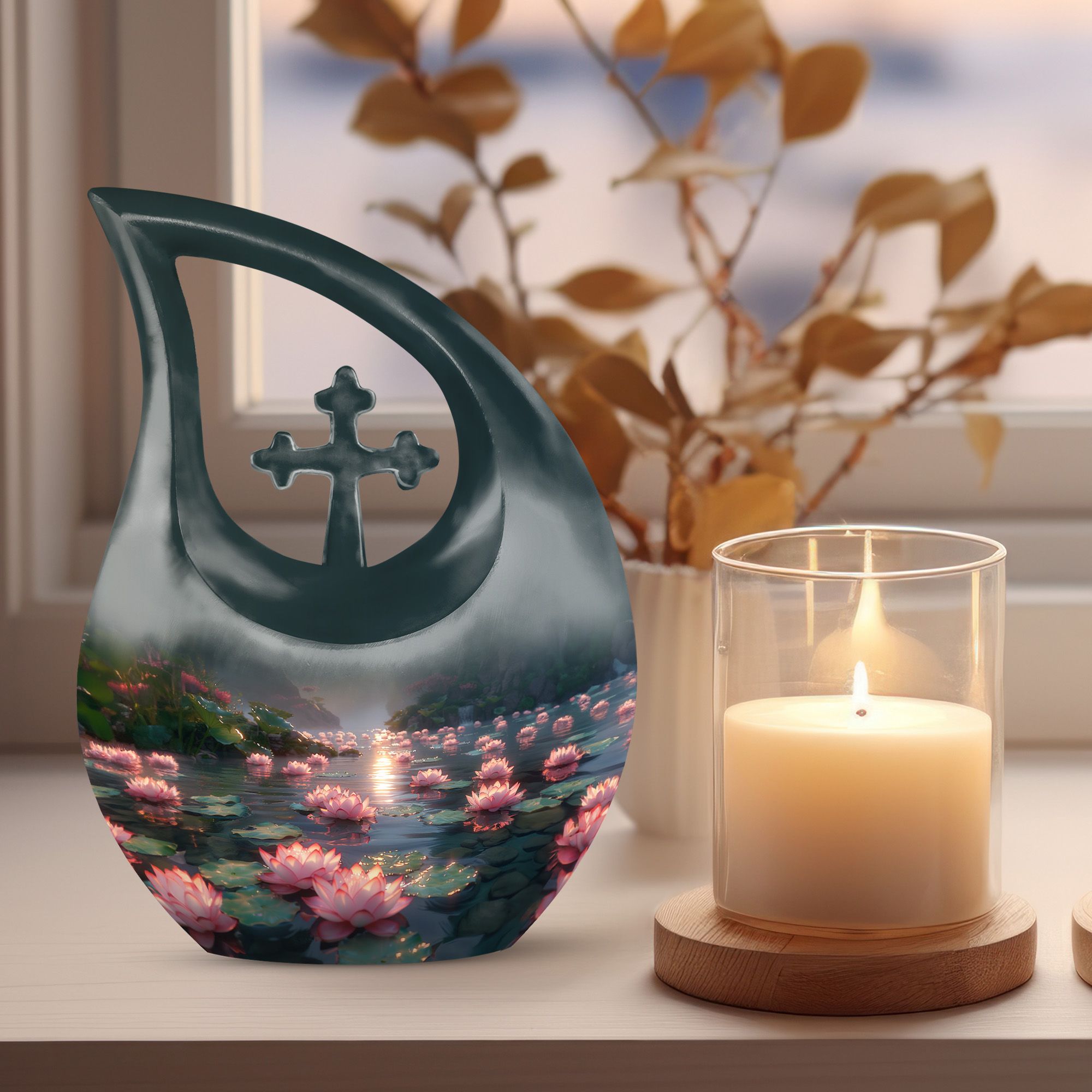 This lotus-inspired funeral urn provides a peaceful and dignified way to honor a cherished life, offering comfort and serenity during remembrance. Thoughtfully created to serve as a cremation urn for human ashes adult families can trust, it symbolizes purity, renewal, and enduring love.
