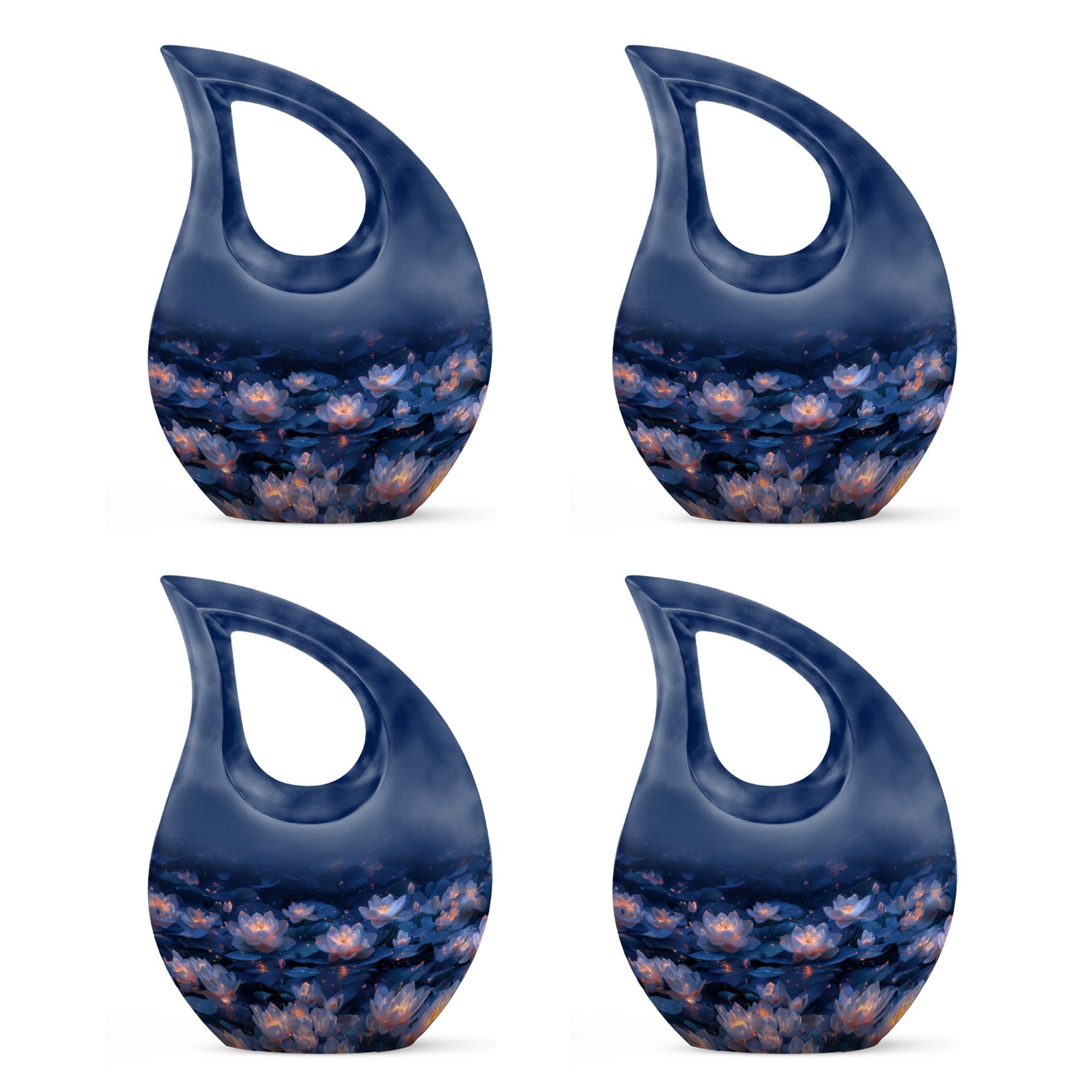 Crafted from premium aluminum, this elegant 10 inch urn features lotus artwork that reflects beauty and transformation. It serves as a dignified cremation urn for human ashes for home display, burial, or spiritual remembrance. Families who wish to create coordinated tributes can choose from a full cremation urns set, cremation ashes urns combo, or matching keepsakes such as cremation mini urn, cremation keepsake, cremation urn keepsake, and small cremation keepsakes. Complete bundles—including keepsake set of 1, keepsake set of 4, large with 4 keepsake, and full large and keepsake sets—allow every family member to honor their loved one in a personal and meaningful way. This urn also pairs beautifully with keepsake cremation urns for human ashes adult, ensuring a unified memorial collection.