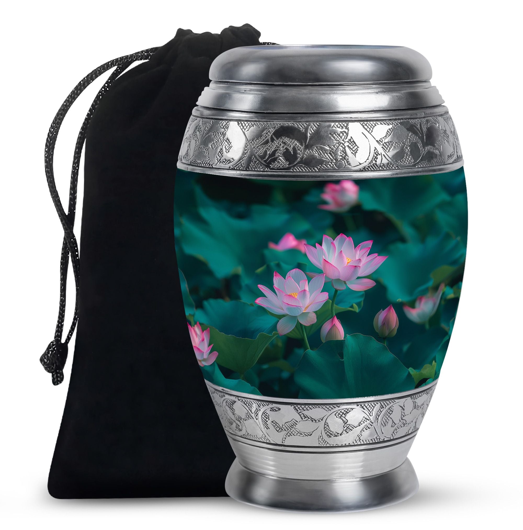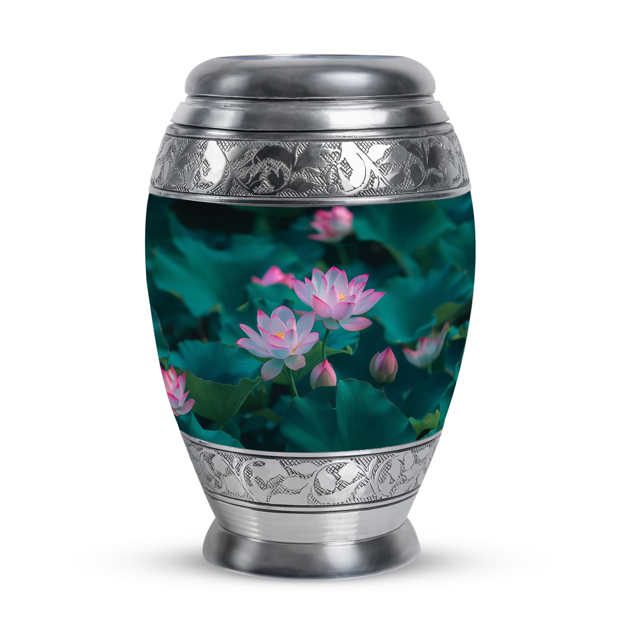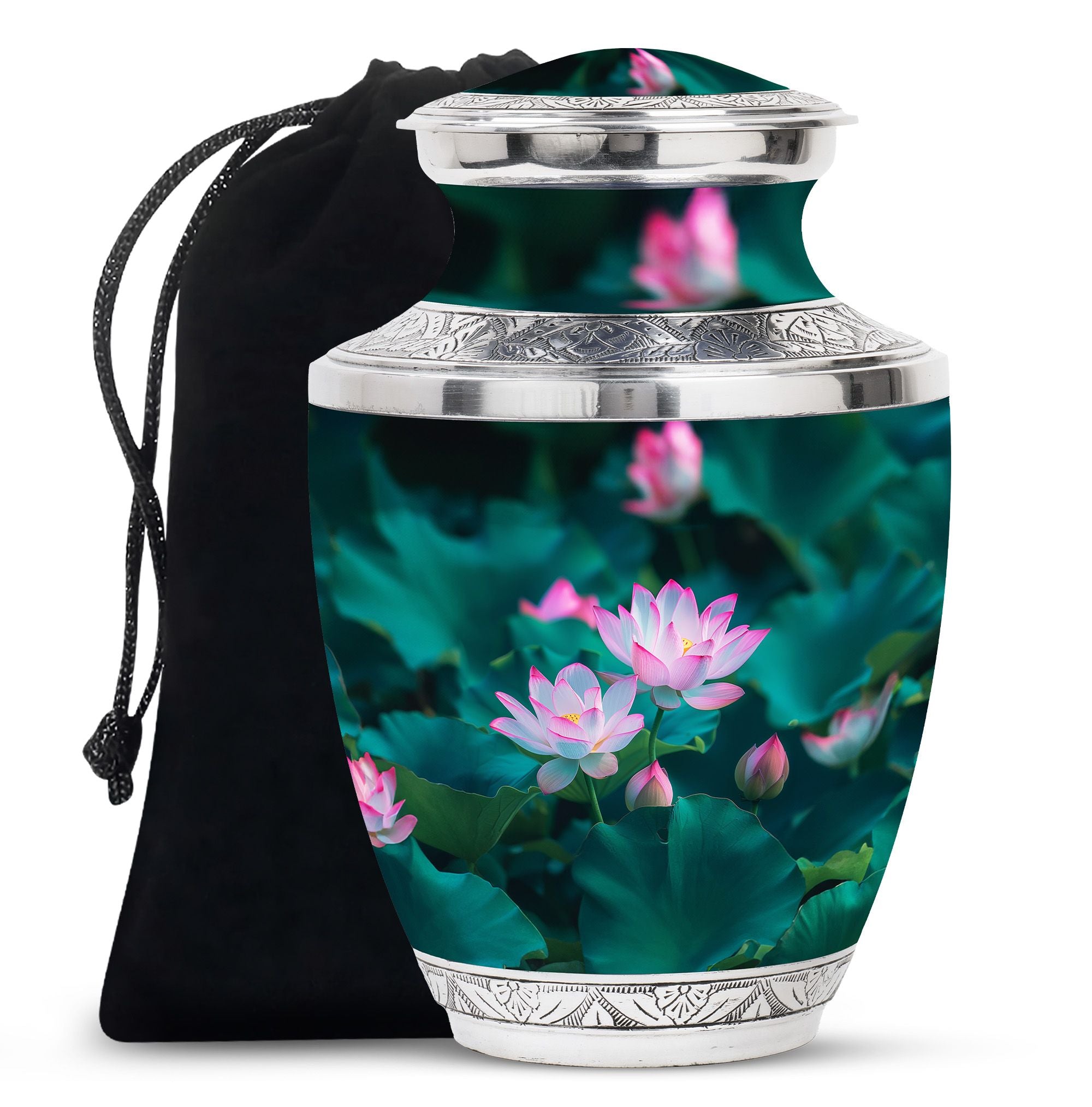 The lotus flower, long cherished as a symbol of renewal and eternal love, ensures that this funeral cremation urn for ashes holds more than memories—it holds hope and peace.