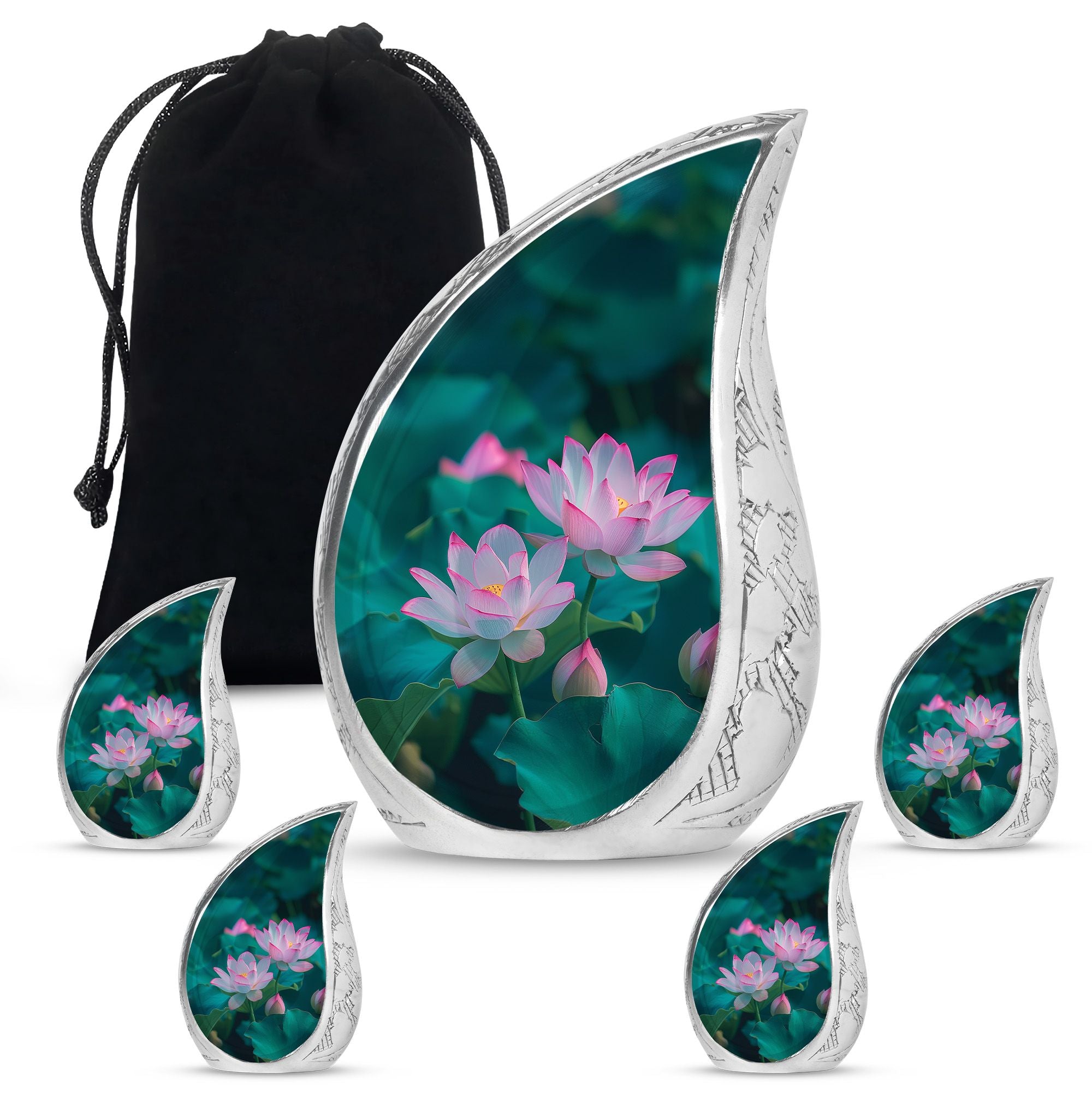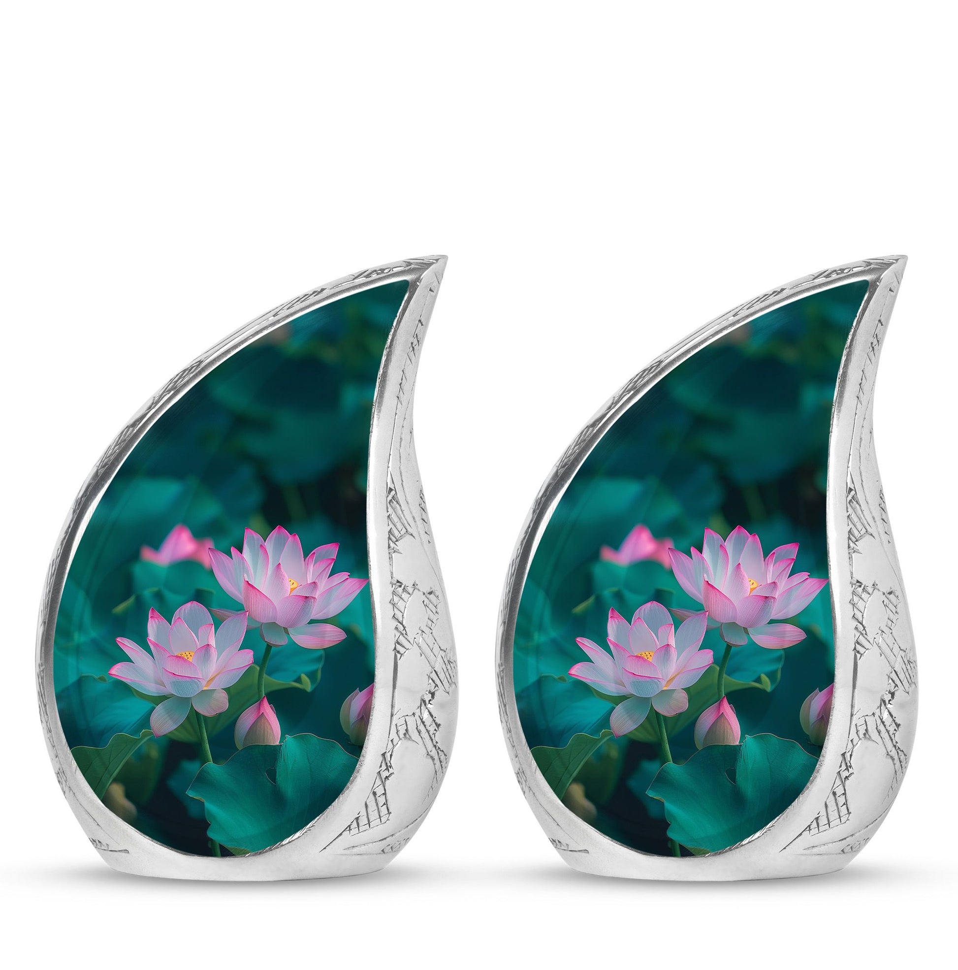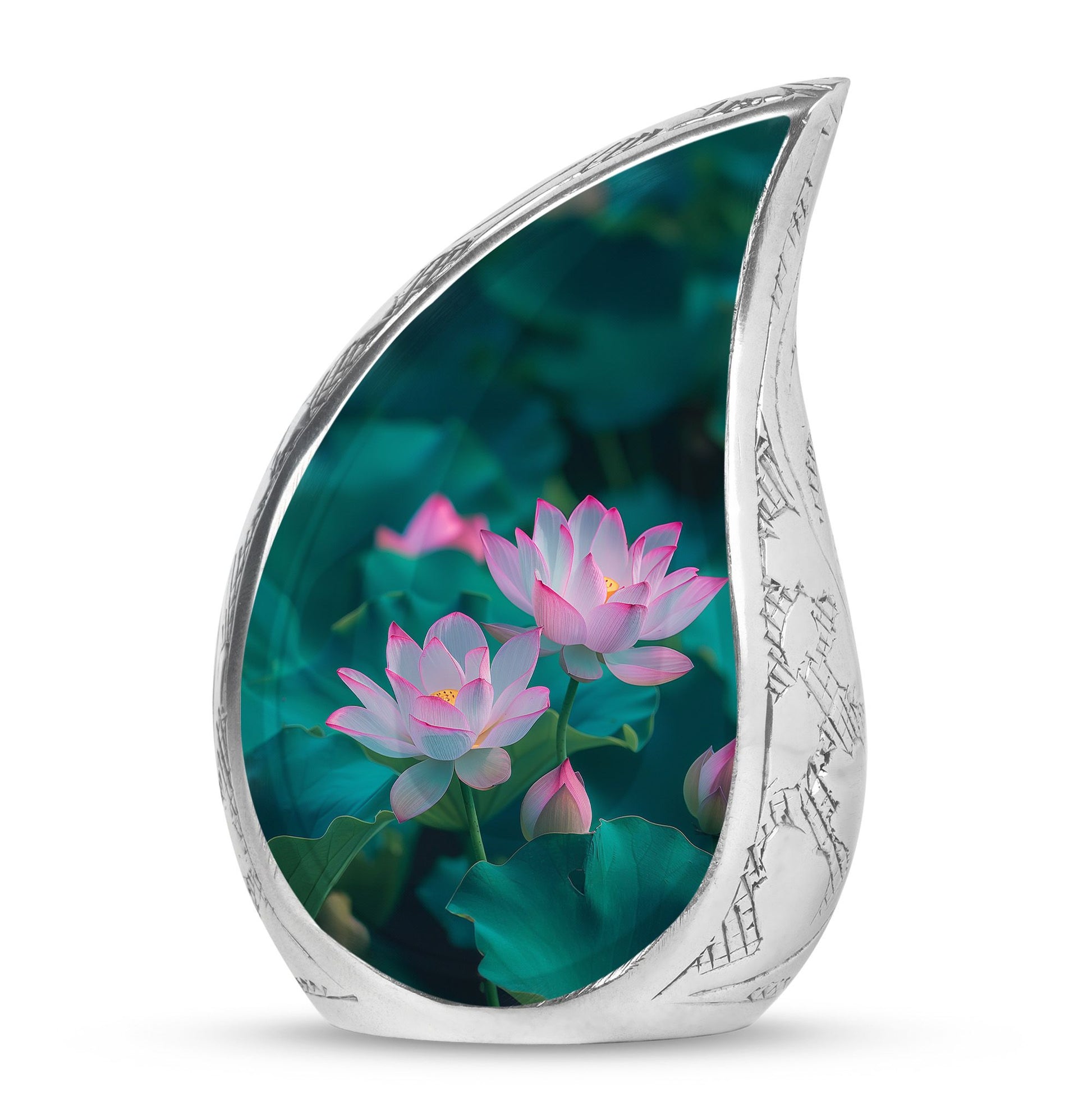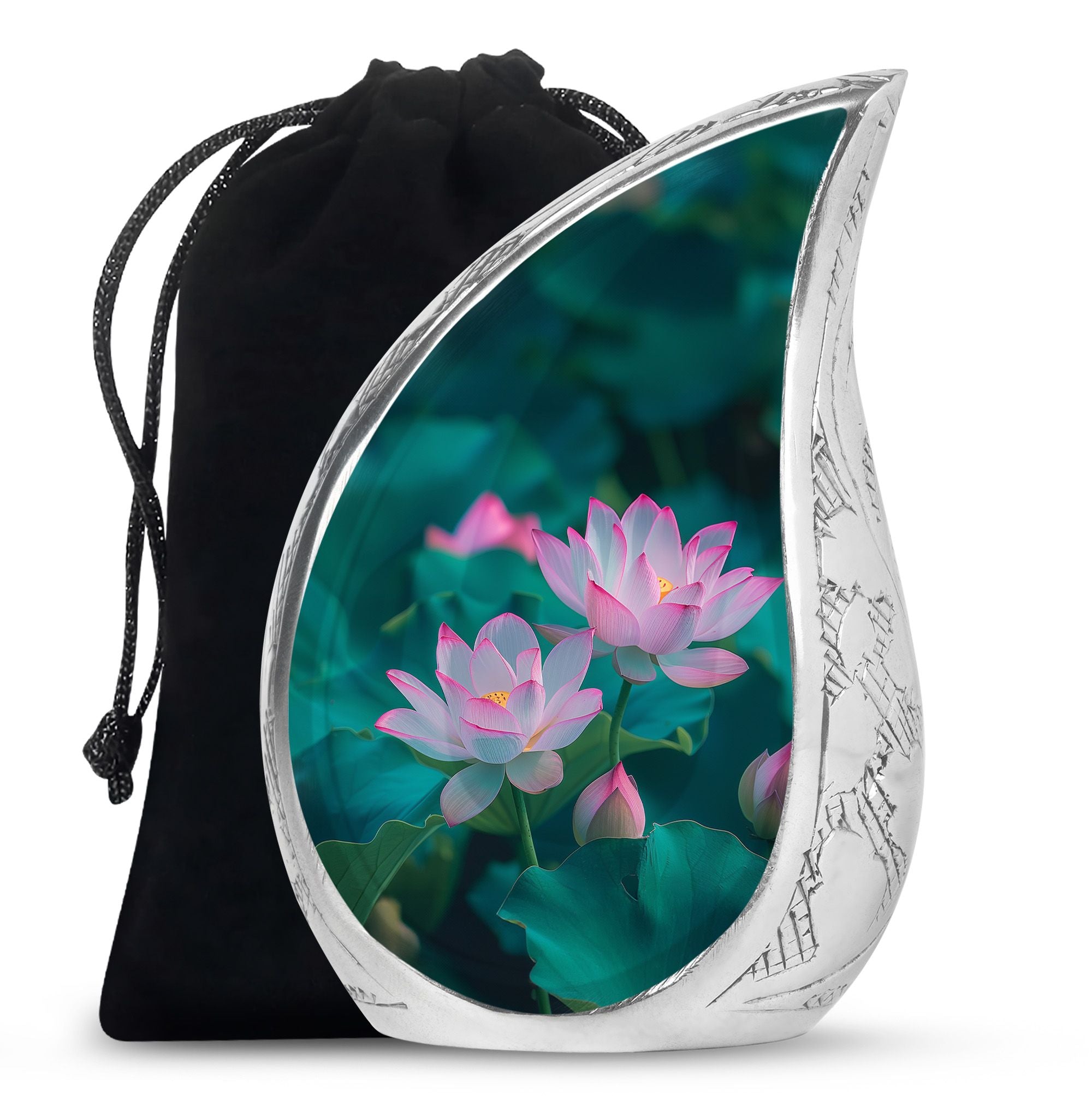 The lotus flower, long cherished as a symbol of renewal and eternal love, ensures that this funeral cremation urn for ashes holds more than memories—it holds hope and peace.