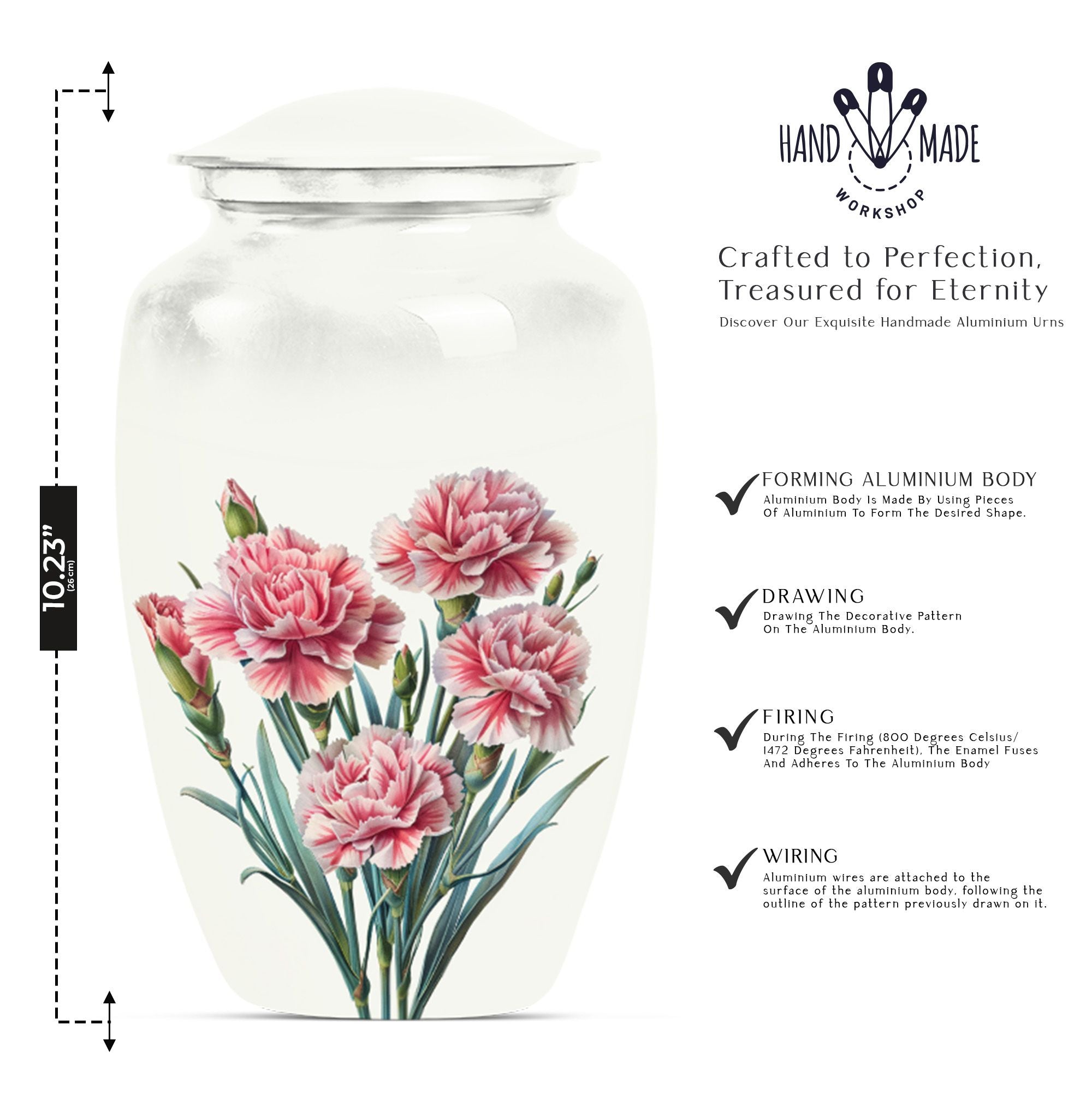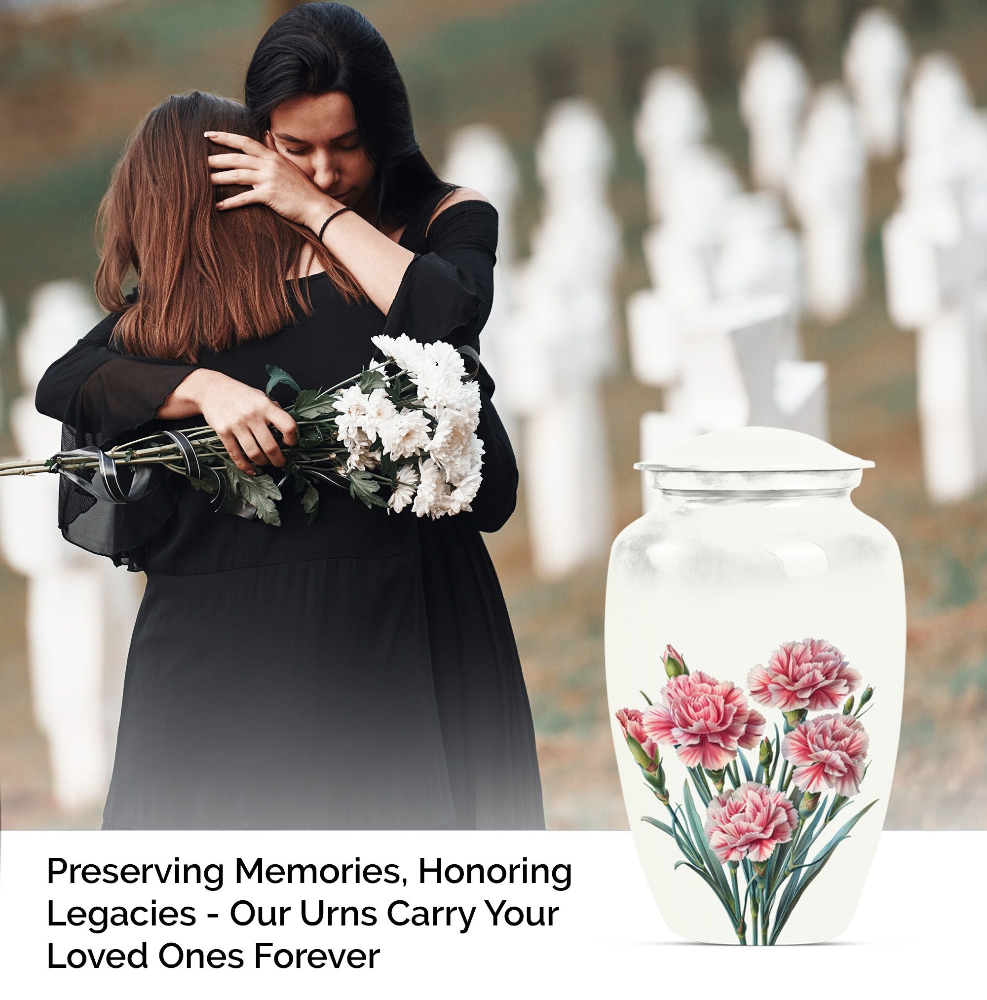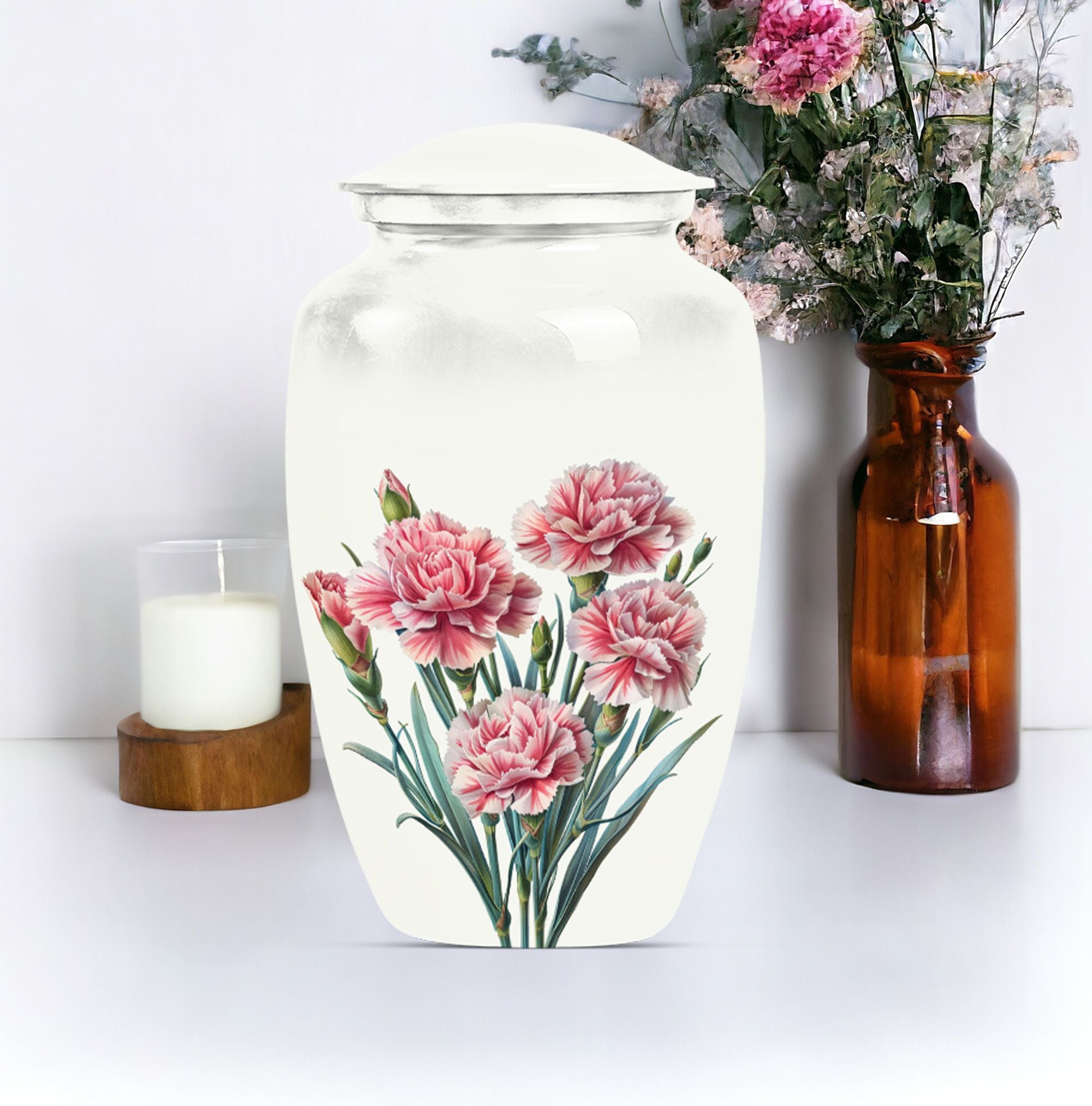 Honor your loved one with our splendid 'Purple Meadow' funeral urn, a perfect homage for any cherished adult male. This 10-inch large urn, made from high-grade aluminium, boasts a majestic stature in its class, adding a touch of elegance and grace at your memorial ceremony. Whether you choose to display or store it, its robust weight of 3.3 pounds makes it both durable and secure. Our urn has been meticulously designed to carry a significant 200 cubic inches capacity for ashes, thereby providing ample space for adult human ashes. A complimentary velvet pouch is included with your purchase, allowing for respectful containment of your dearest's ashes. Personalize this beautiful flower urn by engraving names for a personal touch. Add our cremation urn to your memorial supplies - a large, medium-sized urn that truly represents your love, respect, and longing for the departed one. Although often searched as 'funeral medium size urns for human ashes', 'human urn adult', 'urns for human ashes adult', or 'companion cremation urns for 2 adults', our 'Purple Meadow' urn stands out for its craftsmanship and dedication to honouring loved ones. Immortalize your loved one’s memory with our 'Purple Meadow' Flower Urn.