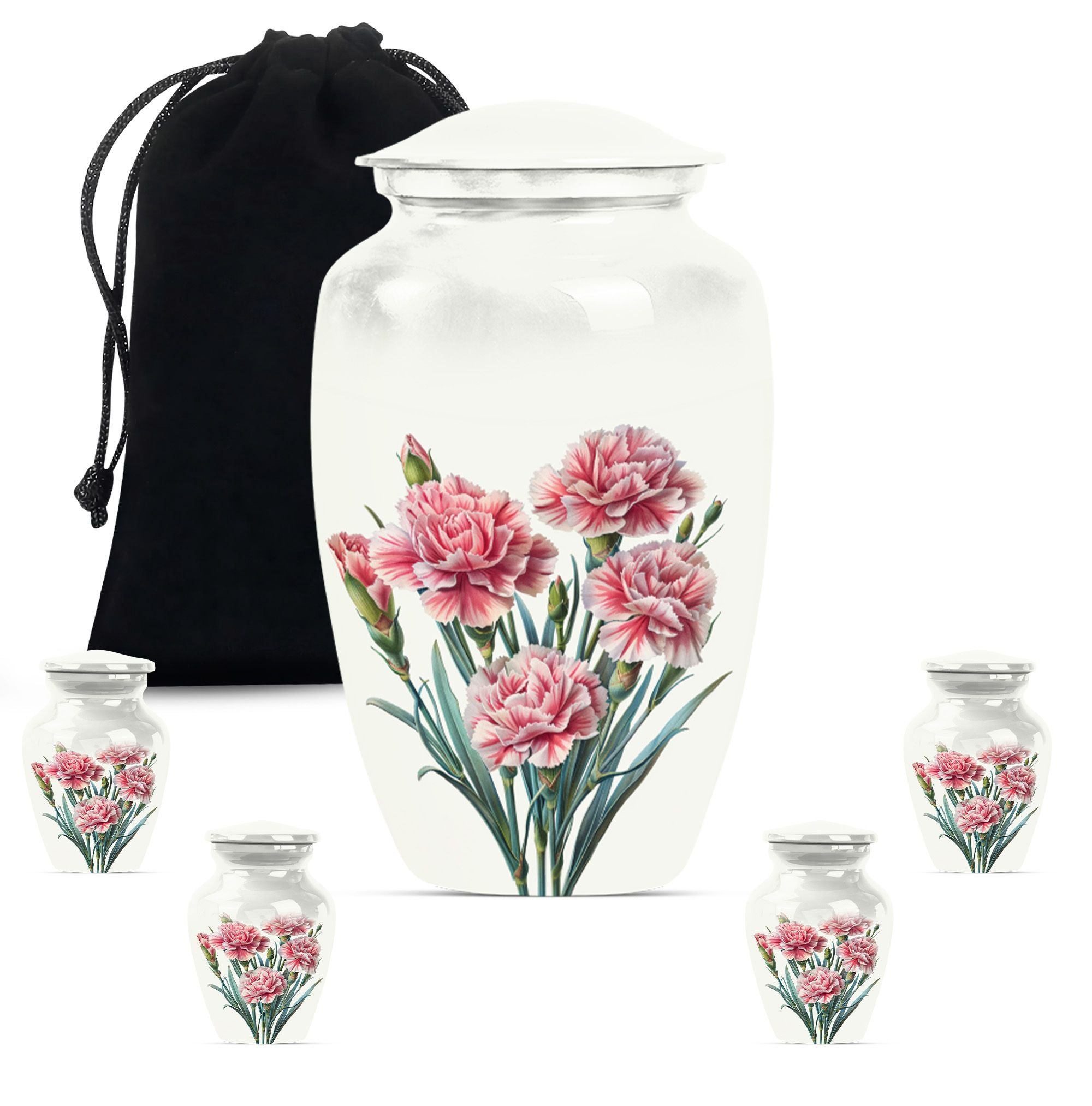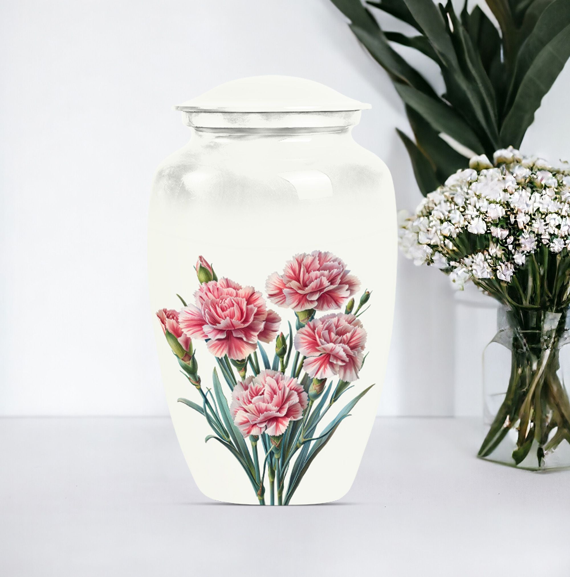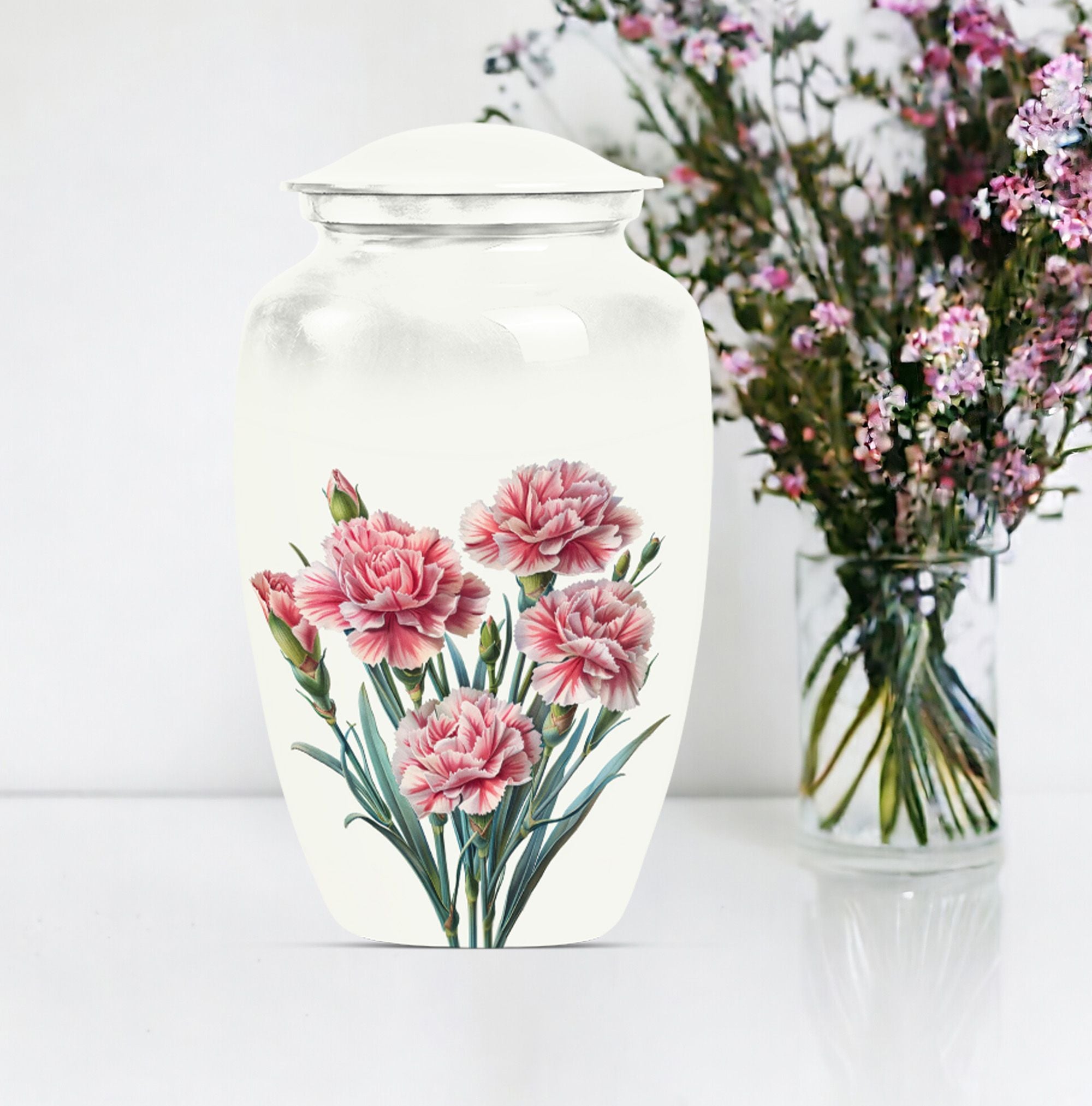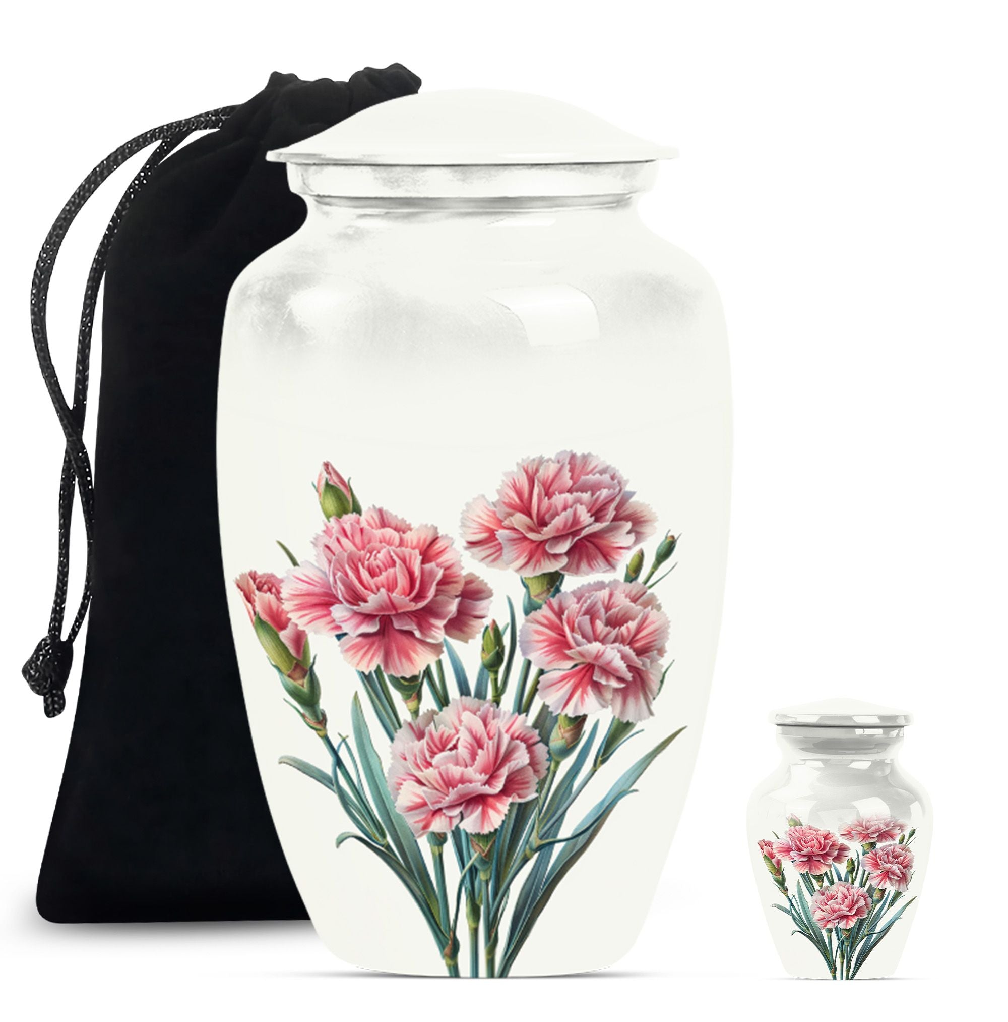 Honor your loved one with our splendid 'Purple Meadow' funeral urn, a perfect homage for any cherished adult male. This 10-inch large urn, made from high-grade aluminium, boasts a majestic stature in its class, adding a touch of elegance and grace at your memorial ceremony. Whether you choose to display or store it, its robust weight of 3.3 pounds makes it both durable and secure. Our urn has been meticulously designed to carry a significant 200 cubic inches capacity for ashes, thereby providing ample space for adult human ashes. A complimentary velvet pouch is included with your purchase, allowing for respectful containment of your dearest's ashes. Personalize this beautiful flower urn by engraving names for a personal touch. Add our cremation urn to your memorial supplies - a large, medium-sized urn that truly represents your love, respect, and longing for the departed one. Although often searched as 'funeral medium size urns for human ashes', 'human urn adult', 'urns for human ashes adult', or 'companion cremation urns for 2 adults', our 'Purple Meadow' urn stands out for its craftsmanship and dedication to honouring loved ones. Immortalize your loved one’s memory with our 'Purple Meadow' Flower Urn.