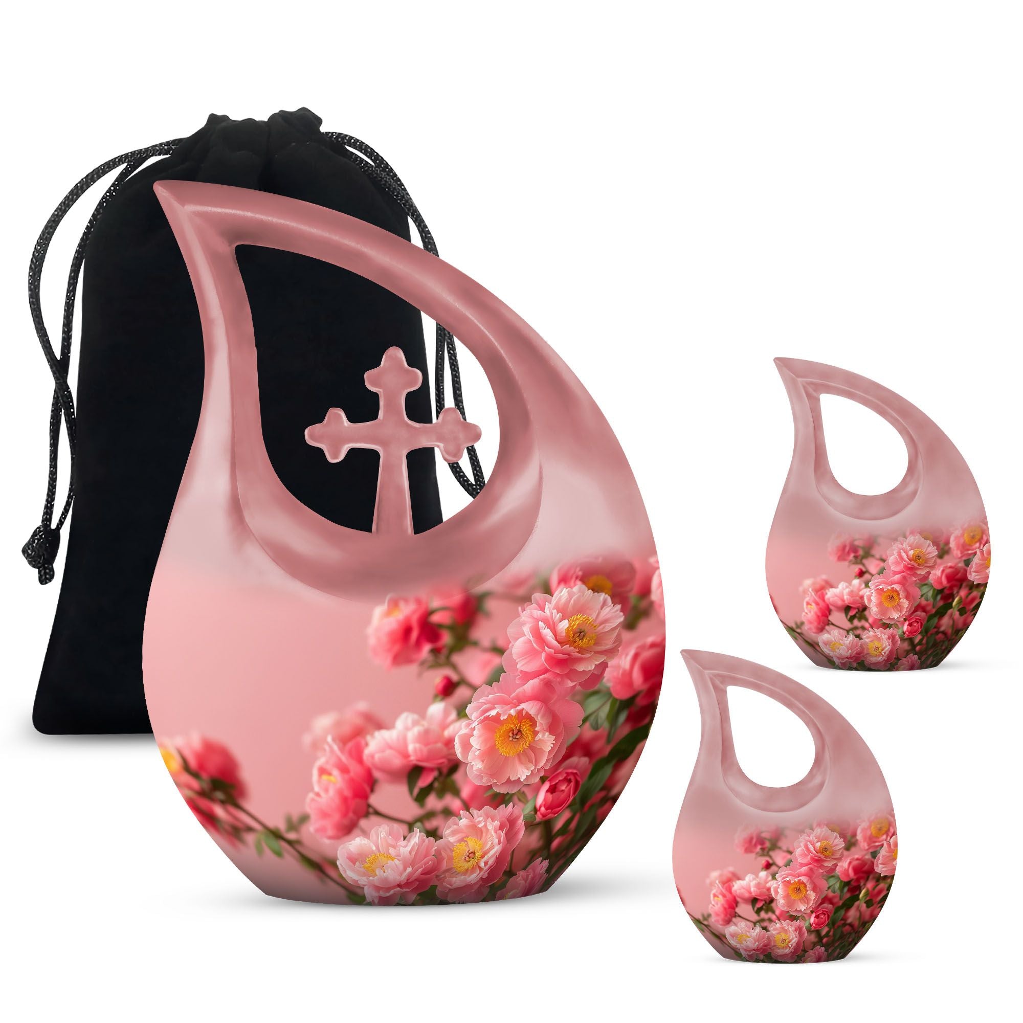 Immerse yourself in the soothing aura of remembrance with this elegantly designed 10-inch Flower Urn. Crafted from robust aluminium, this urn weighs a solid 3.3 pounds, showcasing its supreme quality and durability. The Large Urn boasts a capacity of 200 cubic inches, giving ample space for containment of your loved one's ashes in a respectful and dignified manner. Your package will arrive with a soft velvet pouch, perfect for the protected containment of the ashes. This urn shines with uniqueness, in the popular 'Cross Drop' theme and allows you the option to further personalize with engraved names. Highly searched terms like 'Flower Urn', 'Beautiful Urns', 'memorial urns', 'Decorative Urns' and 'Unusual Urns for Ashes' are relevant to this product. Whether you're seeking a custom mom urn, or an ashes keepsake for a man, this product caters to your needs in the most personal yet tasteful way.
