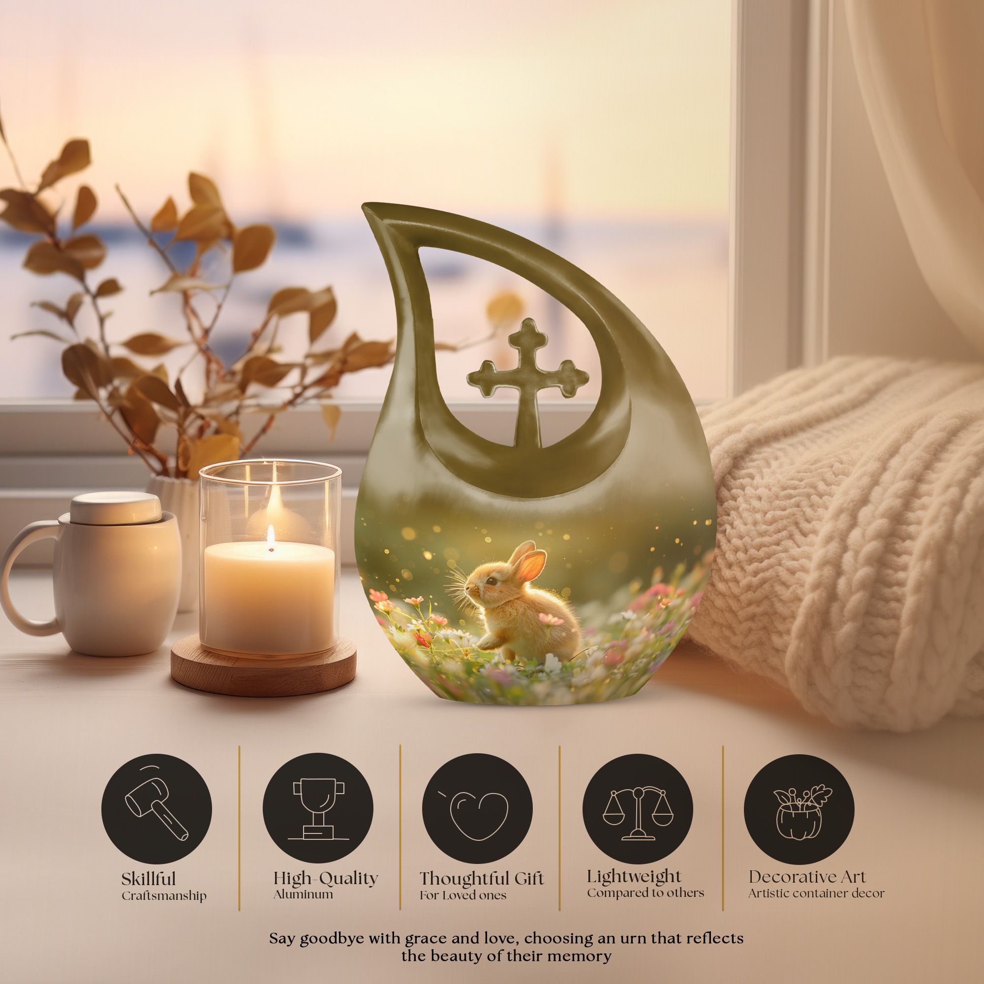 Presenting the Sunlit Daisy Hopper Urn, a majestic epitome of honor and respect for your loved ones. Constructed with fine quality aluminium, this 10-inch urn exhibits a capacity of 200 cubic inches, enough to hold your dear one's ashes safely. Weighing around 3.3 pounds, it's sturdy and durable, ensuring the lasting containment of precious remains. This urn features a unique 'Cross Drop' theme, imparting an ethereal serenity. Our urns are not only functional but are also respectful keepsakes. It comes with a plush velvet pouch, providing a delicate enclosure for the ashes. The urn offers the opportunity for personalization, allowing you to engrave names, making it an exceptional symbol of remembrance. Our Sunlit Daisy Hopper Urn functions perfectly as containers for the ashes of the deceased, cremation ashes keepsakes, and even as large sized funeral urns. With its unique attributes, this urn is a perfect amalgamation of magnificence and honor serving as a memorable resting place for your dearly departed.