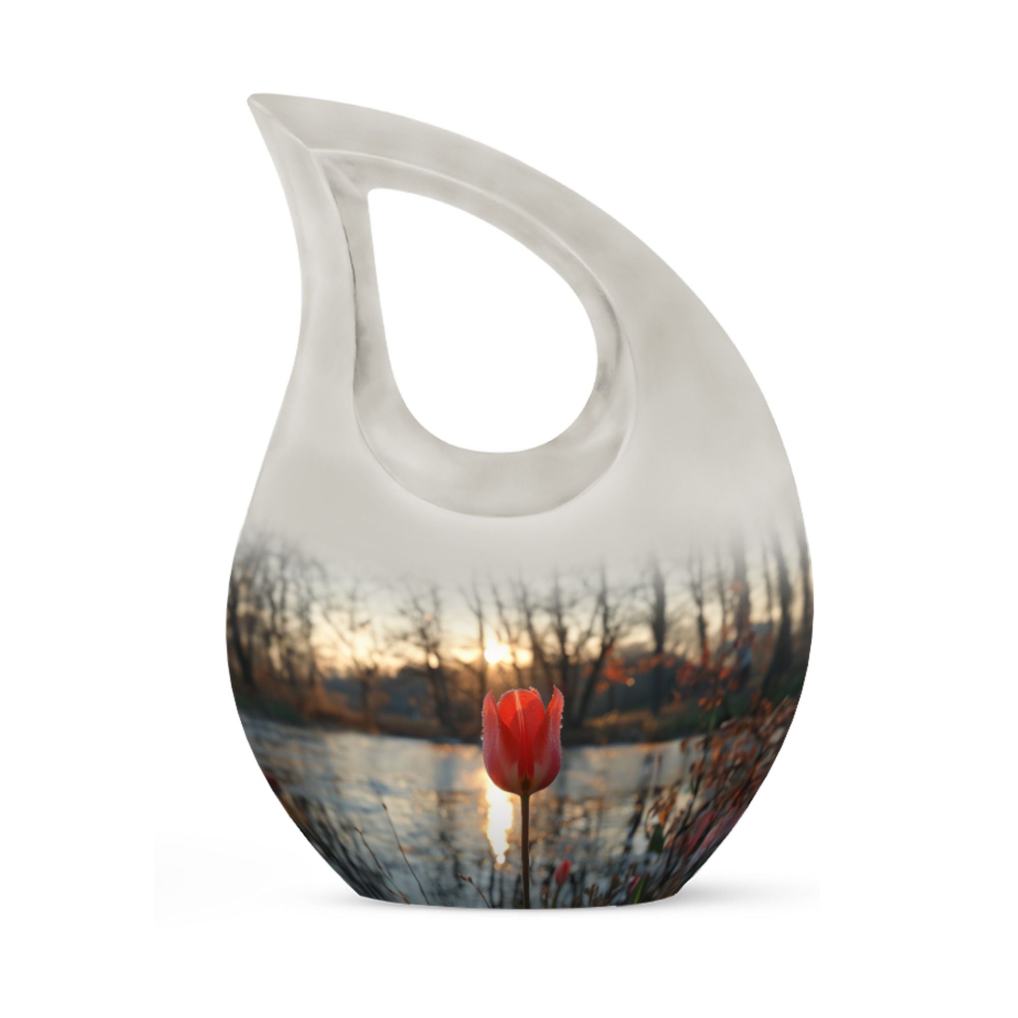 The Tulips Cremation Small Ashes Keepsake is a delicate floral tribute designed to honor the memory of a beloved female loved one. Its elegant tulip design reflects love, peace, and remembrance, making it perfect as a floral urn, flower urn, or tulip urn.